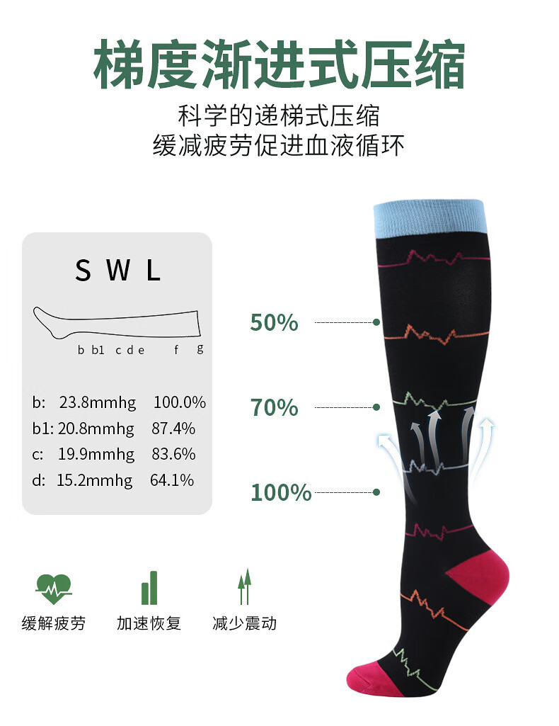 200 ready-made sports compression socks for women, skipping rope, running calf socks, cycling long-tube elastic compression socks wholesale, purple EKG S/M (recommended 34-39)