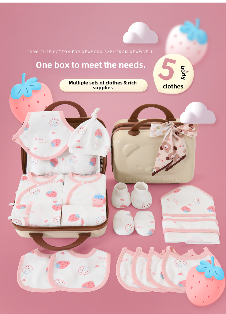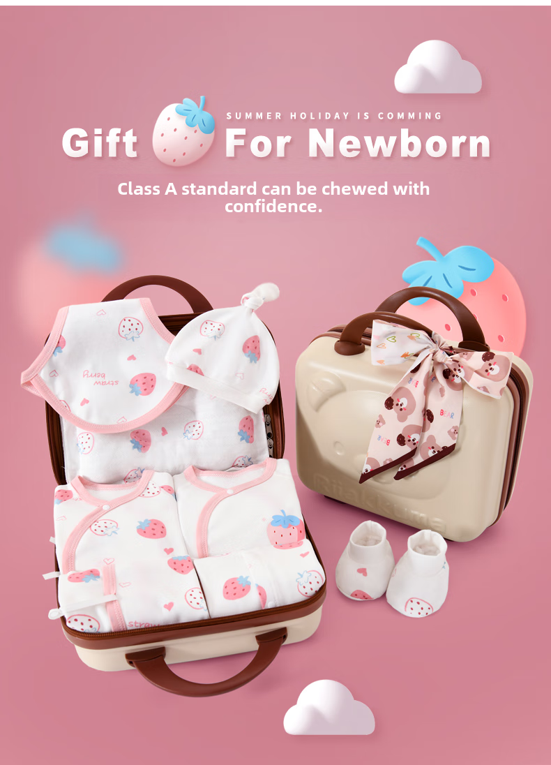 YEEHOO FASHION Yingshi pure cotton baby gift box set newborn clothing summer slim baby full moon set newborn party gift Moon Bear 21 pieces summer style gift box + handbag 59cm (recommended 0-3 months) gift box_all pure cotton_boneless sewing