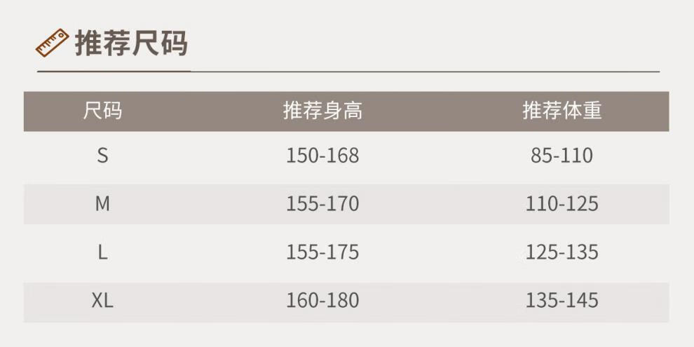 China (cm) 165 / 88-90 170 / 96-98 175 / 108-110 180 / 118-122 185 / 126-130