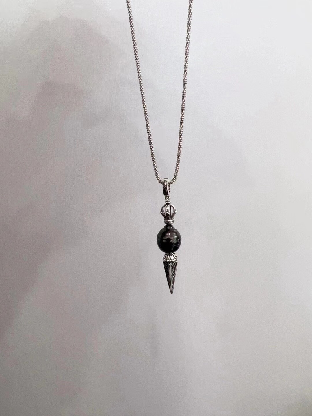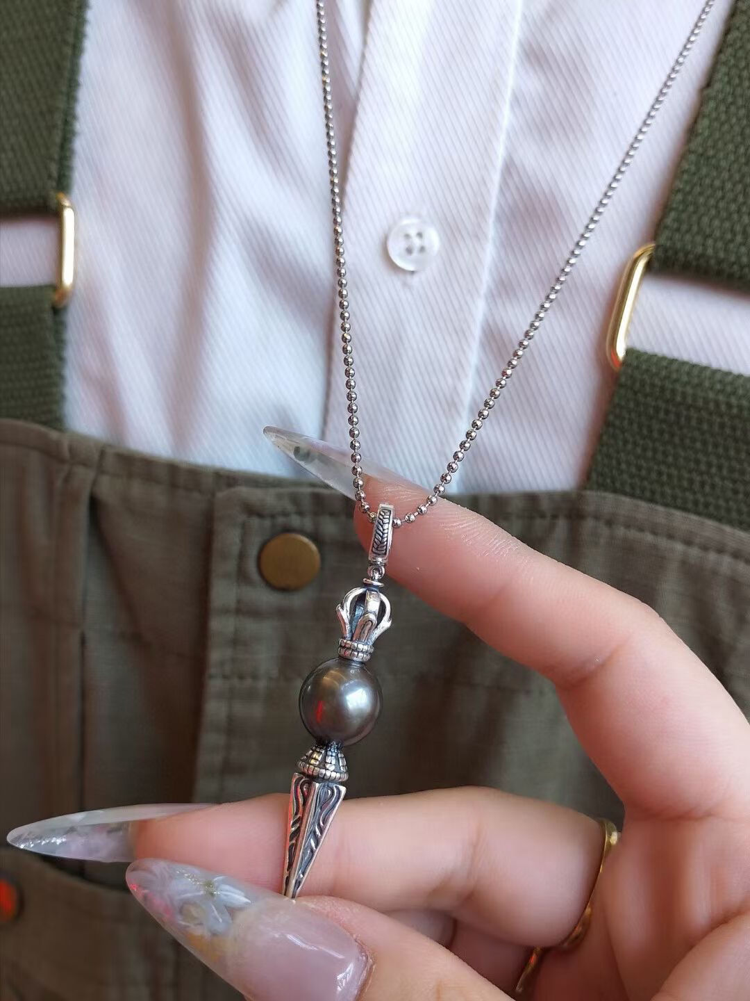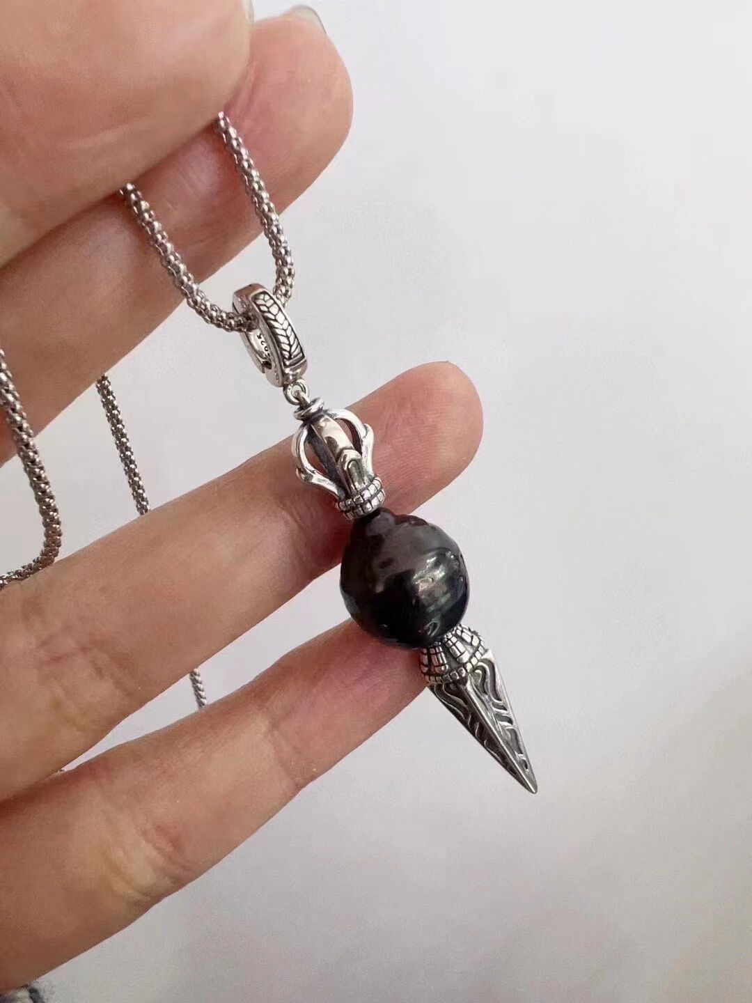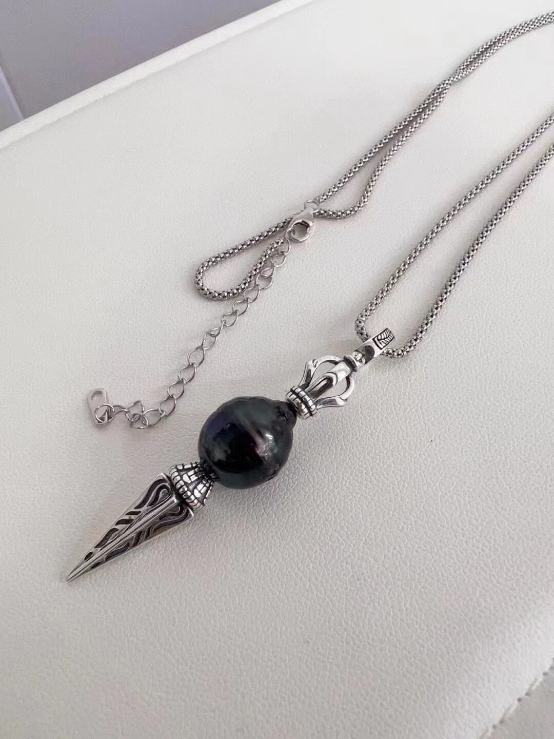 Floating Lotus and Demonic Pestle Black Pearl Pendant Baroque Pearl Scepter Necklace for Men and Women Baroque Black Pearl Pendant Black Pearl Pendant