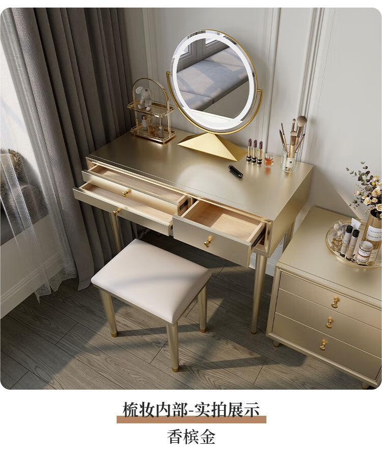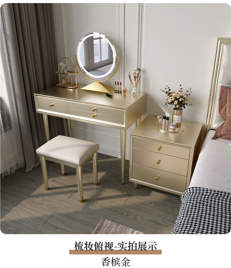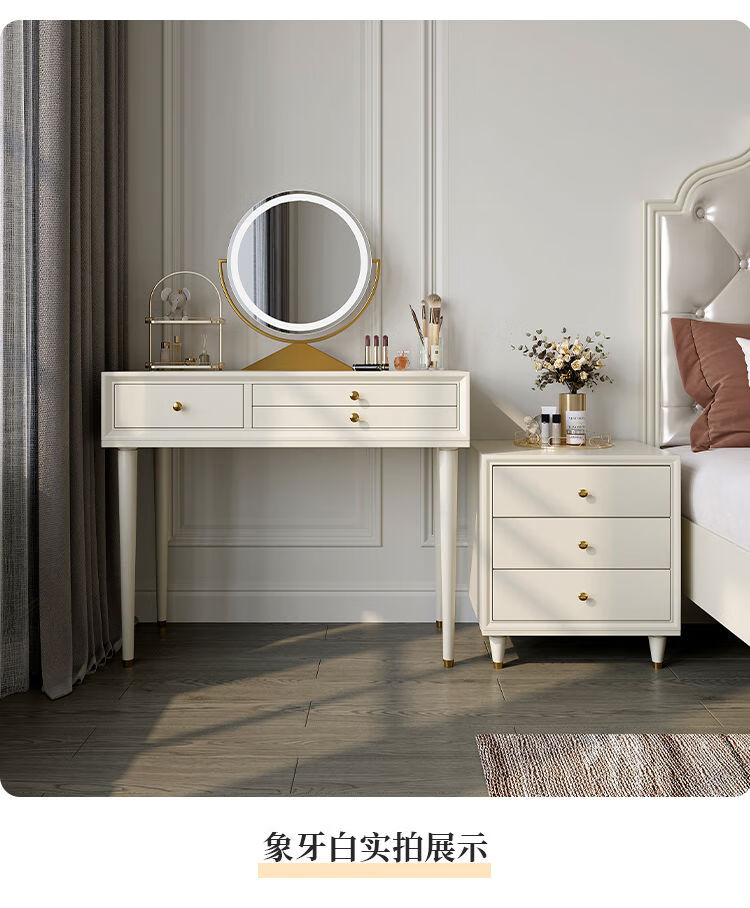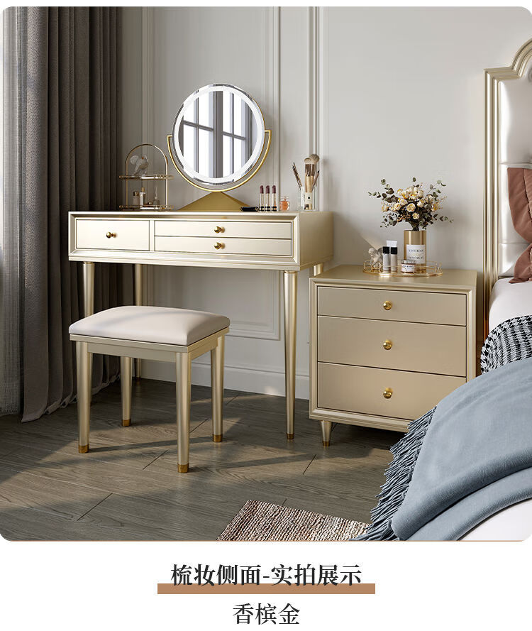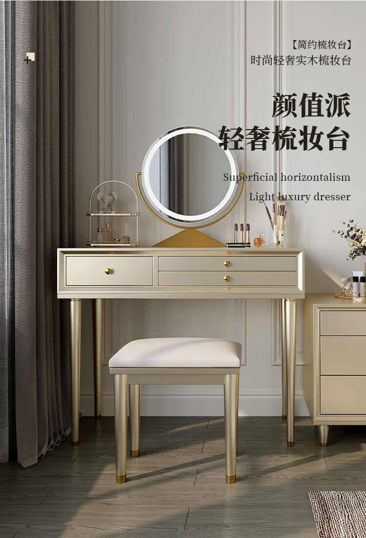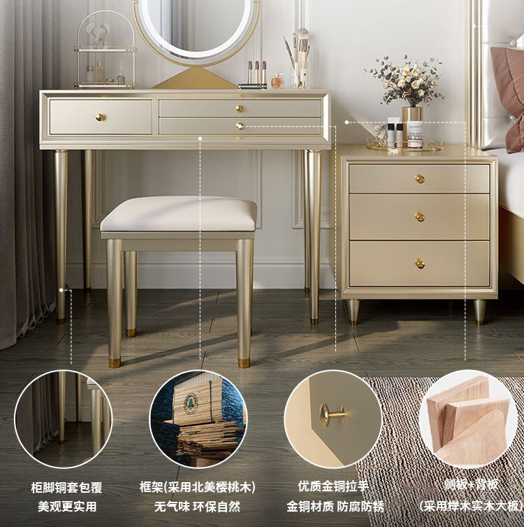 Solid wood dressing table bedroom bedside dressing table small apartment dressing cabinet bedside special light luxury dressing table with mirror dressing table + stool 90*42*80 without mirror door installation cherry wood
