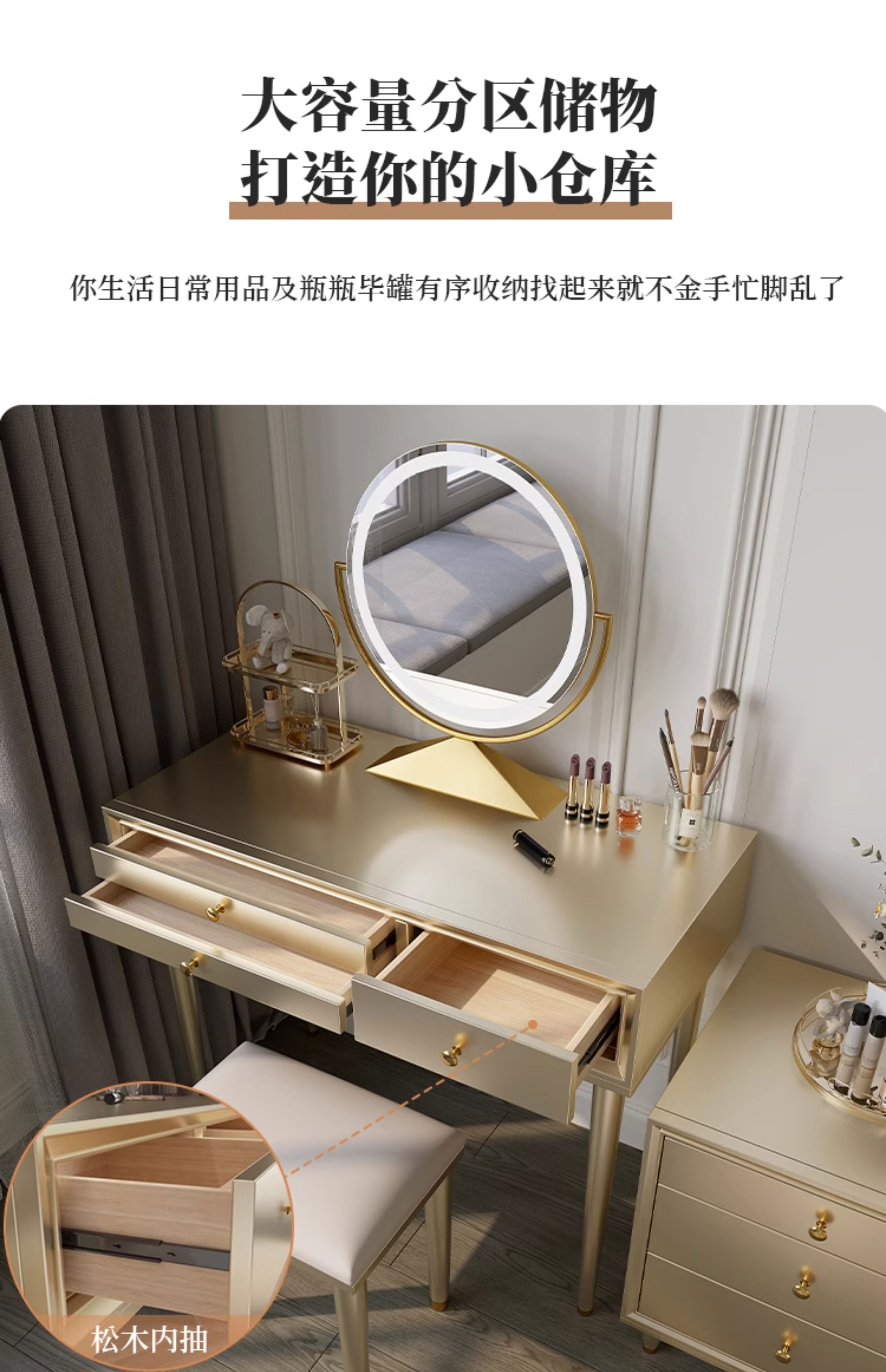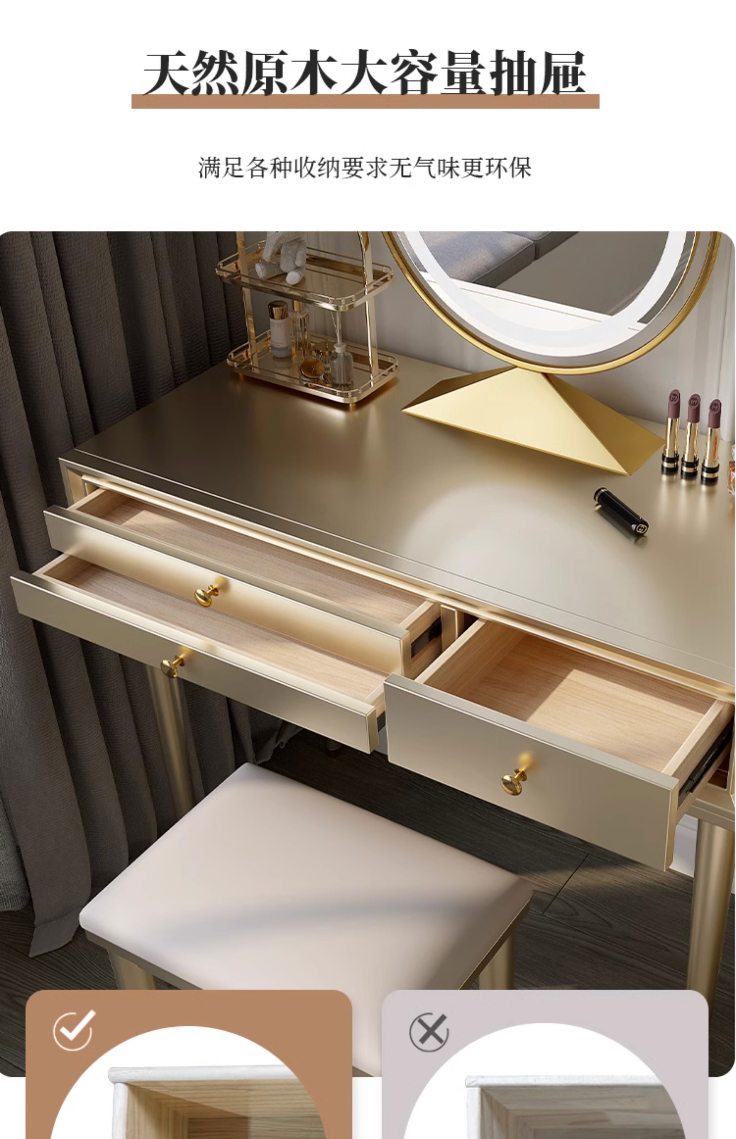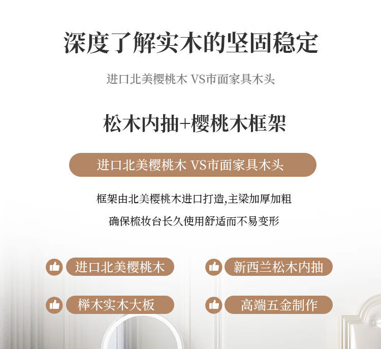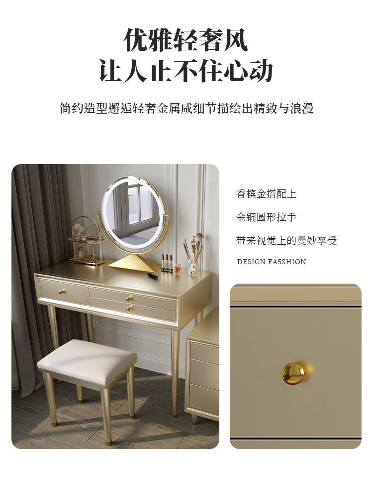 Solid wood dressing table bedroom bedside dressing table small apartment dressing cabinet bedside special light luxury dressing table with mirror dressing table + stool 90*42*80 without mirror door installation cherry wood