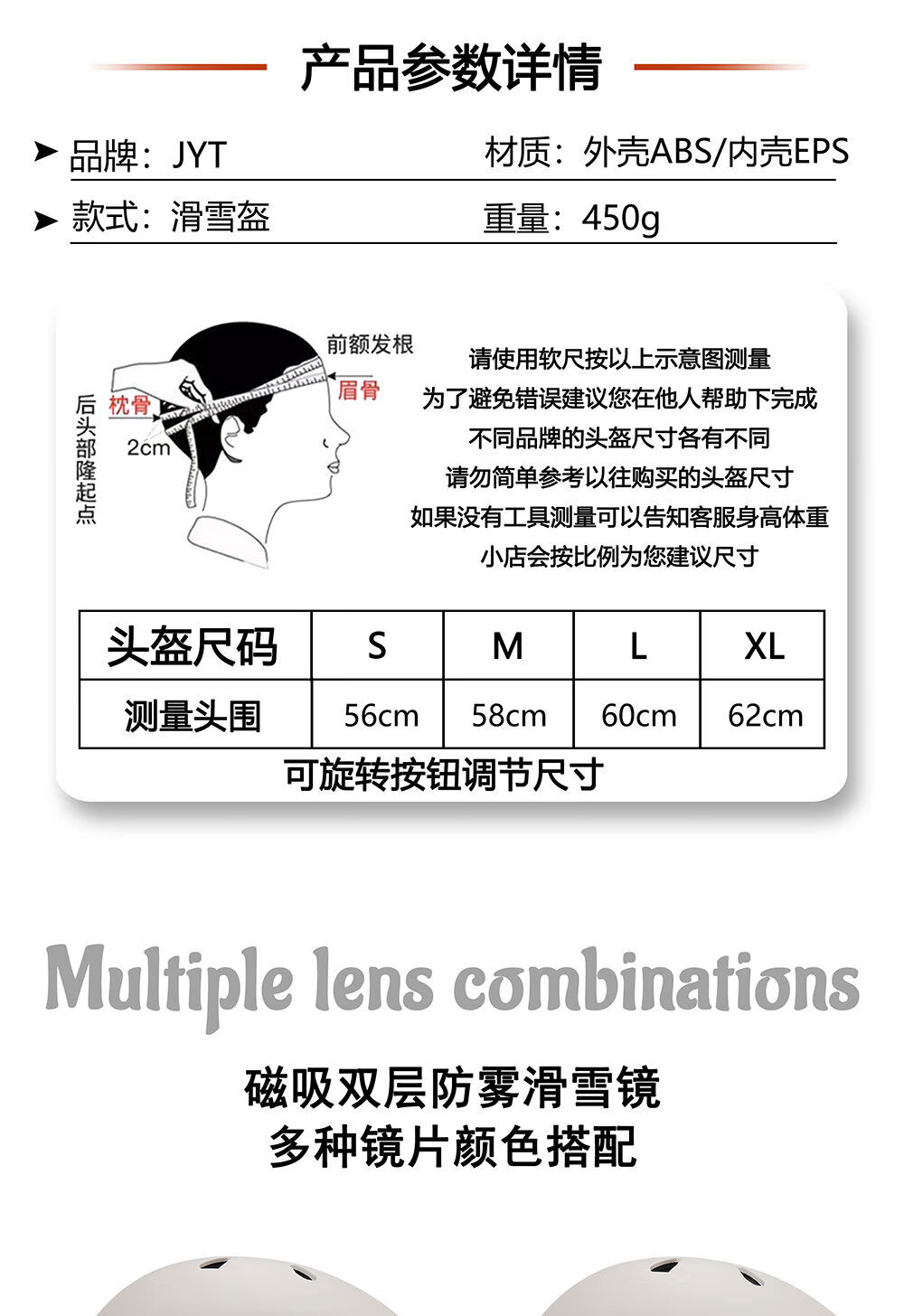 口口爱超轻滑雪头盔单双板滑雪装备护具男女保暖防撞滑雪盔滑雪帽 亚光白沙色 S