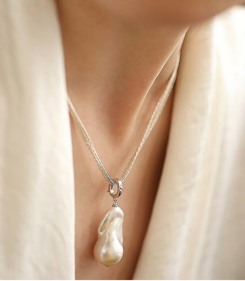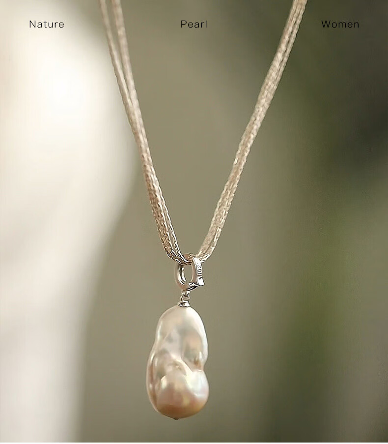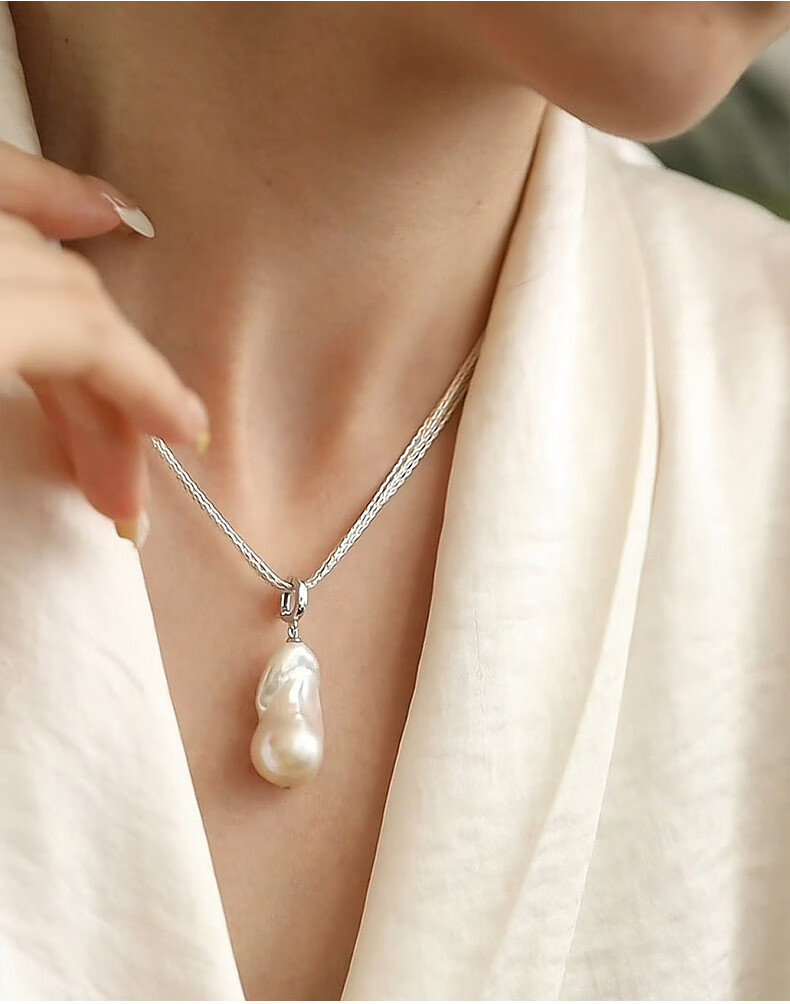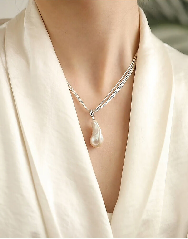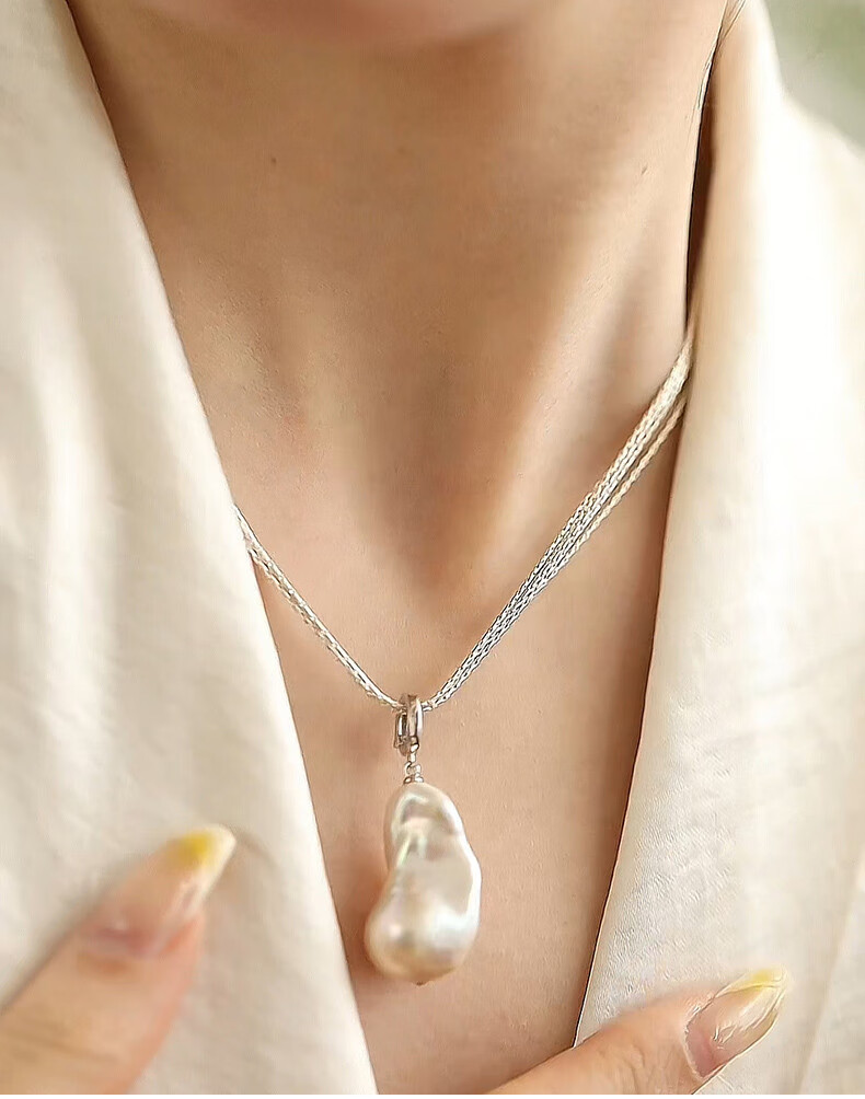Floating Lotus Freshwater Baroque Pearl Pendant Women's French Retro Niche Special-shaped Pearl Necklace Baroque Freshwater Pearl Pendant 45cm