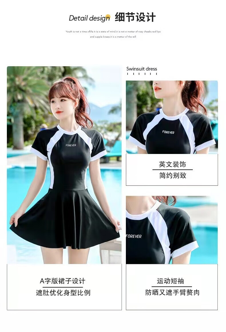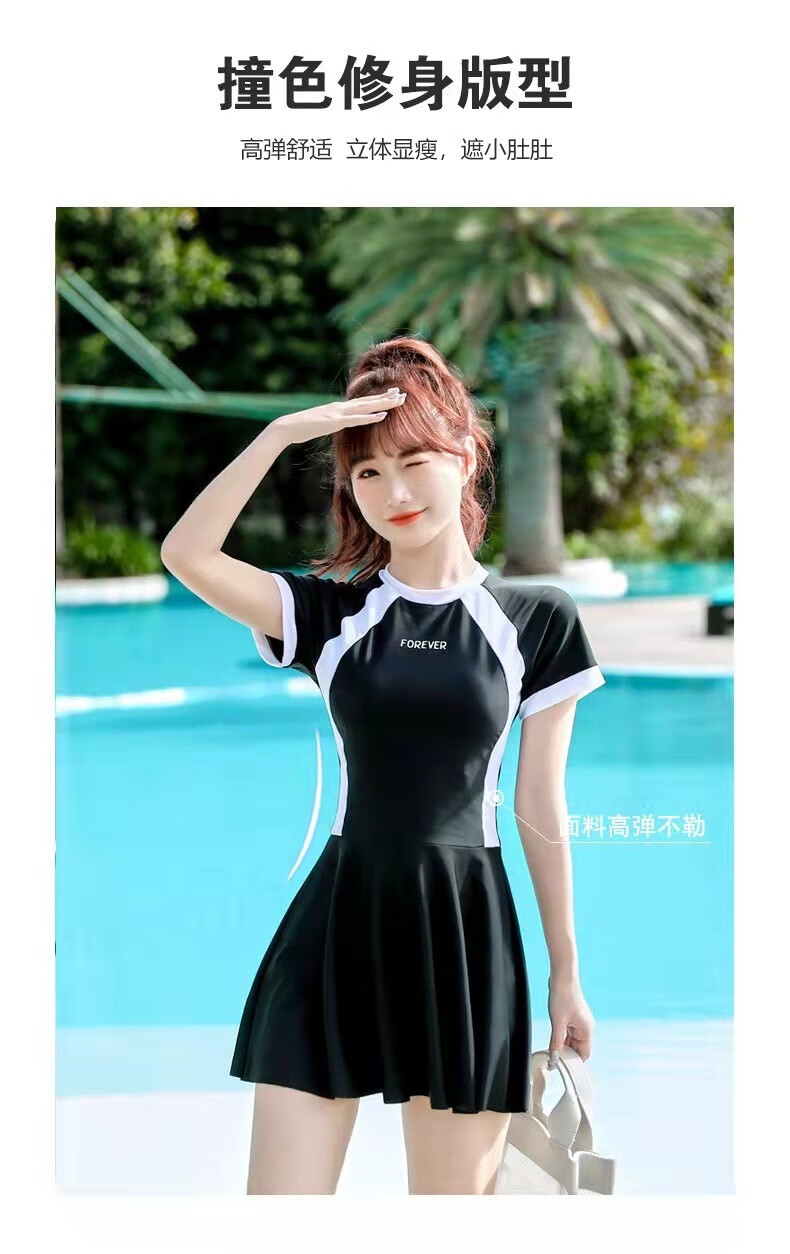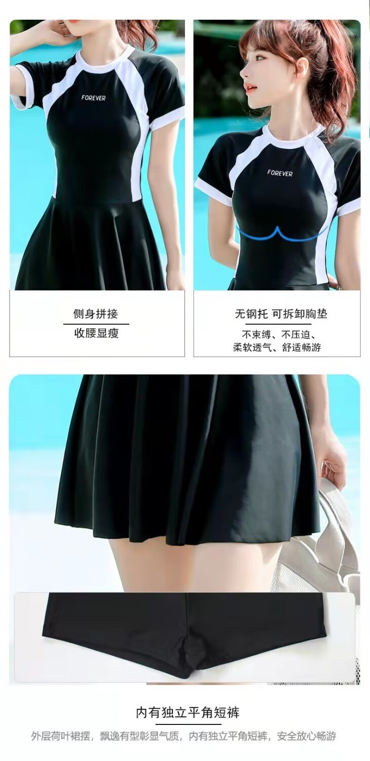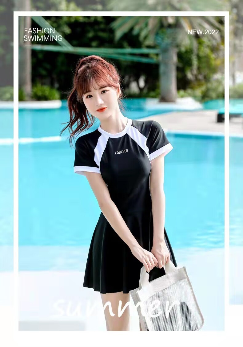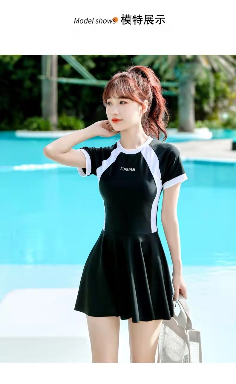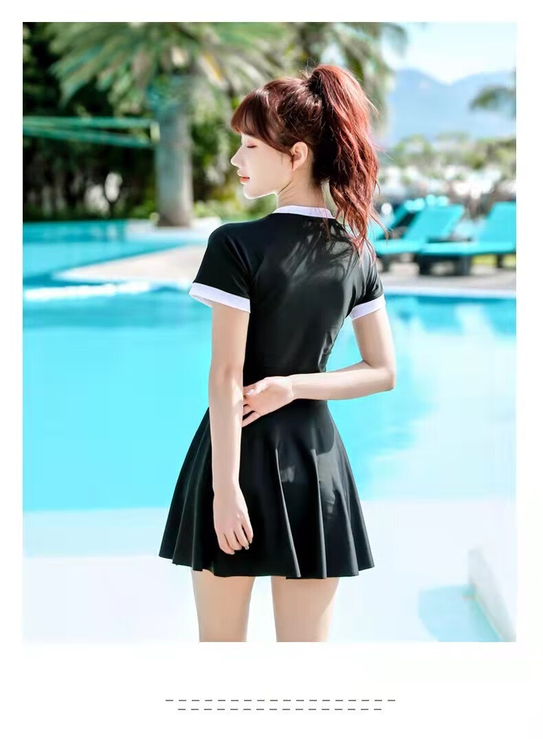 Zailu Summer Simple Slimming Student Swimwear Conservative Belly Covering One-piece Skirt Style Loose Swimsuit for Small Breasted Girls Black + Swimming Cap + Swimming Goggles + Mobile Phone Bag + Nose Clip Earplugs M M Recommends 85-95Jin Jin is equal to 0.5kg