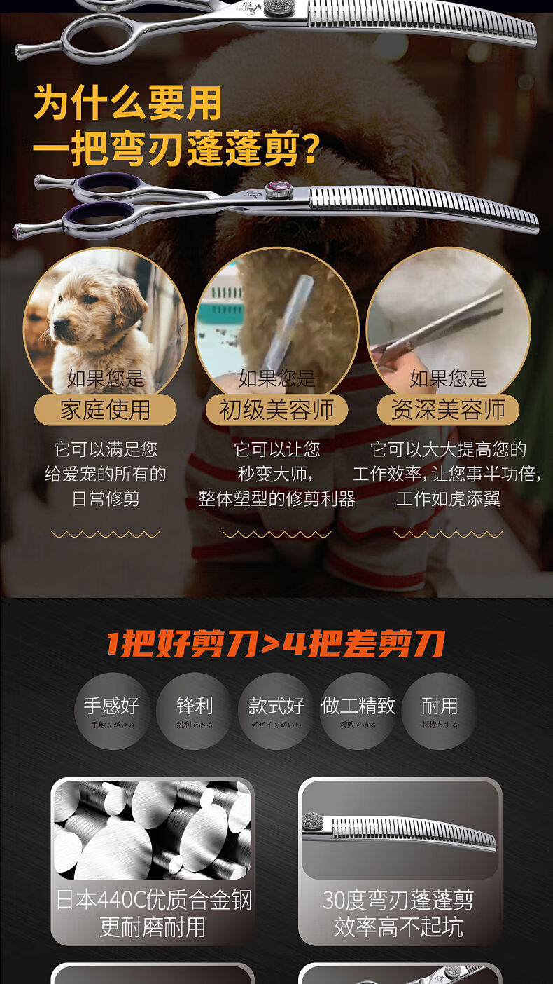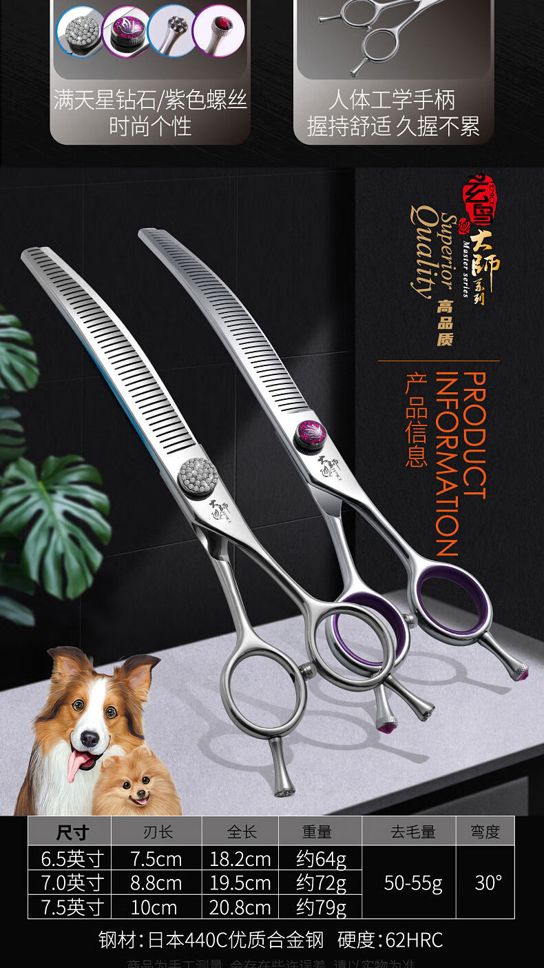 Master Pet Curved Puff Scissors Beautician Shop Used for Dog Thinning, Shearing and Trimming Beauty Tools 6.5 inches Bright Green Curved Puff