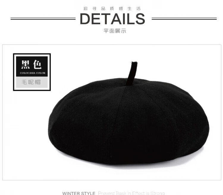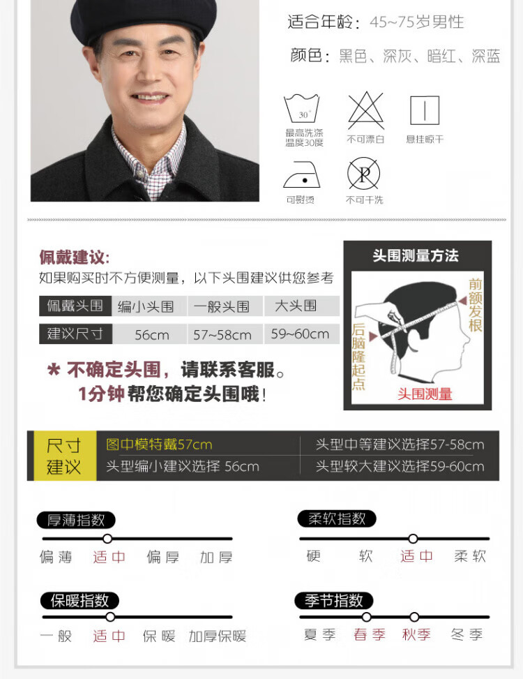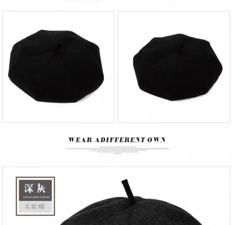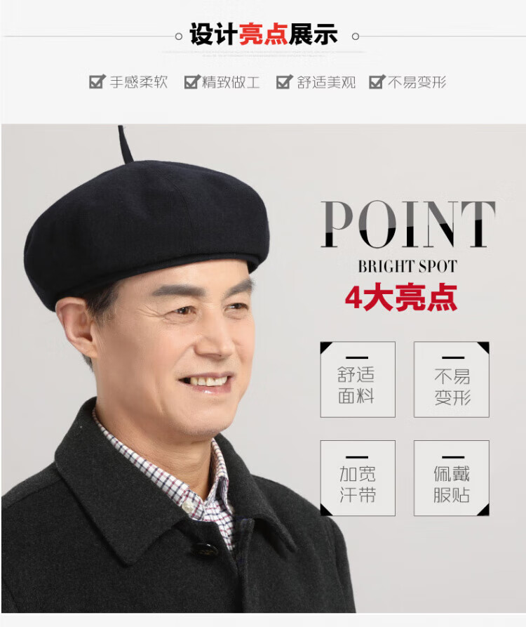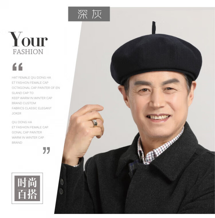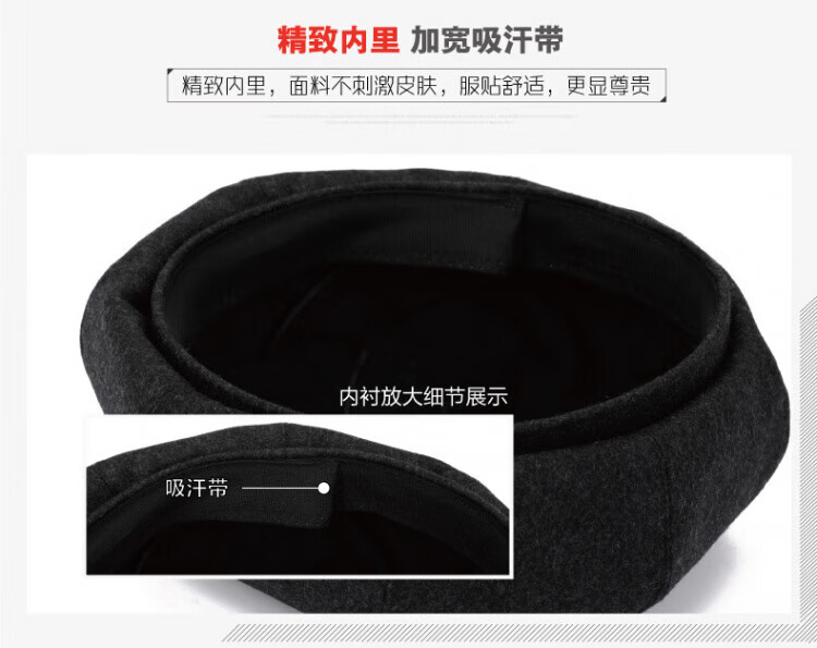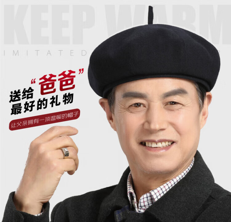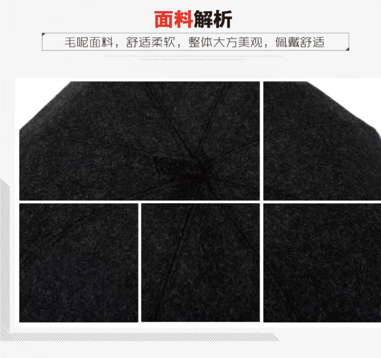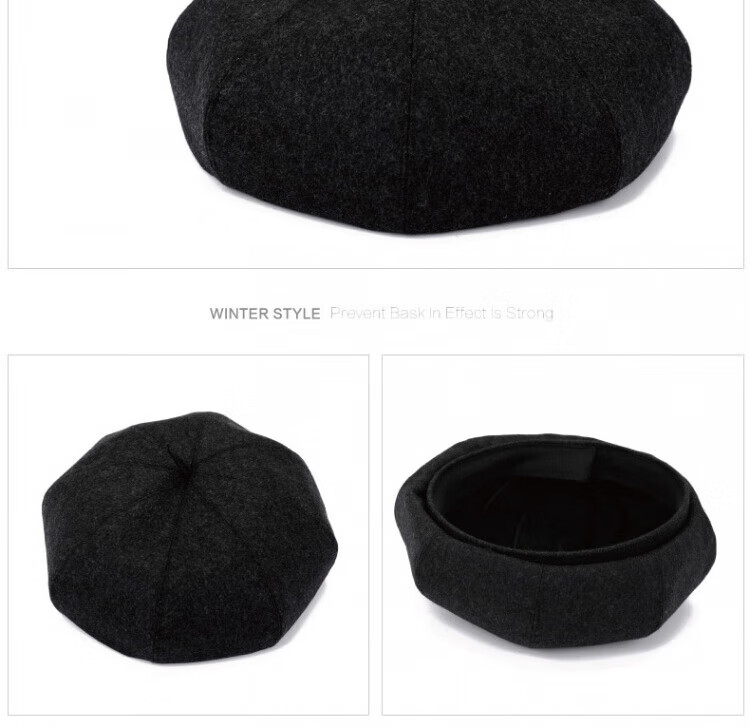 Old man's hat men's thin style old man's woolen beret middle-aged and elderly father's painter's hat cloth hat octagonal hat black_autumn and winter woolen M (58-59cm) one size