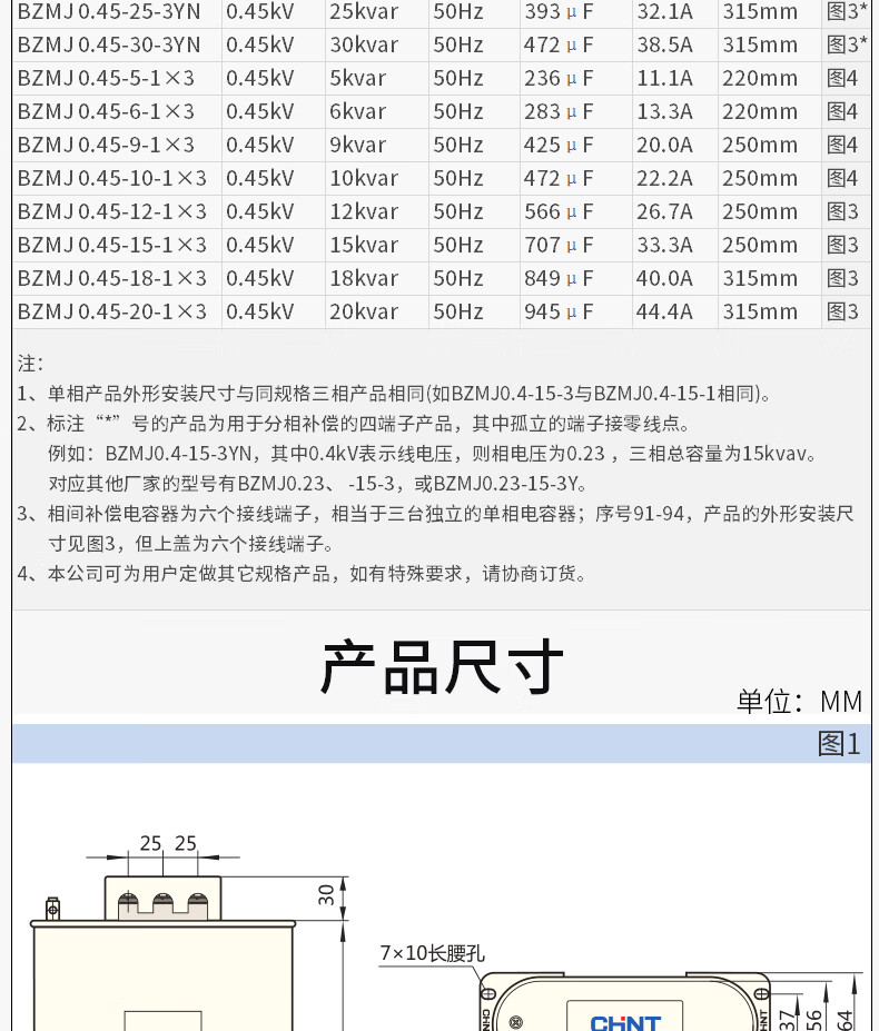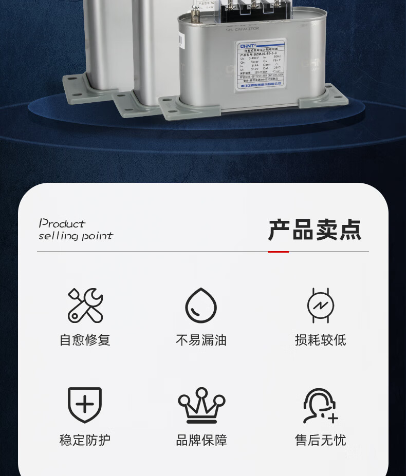 Chint bzmj reactive voltage compensator three-phase large-capacity self-healing low-voltage parallel power capacitor 450v 5kvar_400v BZMJ_0.4-5-3