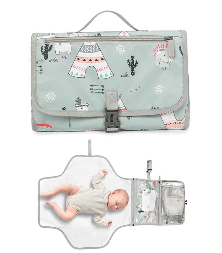 Portable baby changing pad, waterproof oxford cloth urine barrier, portable tissue paper diaper storage mommy bag, gray portable baby changing pad