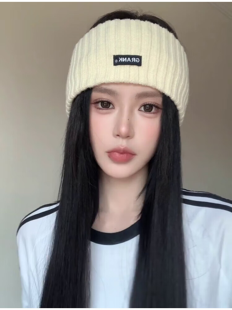 Long Zang headband women's sports headband winter knitted headband women's running headband warm wide-brimmed knitted headband headband letter logo wide-brimmed sports headband black
