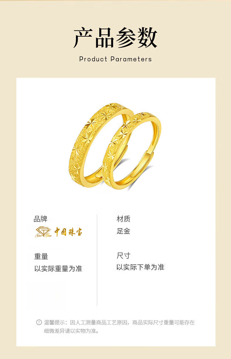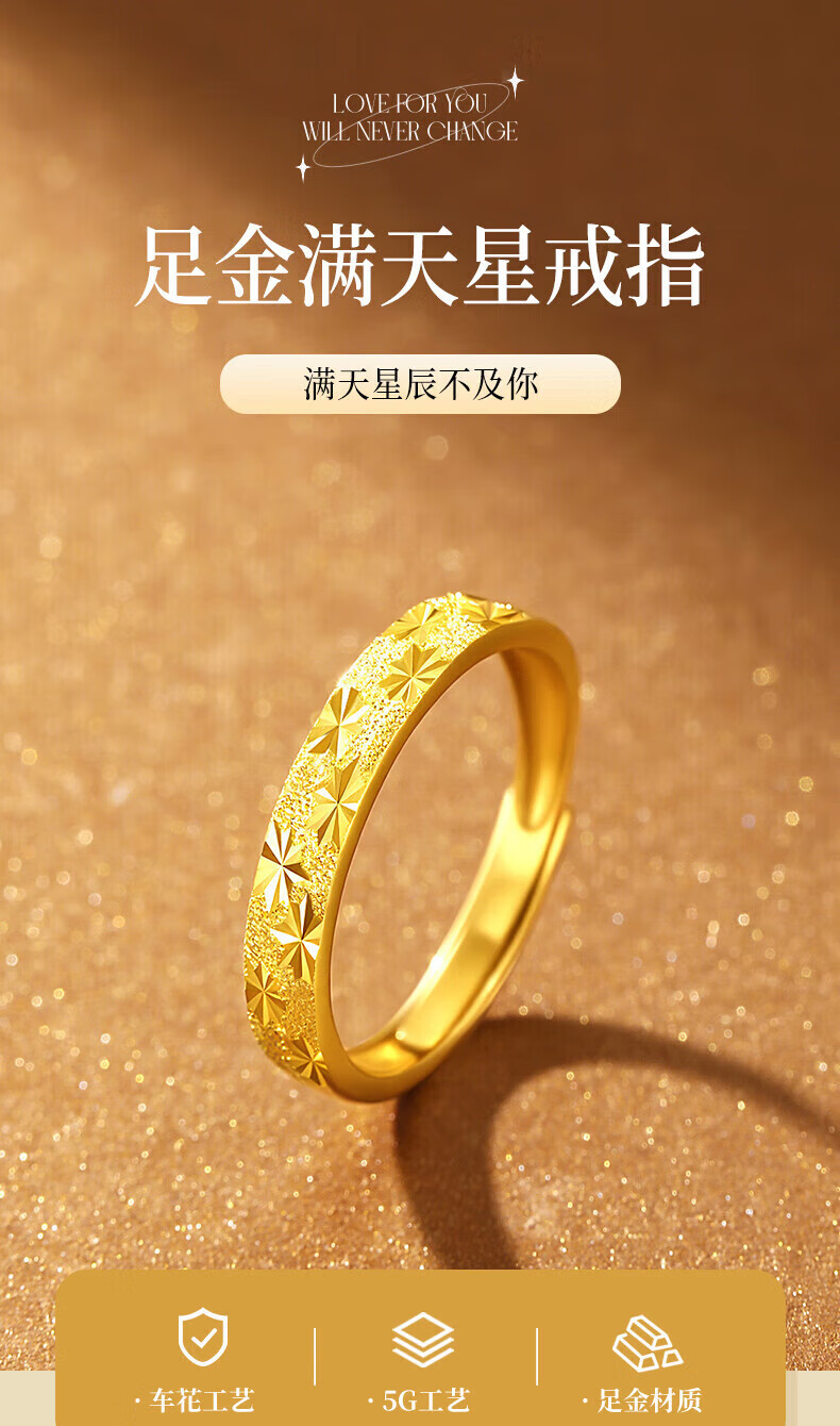 Chinese jewelry baby's breath gold couple ring for men and women 999 pure gold pair of rings birthday gifts for male and female friends gold weight about 1.7g pure gold women's ring