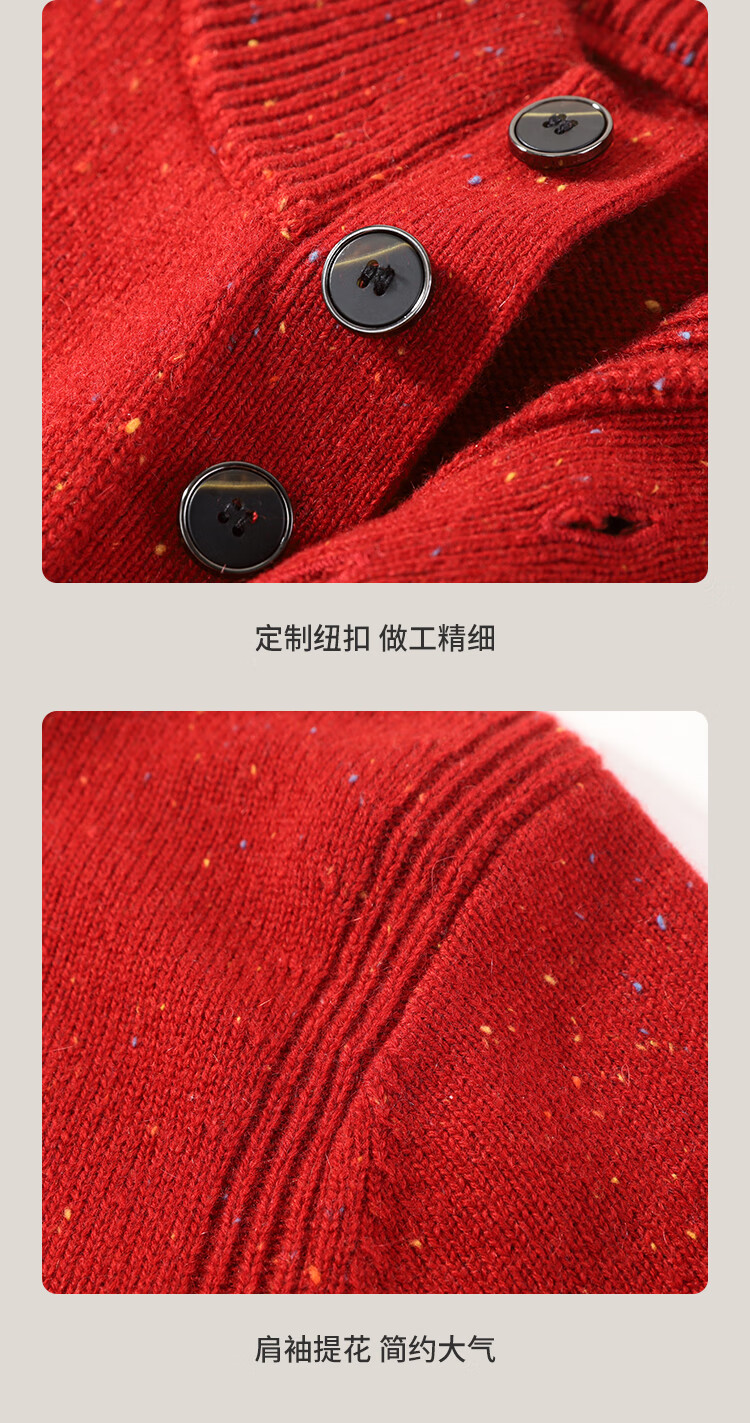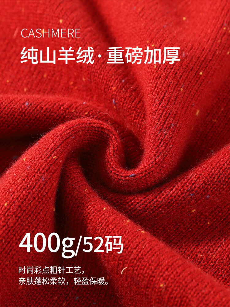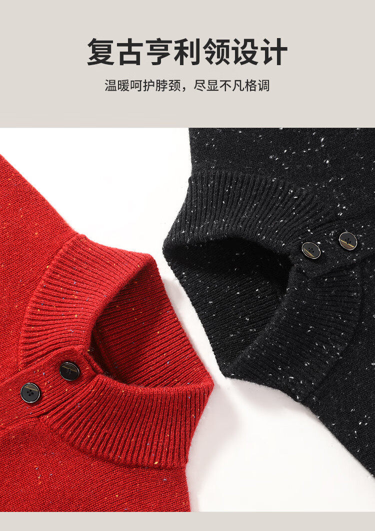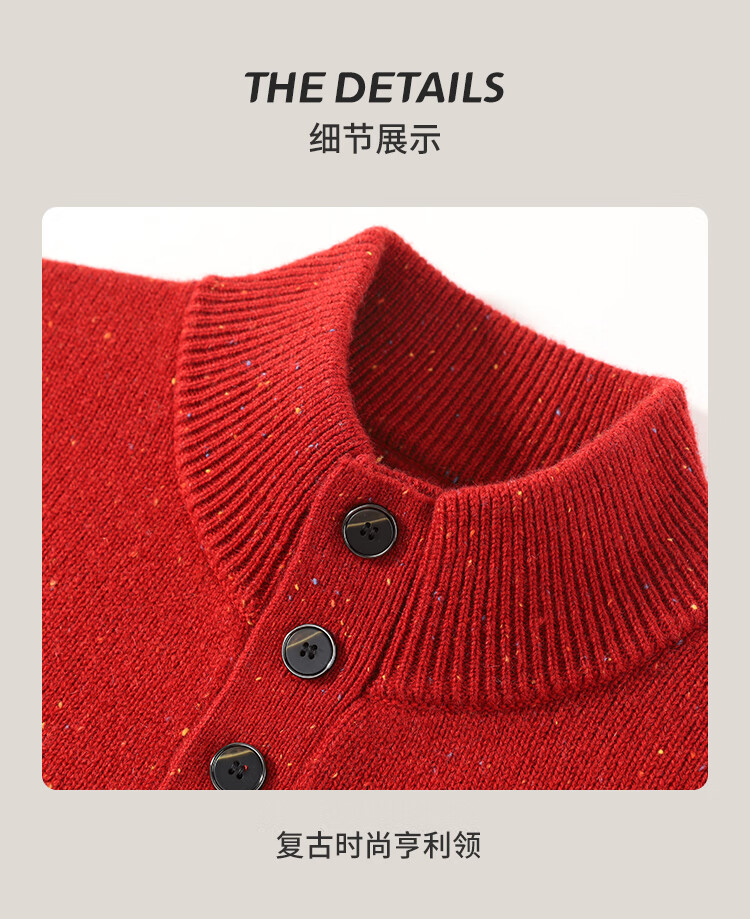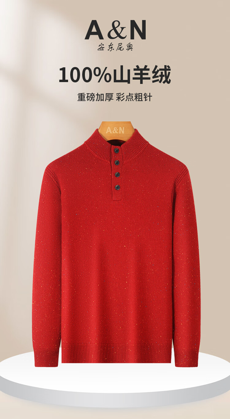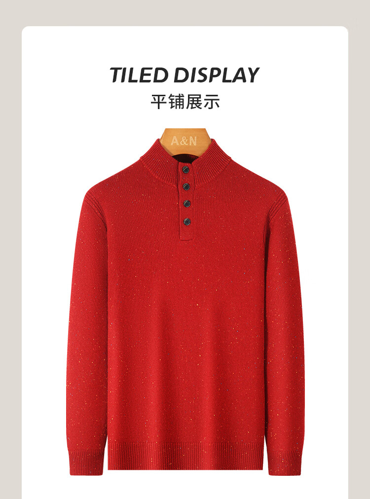 Antonio 400G heavyweight thickened Henry collar light luxury warm cashmere sweater for men 100% cashmere sweater holiday red color dots M /48 170/88A