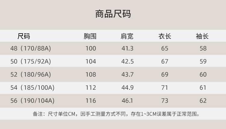 China (cm) 165 / 88-90 170 / 96-98 175 / 108-110 180 / 118-122 185 / 126-130