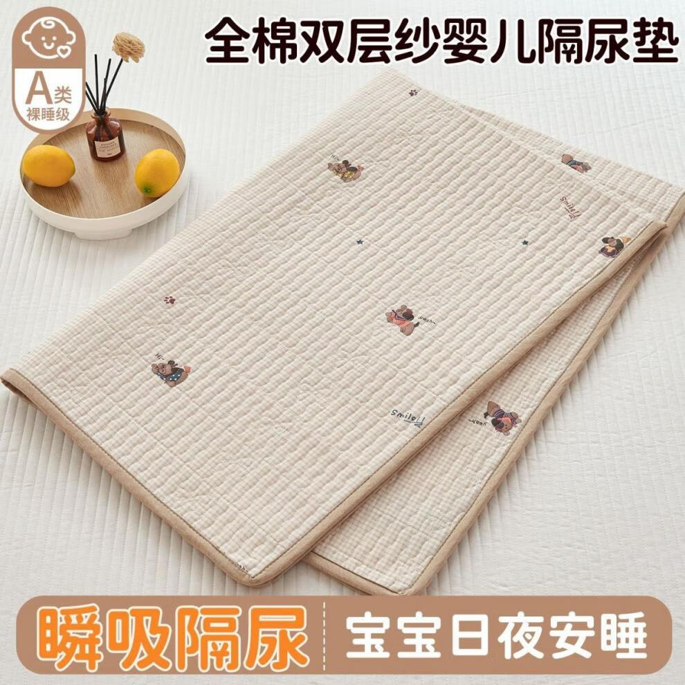 Disney (Disney) Class A cotton double-layer gauze baby changing pad waterproof pure cotton breathable baby sheet overnight diaper aunt mattress waterproof model - Doudou Good Friends 100% cotton double-layer gauze changing pad 50x75cm