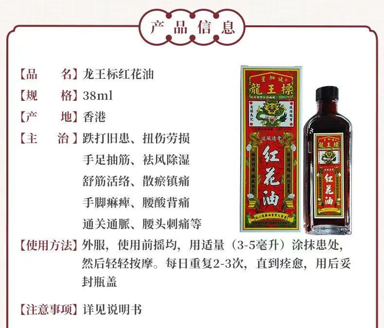 Dragon King Original Safflower Essential Oil 38ml for cervical vertebra pain, bruises, joint and bone pain Dragon King Safflower Essential Oil 1 bottle