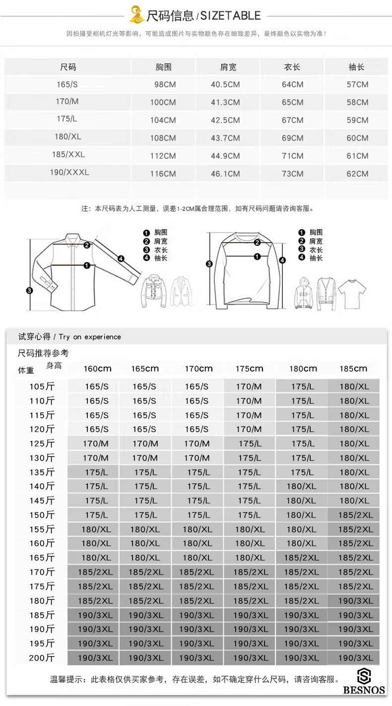 China (cm) 165 / 88-90 170 / 96-98 175 / 108-110 180 / 118-122 185 / 126-130