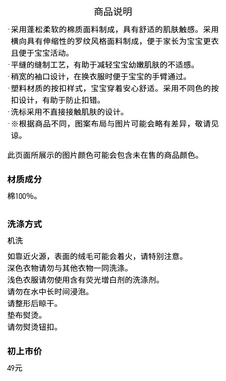 Uniqlo Infant and Toddler Baby Coverall Long Sleeve 1-piece Baby Clothes One-piece Coverall Harness 481862 01 Milky White 90cm