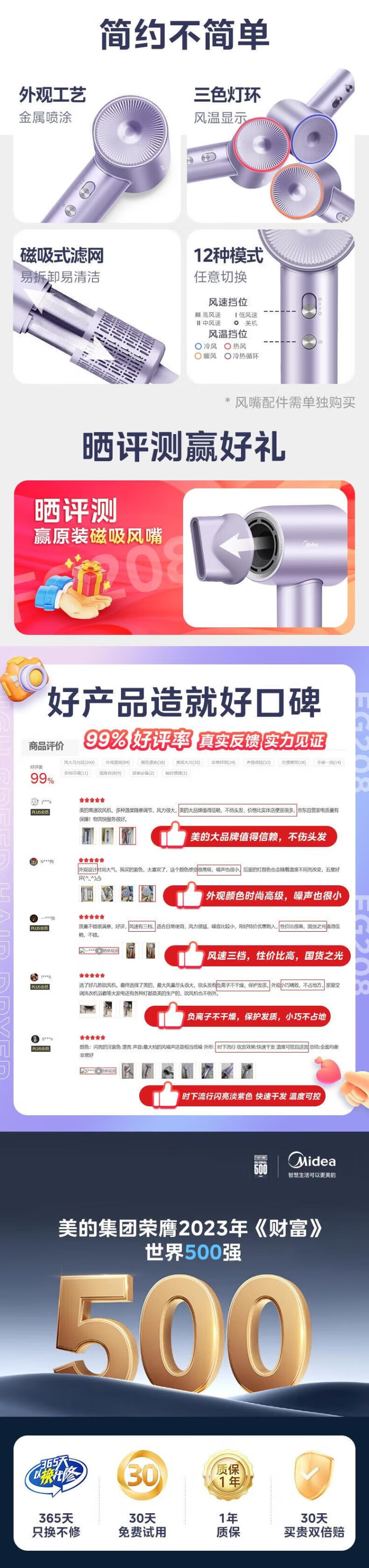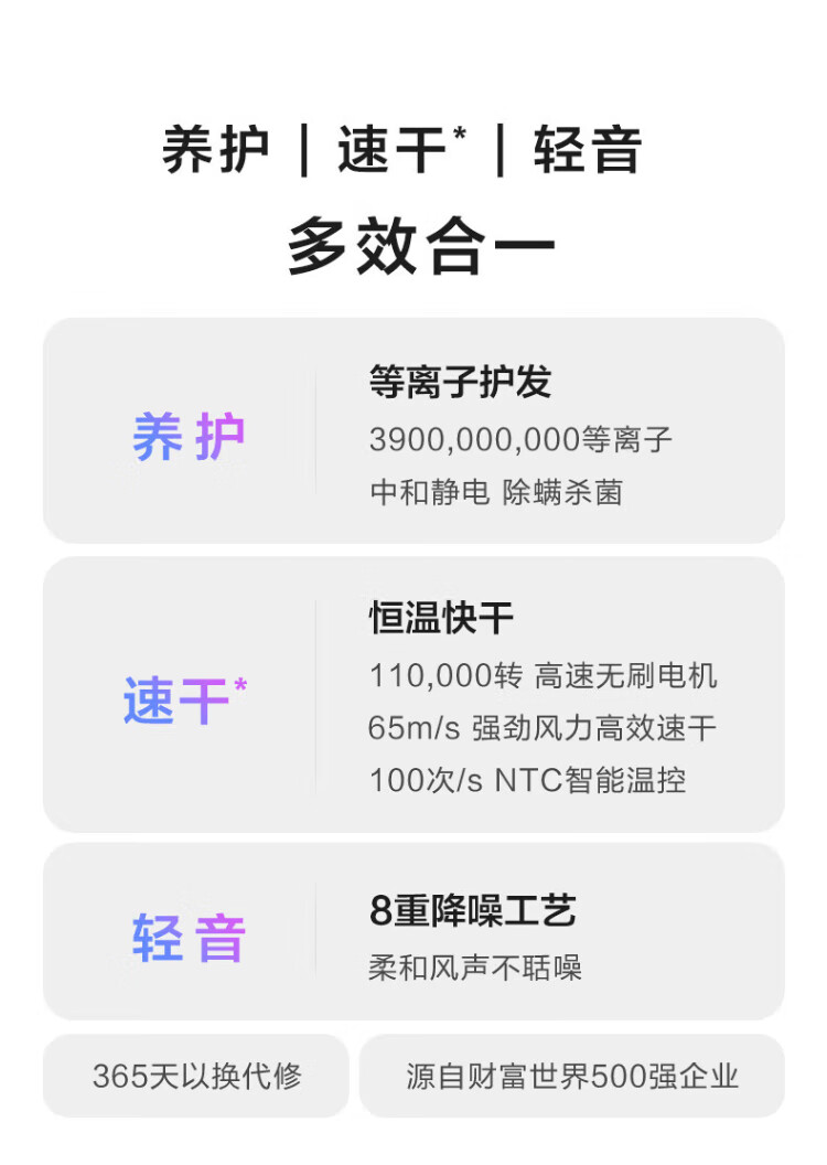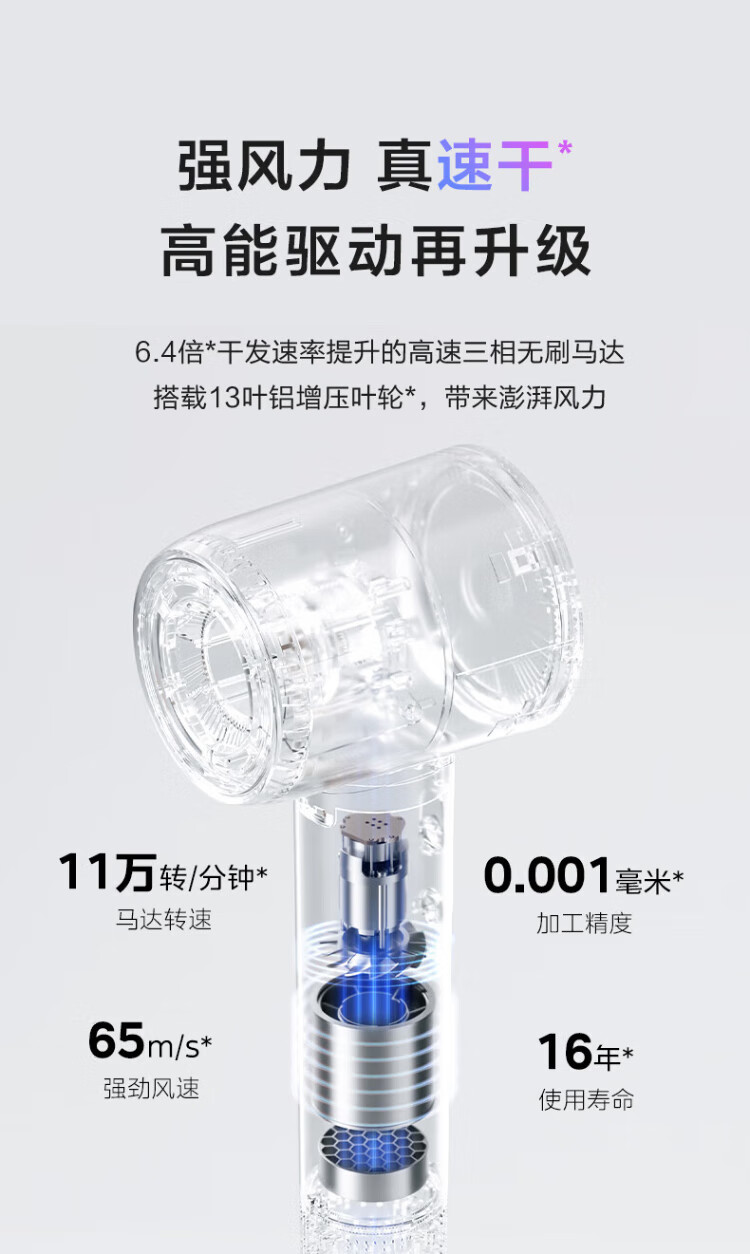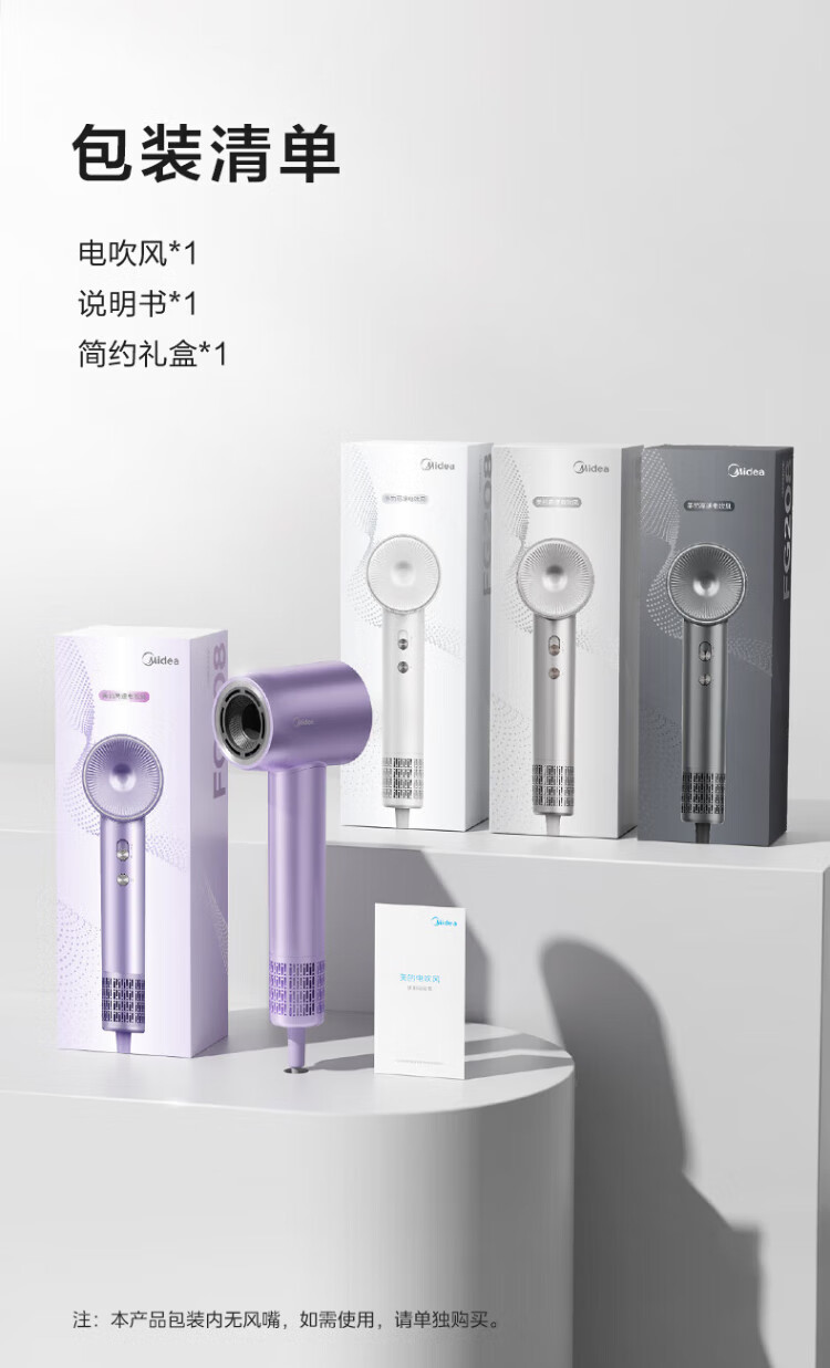 Midea hair dryer, household high-speed hair dryer, high-power sterilization, head mite removal, hair care, no damage to hair, strong wind, quick drying, portable student boyfriend and girlfriend birthday holiday New Year's Day gift, 110,000 rpm + 3.9 billion plasma, Aurora Purple