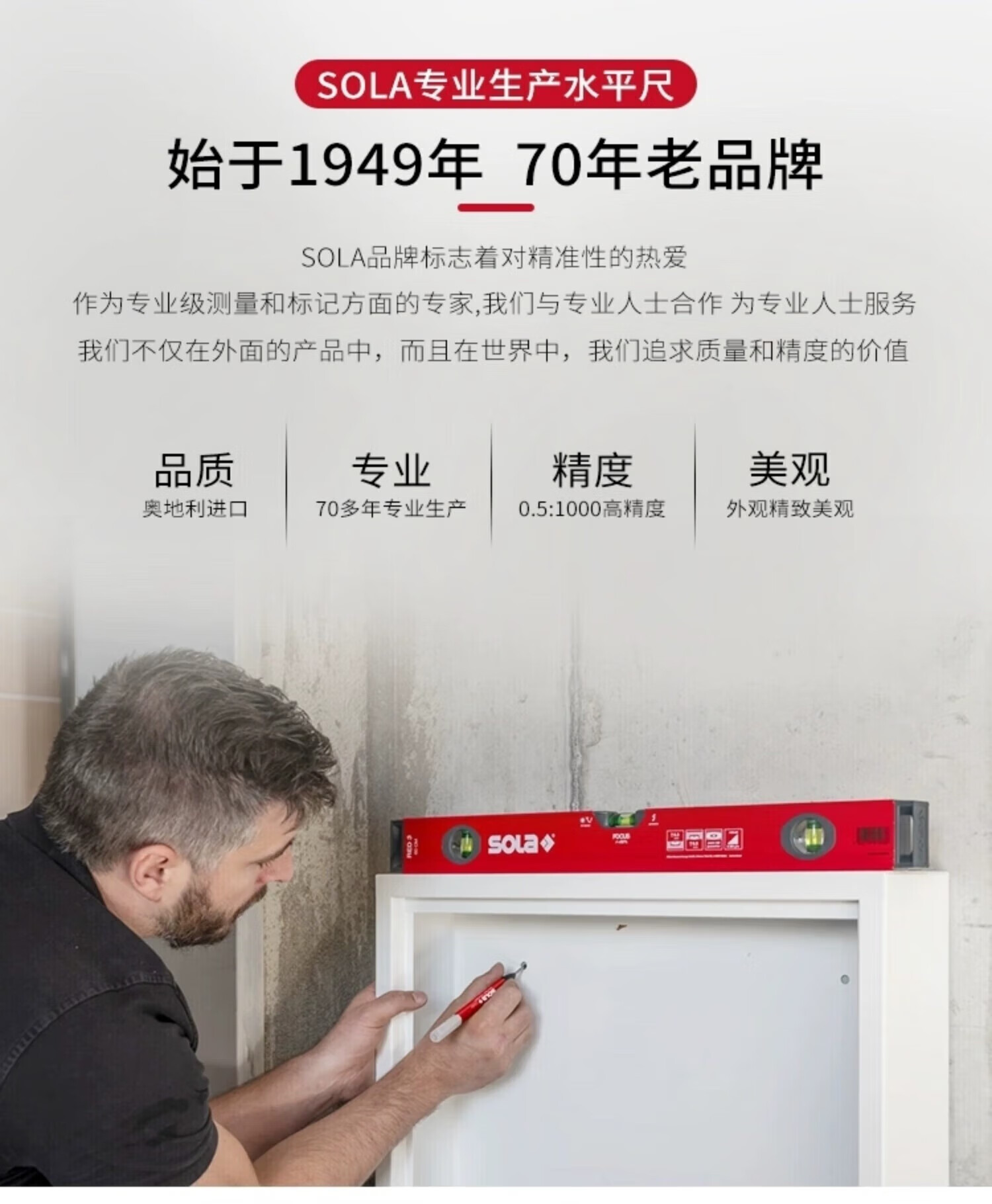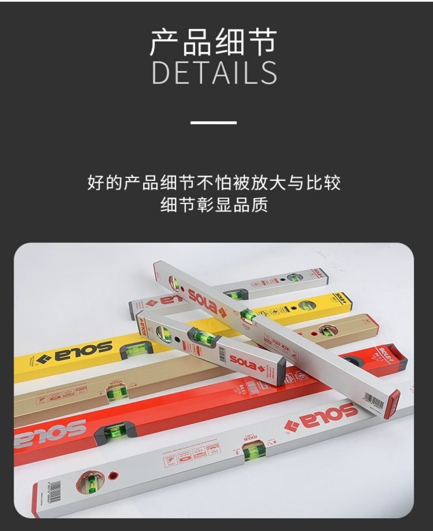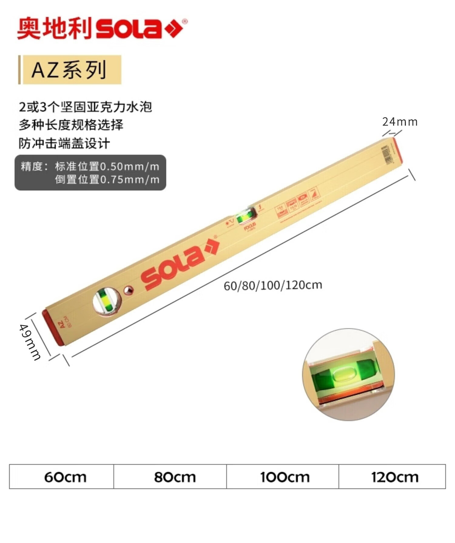 Jingeyu/Sola original imported spirit level Aobao high-precision luminous visible aluminum alloy silver SN7827 AZB series 3 bubbles 80 size