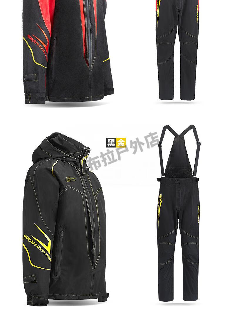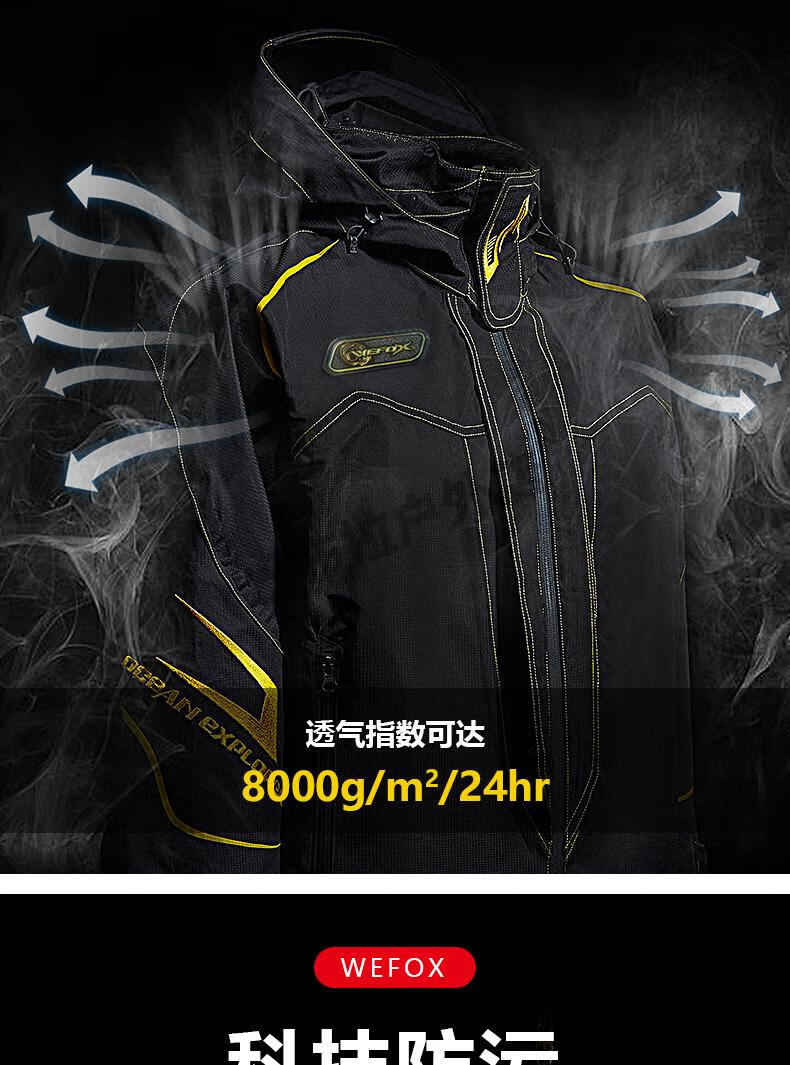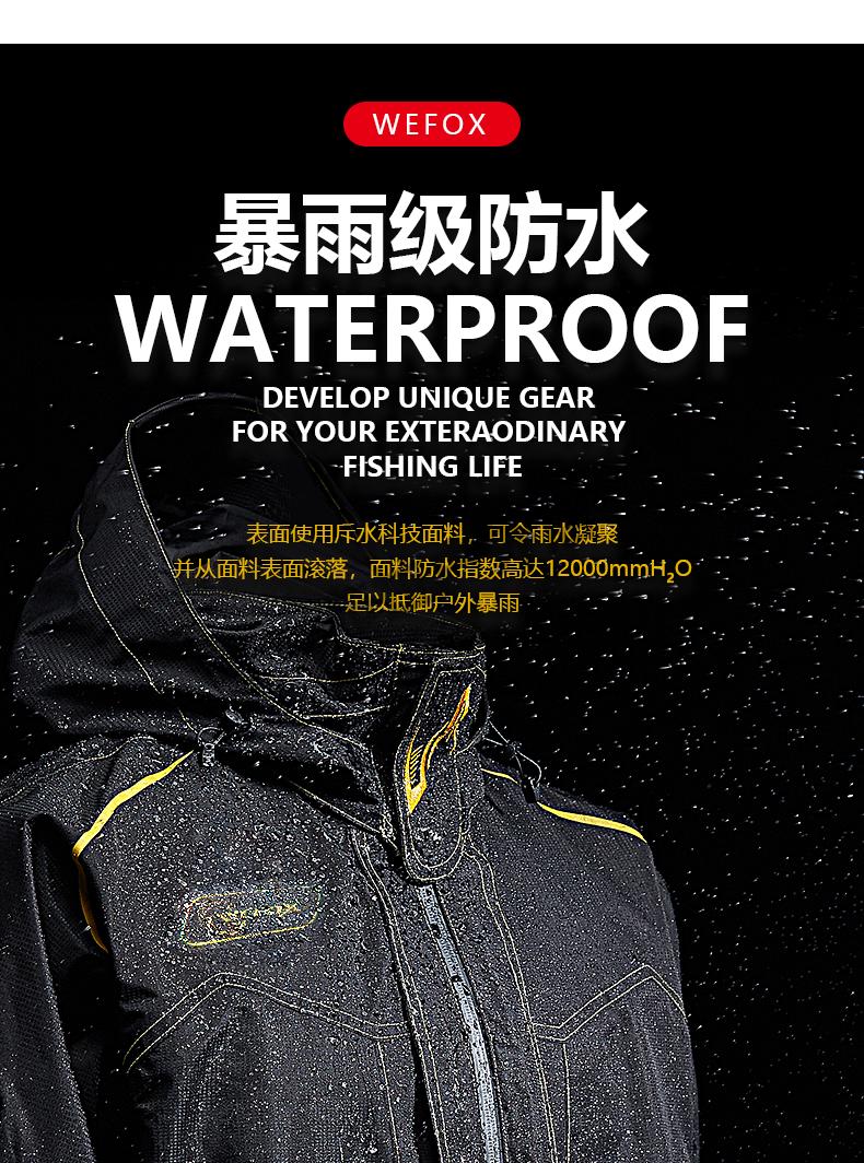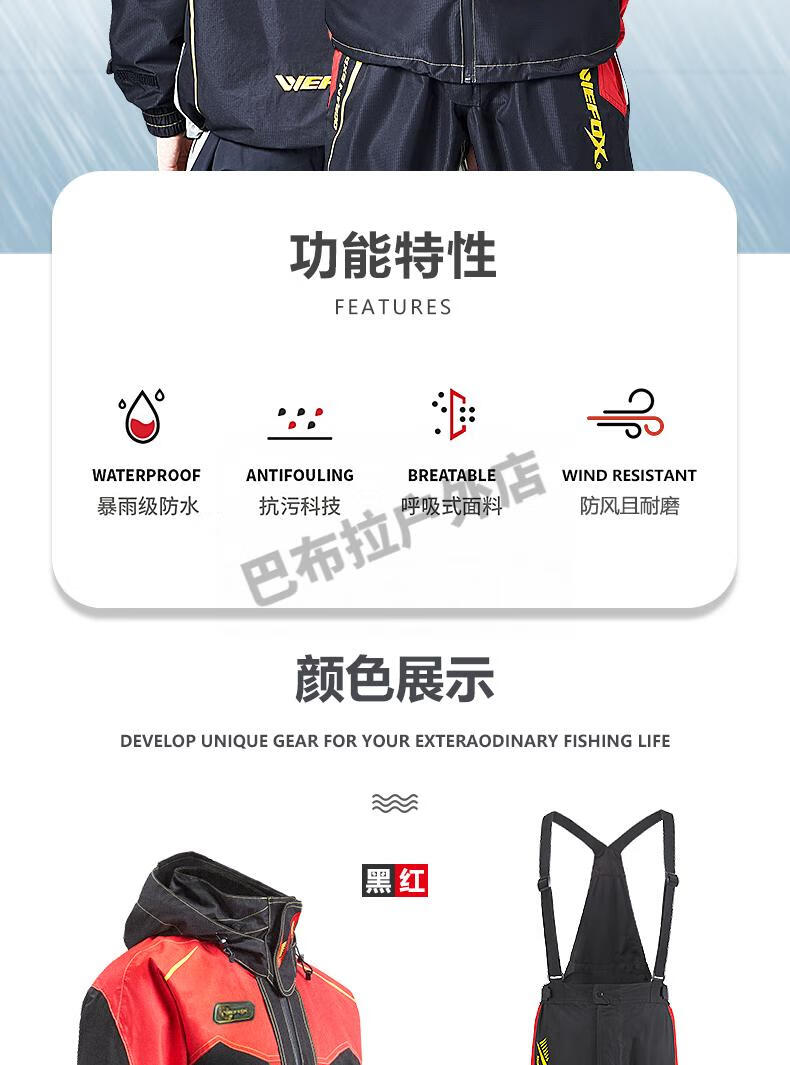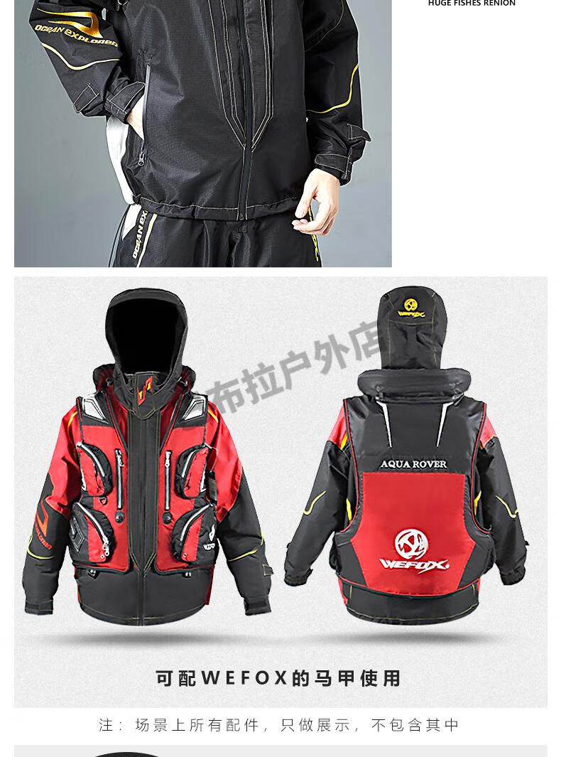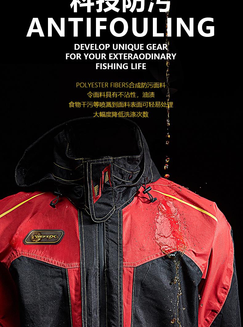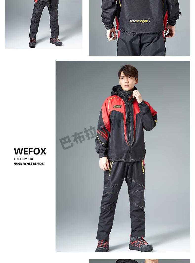 WEFOX WEFOX fishing clothing outdoor jacket sea fishing raincoat breathable waterproof windproof rock fishing suit set WCX-4008_black red_ready in stock XL
