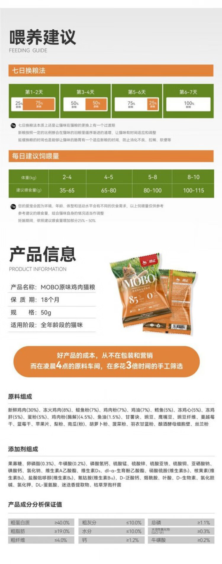 Wenzhi MOBO Tangerine full price non-shedding chicken craving replacement food for kittens grain-free trial pack nutrition increase original chicken cat food 150g 3 bags