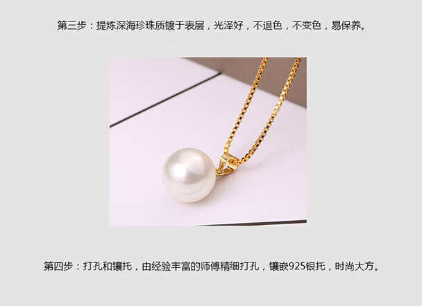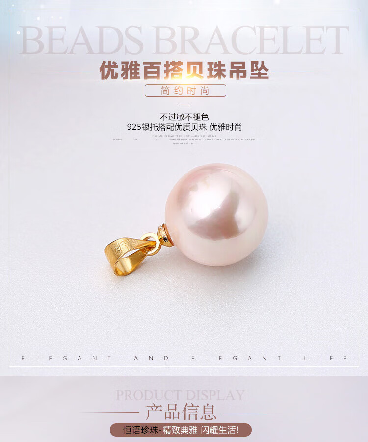 Star quality necklace single pearl pendant silver buckle plated with 18K Bengal gold natural shell beads white gold base 16-16mm