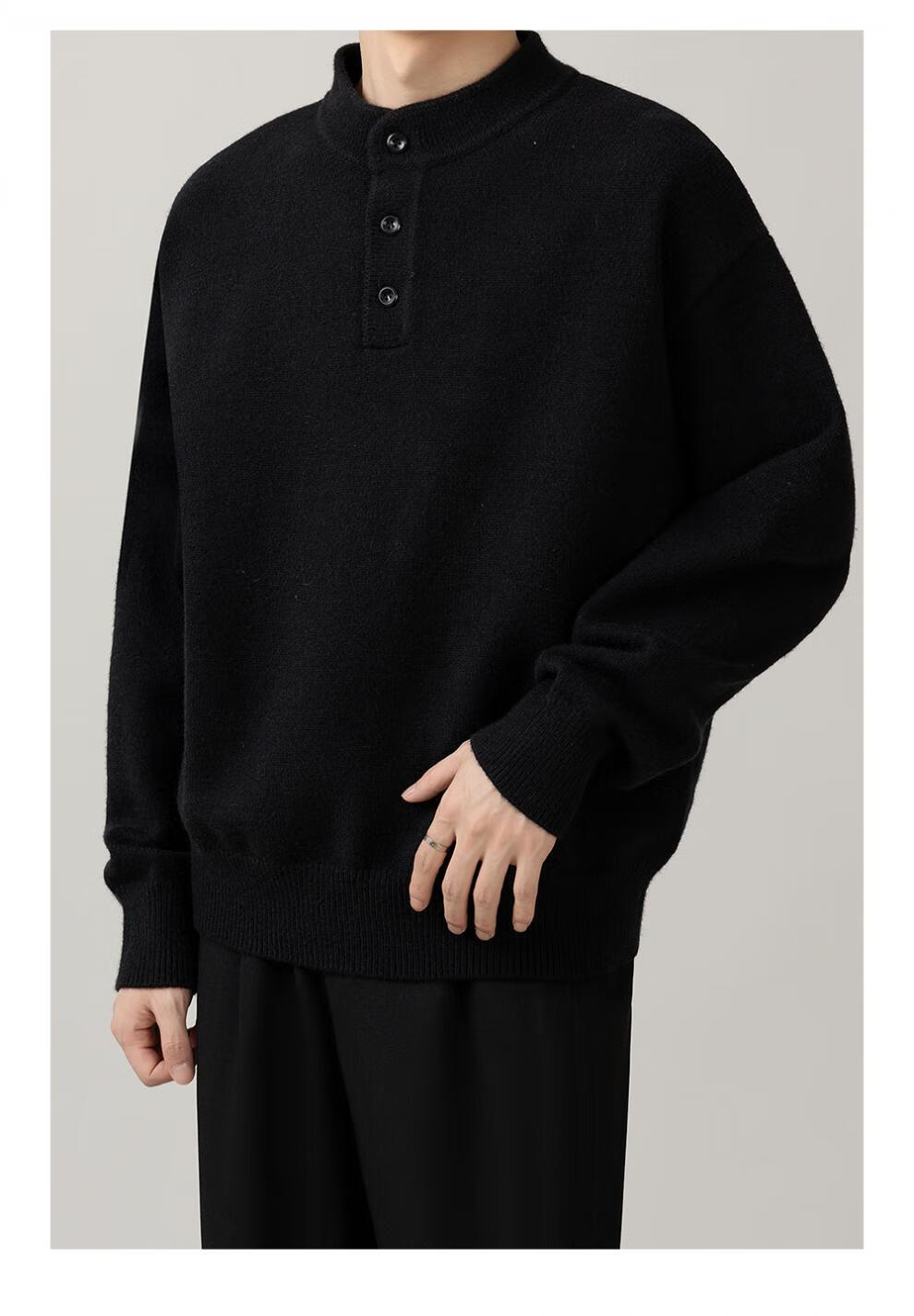 TLXT international first-line brand Henry collar half-cardigan simple sweater men's casual commuting sweater 2025 autumn and winter new style dark gray S