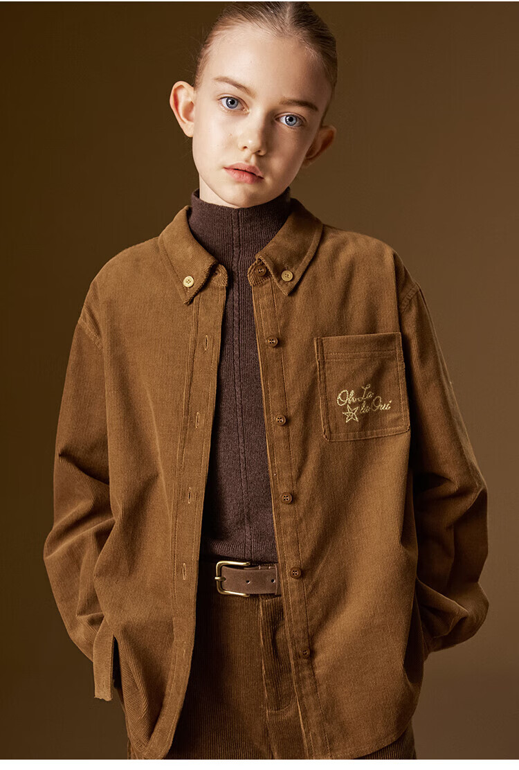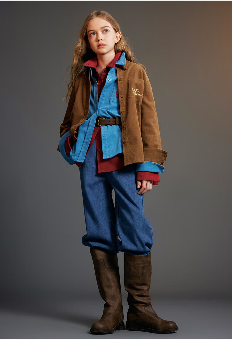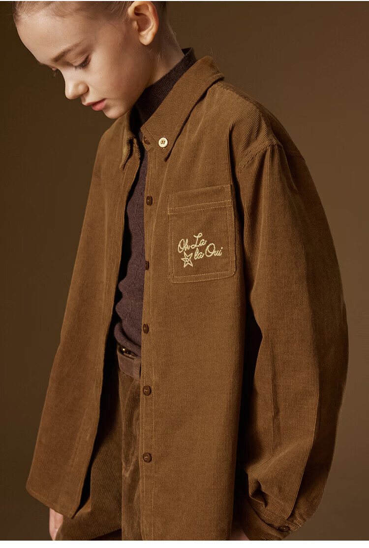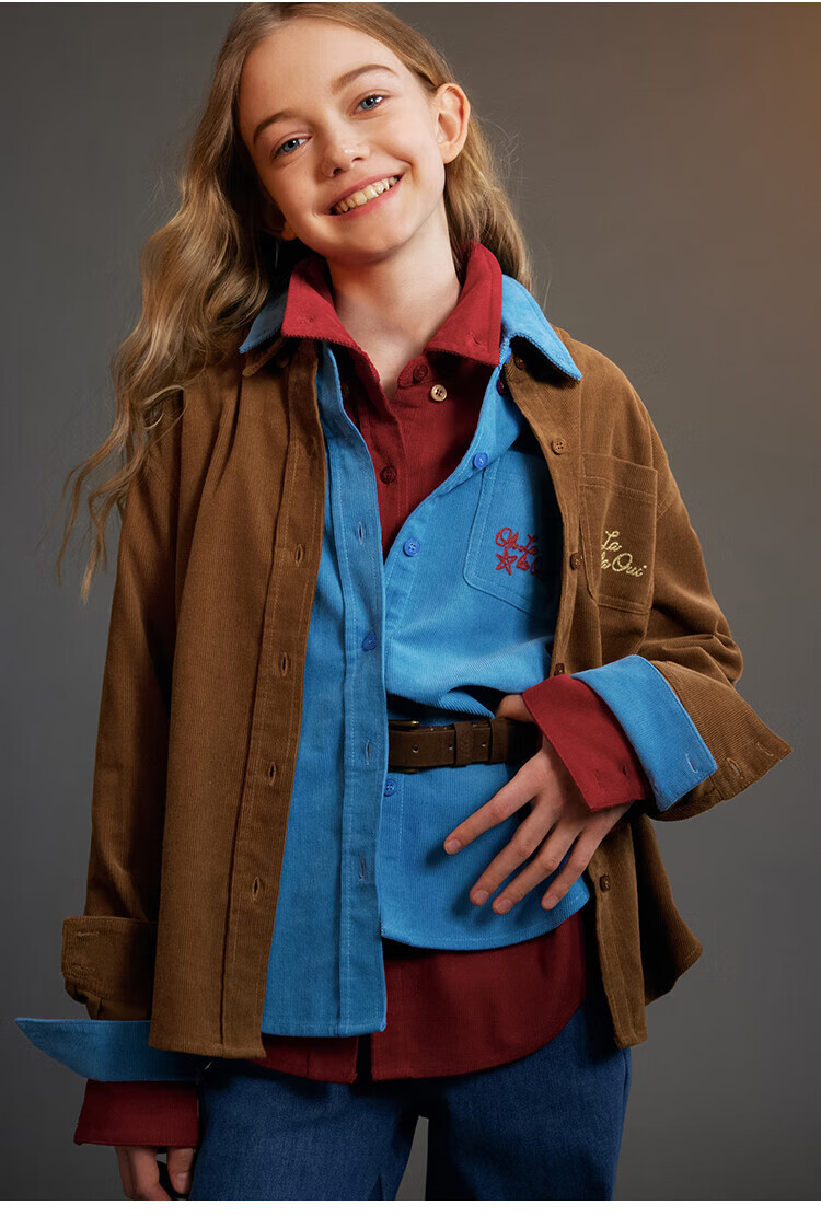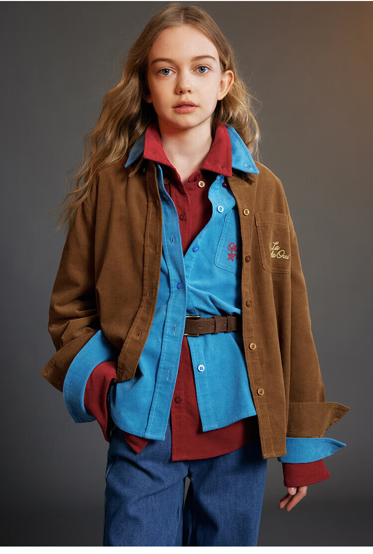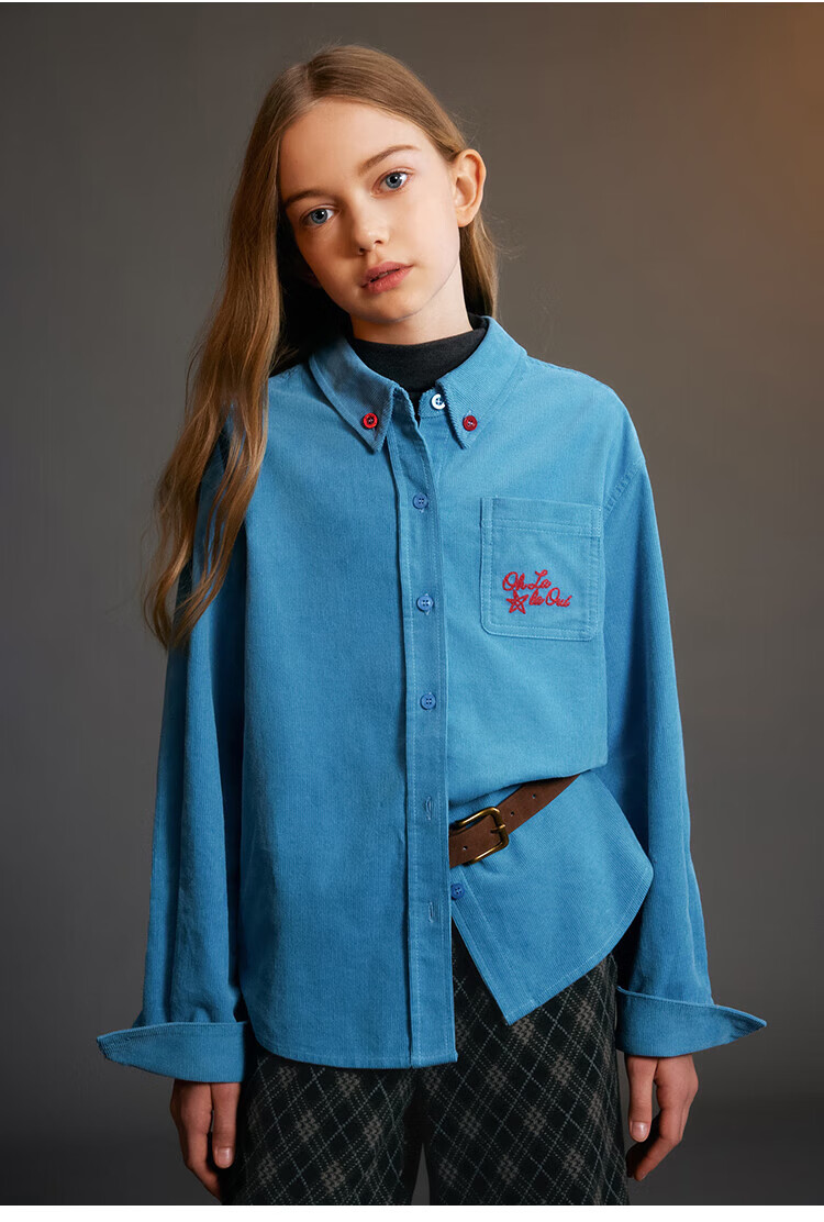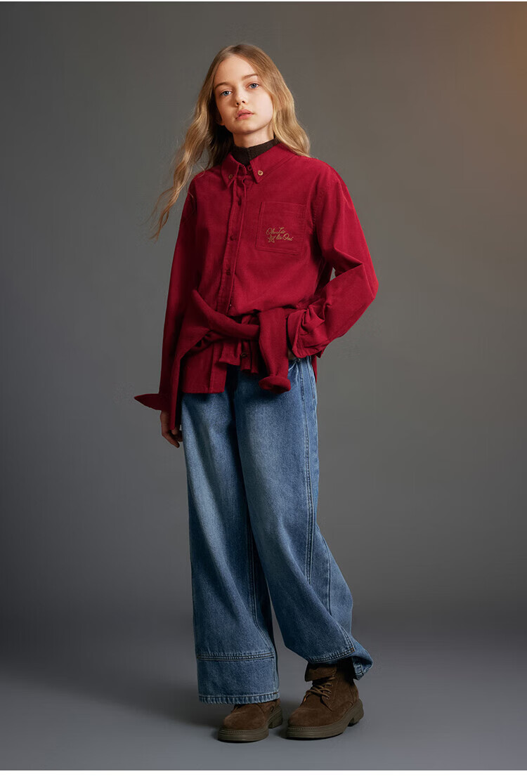 ELLE KIDS Children's Clothing Contrast Color Embroidered Long Sleeve Horse Year New Year Red Shirt Girls Autumn and Winter Corduroy Casual Versatile Top New Year Red 120 (110/120)