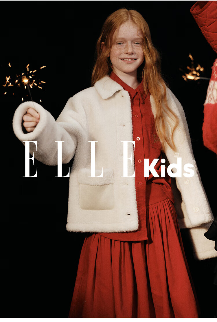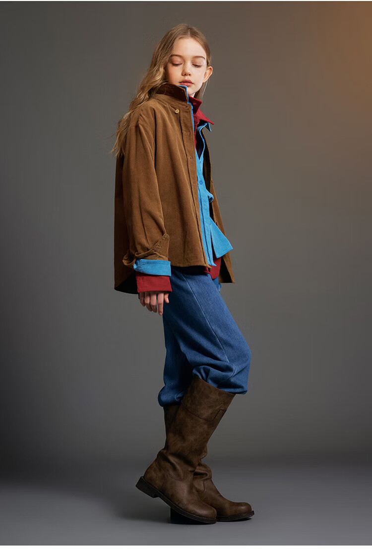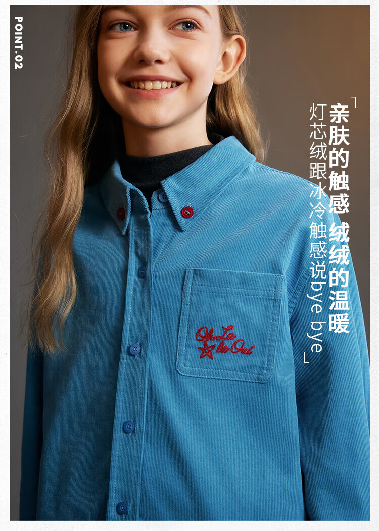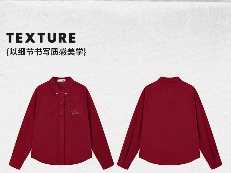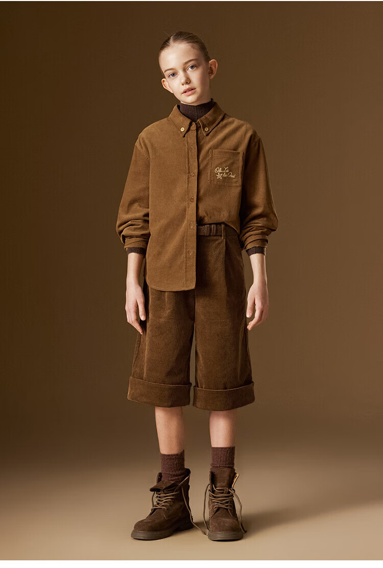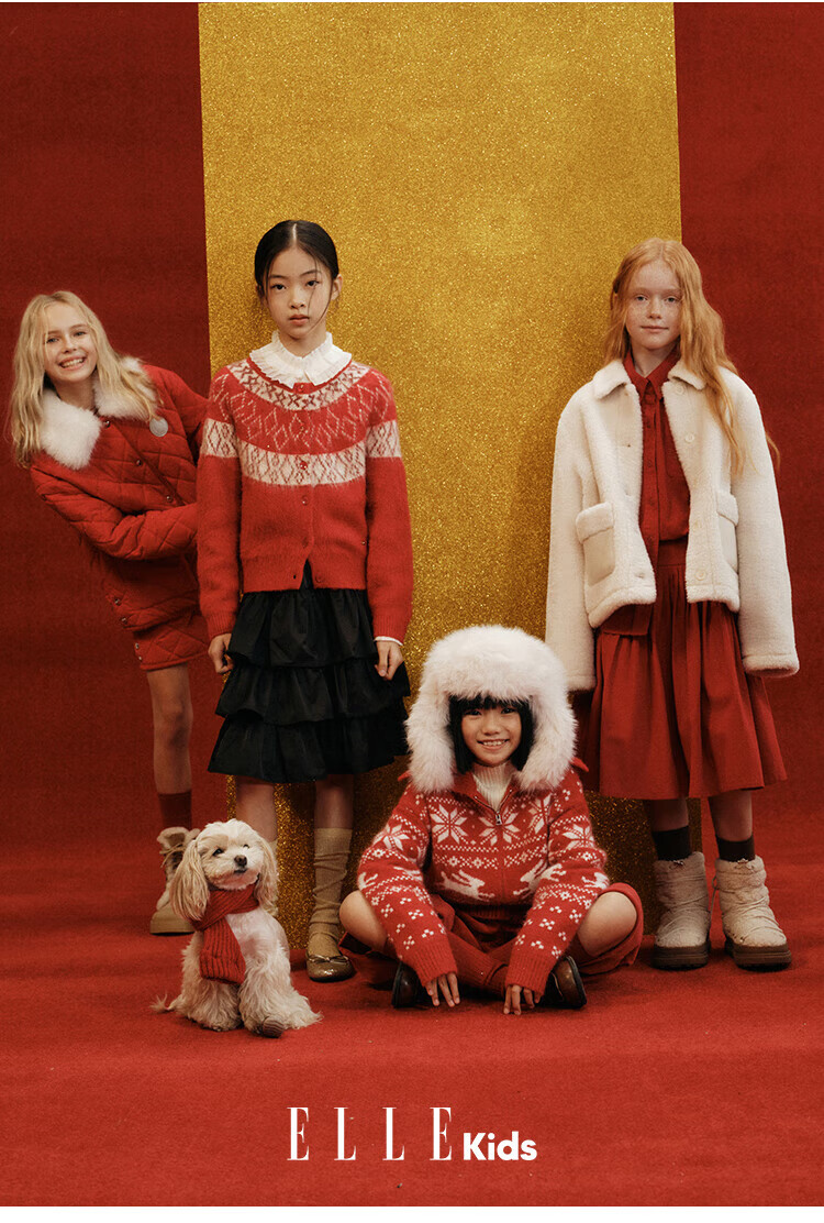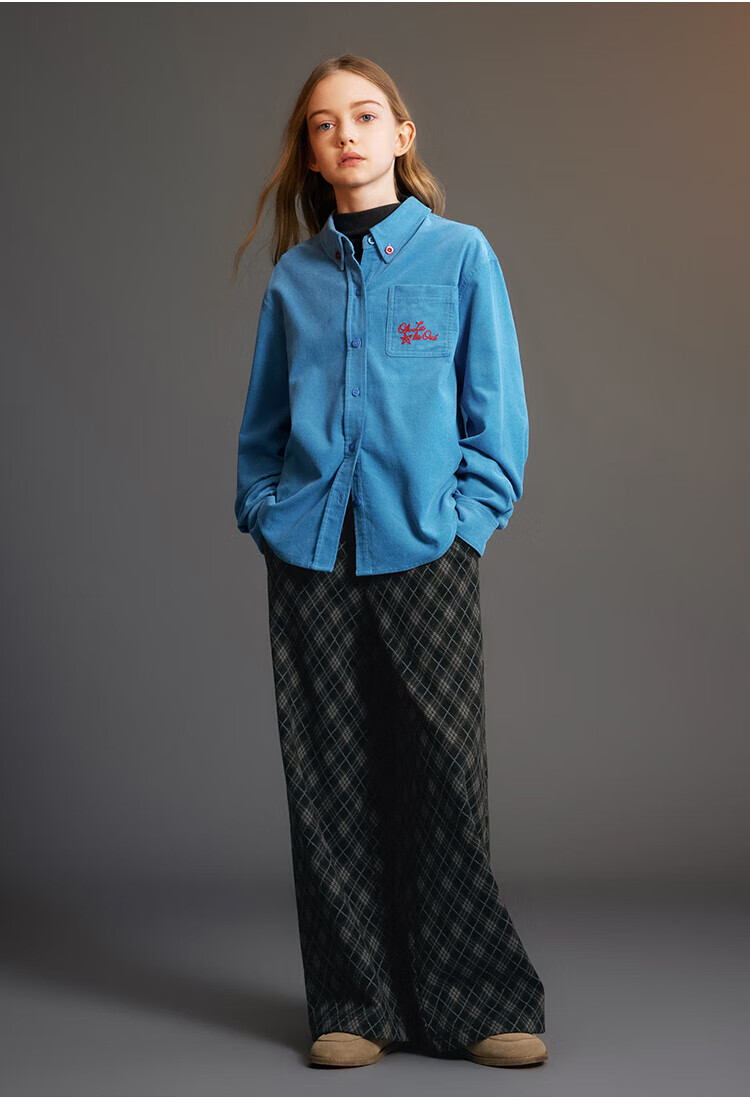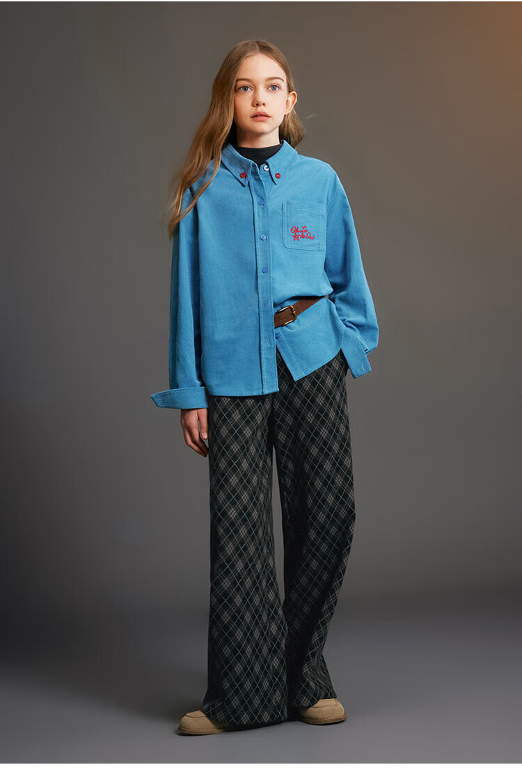ELLE KIDS Children's Clothing Contrast Color Embroidered Long Sleeve Horse Year New Year Red Shirt Girls Autumn and Winter Corduroy Casual Versatile Top New Year Red 120 (110/120)