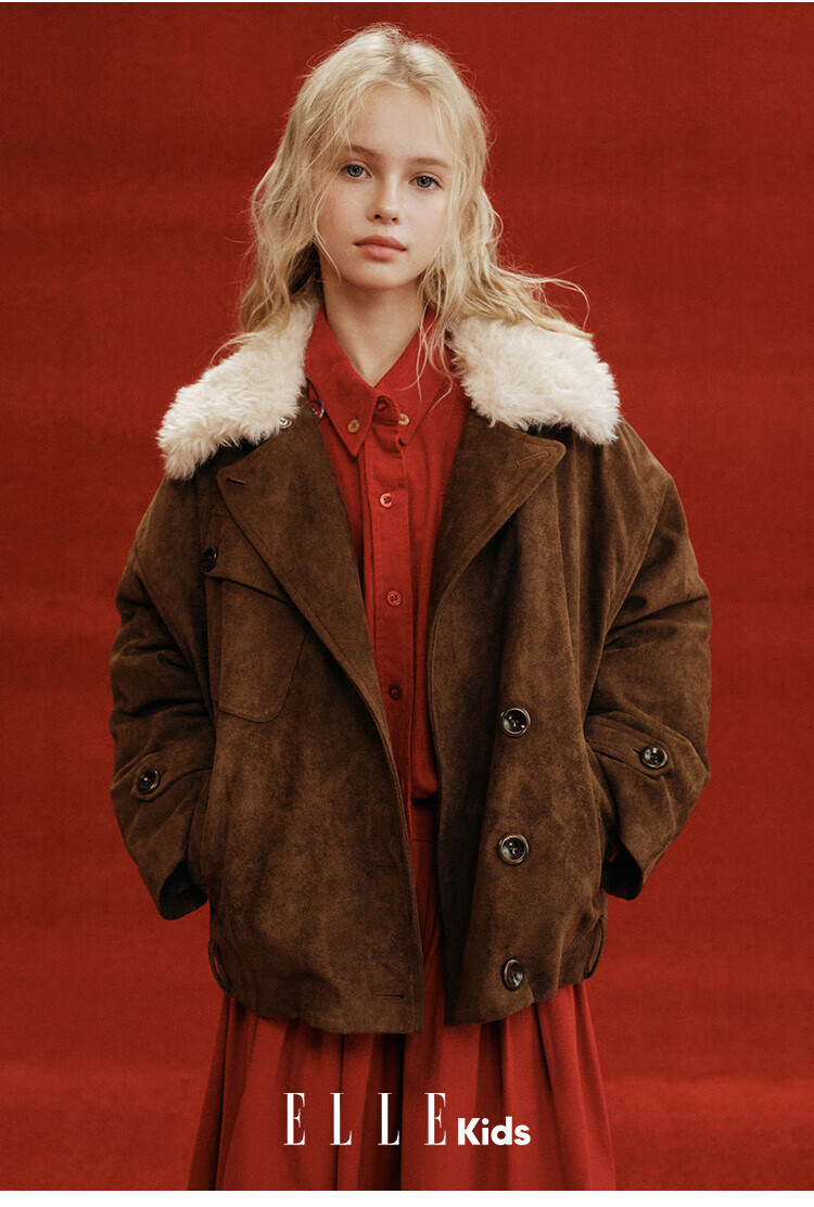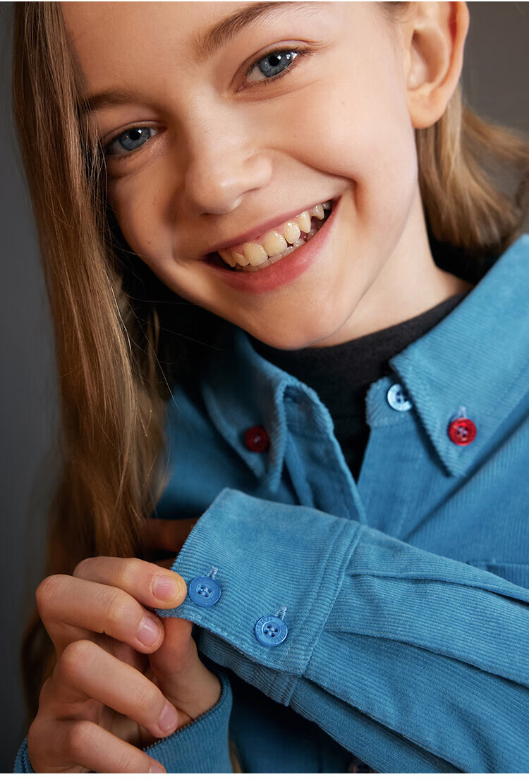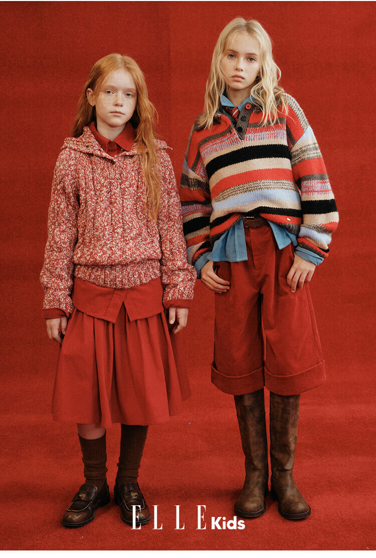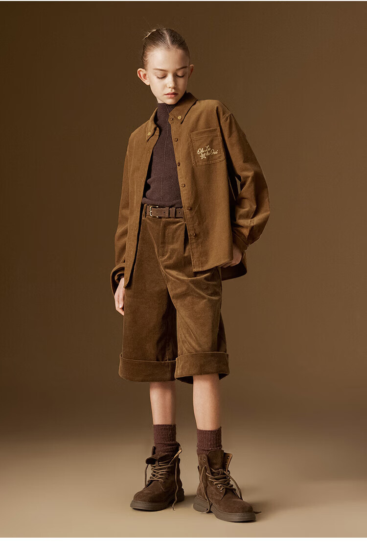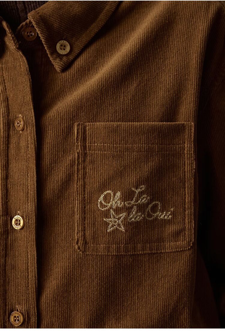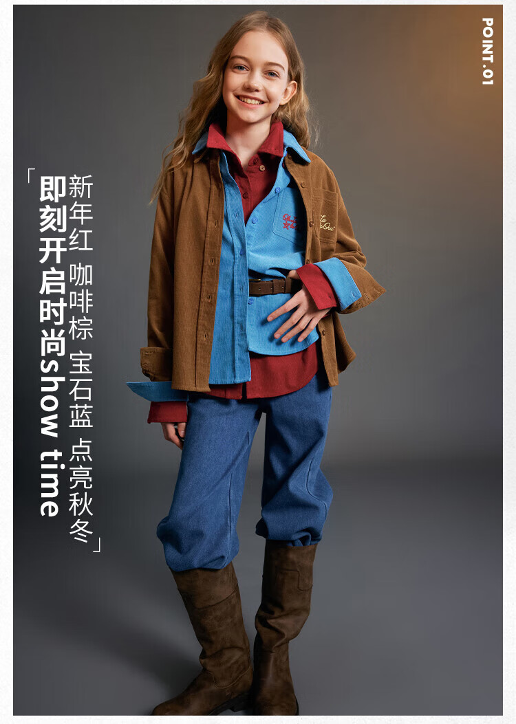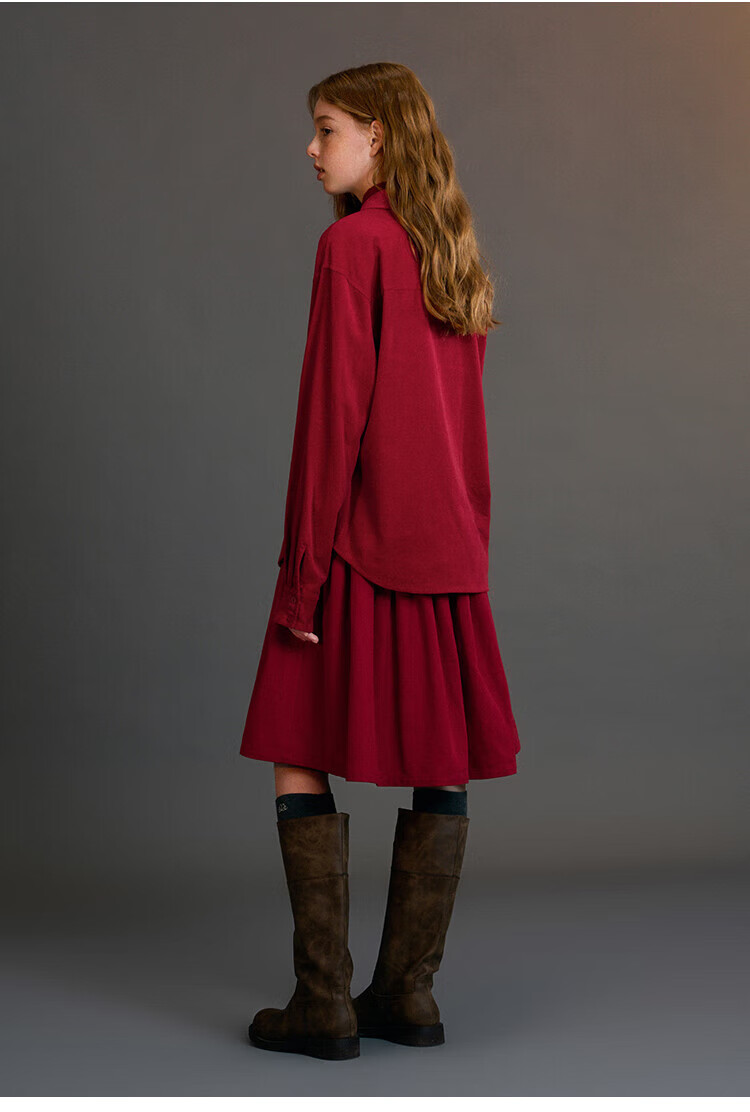ELLE KIDS Children's Clothing Contrast Color Embroidered Long Sleeve Horse Year New Year Red Shirt Girls Autumn and Winter Corduroy Casual Versatile Top New Year Red 120 (110/120)