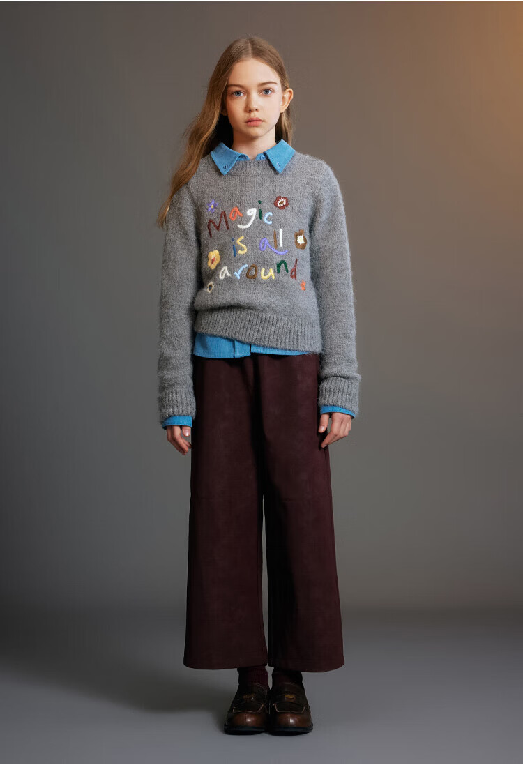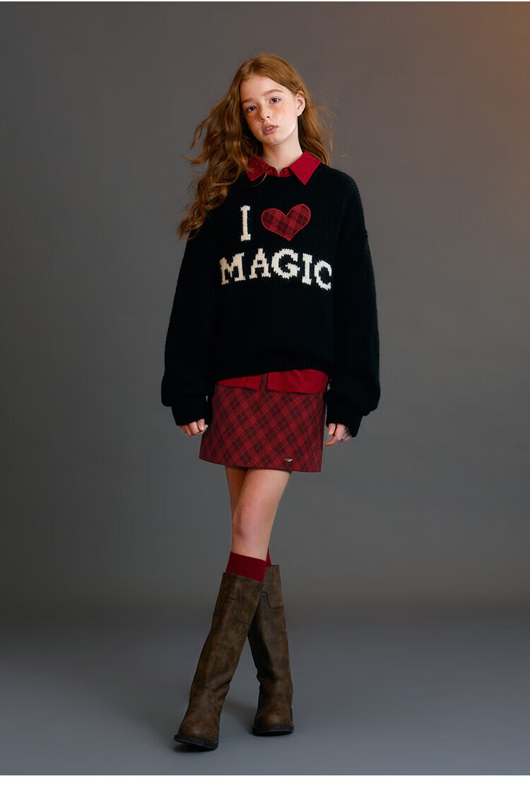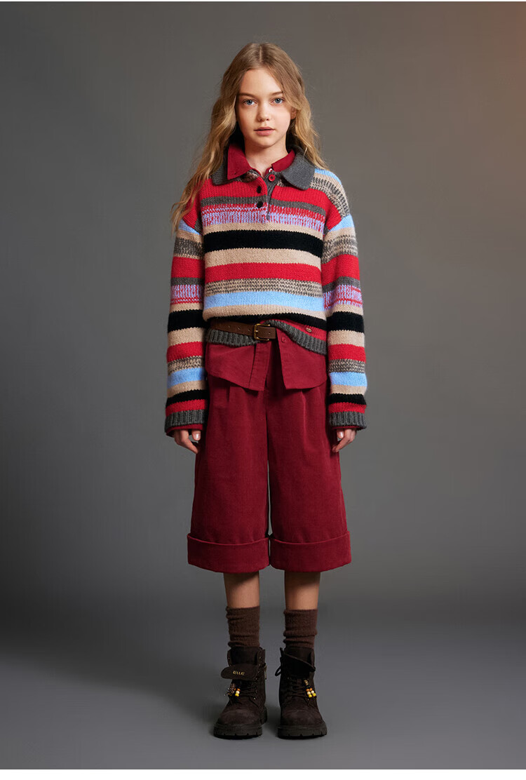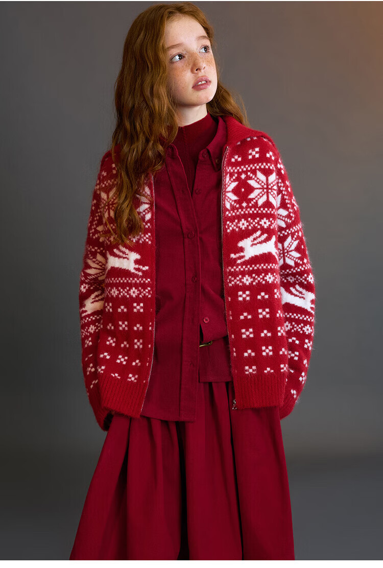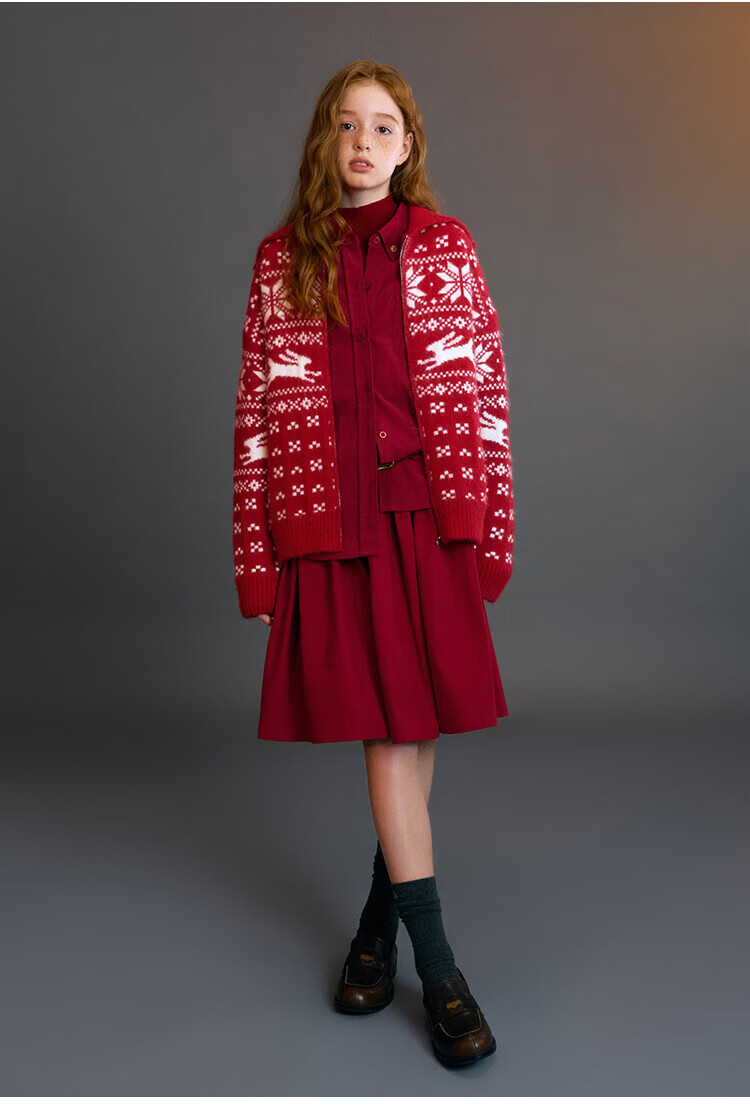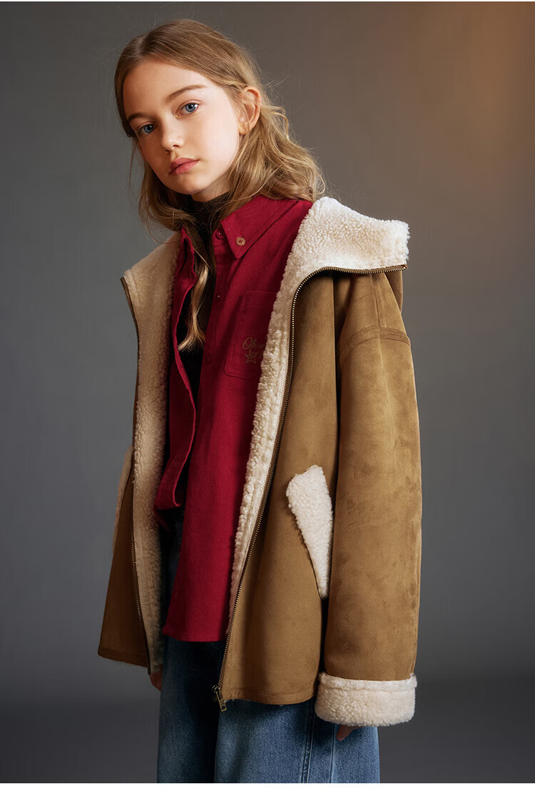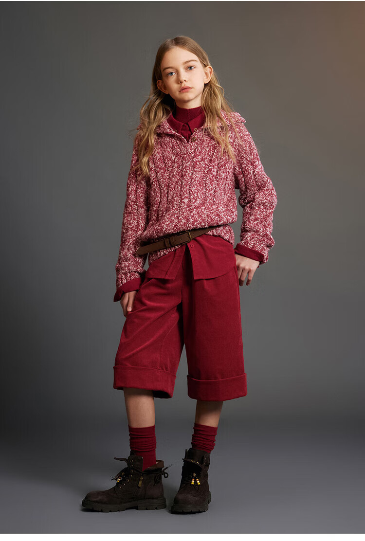 ELLE KIDS Children's Clothing Contrast Color Embroidered Long Sleeve Horse Year New Year Red Shirt Girls Autumn and Winter Corduroy Casual Versatile Top New Year Red 120 (110/120)