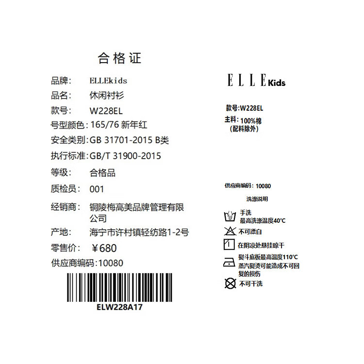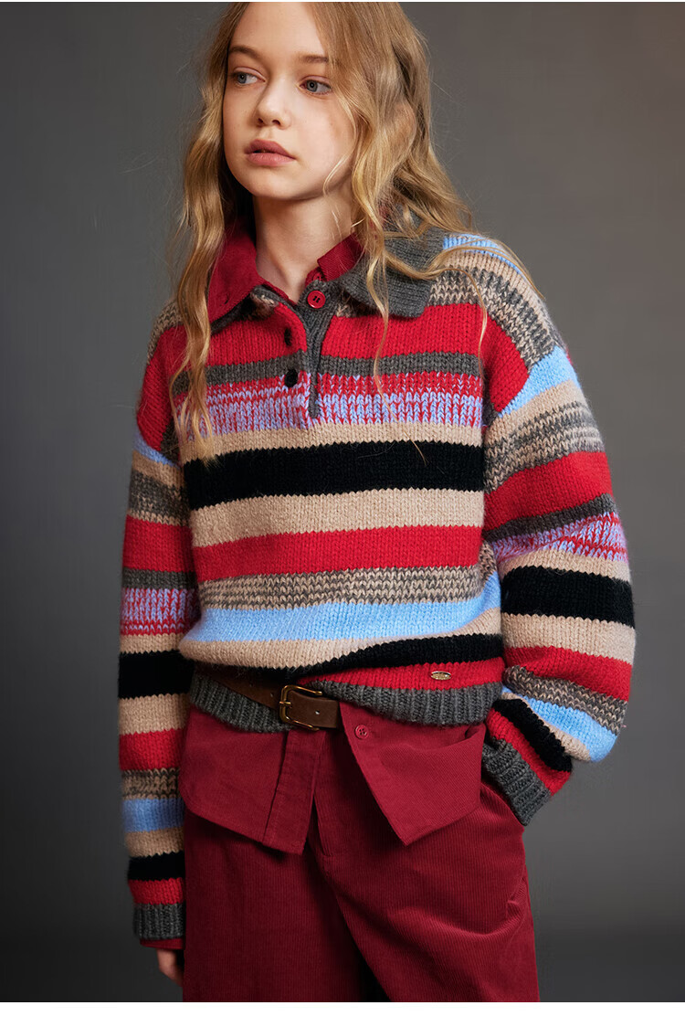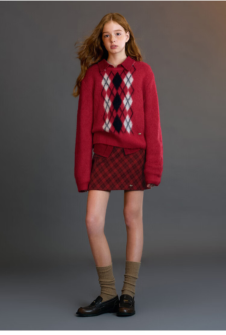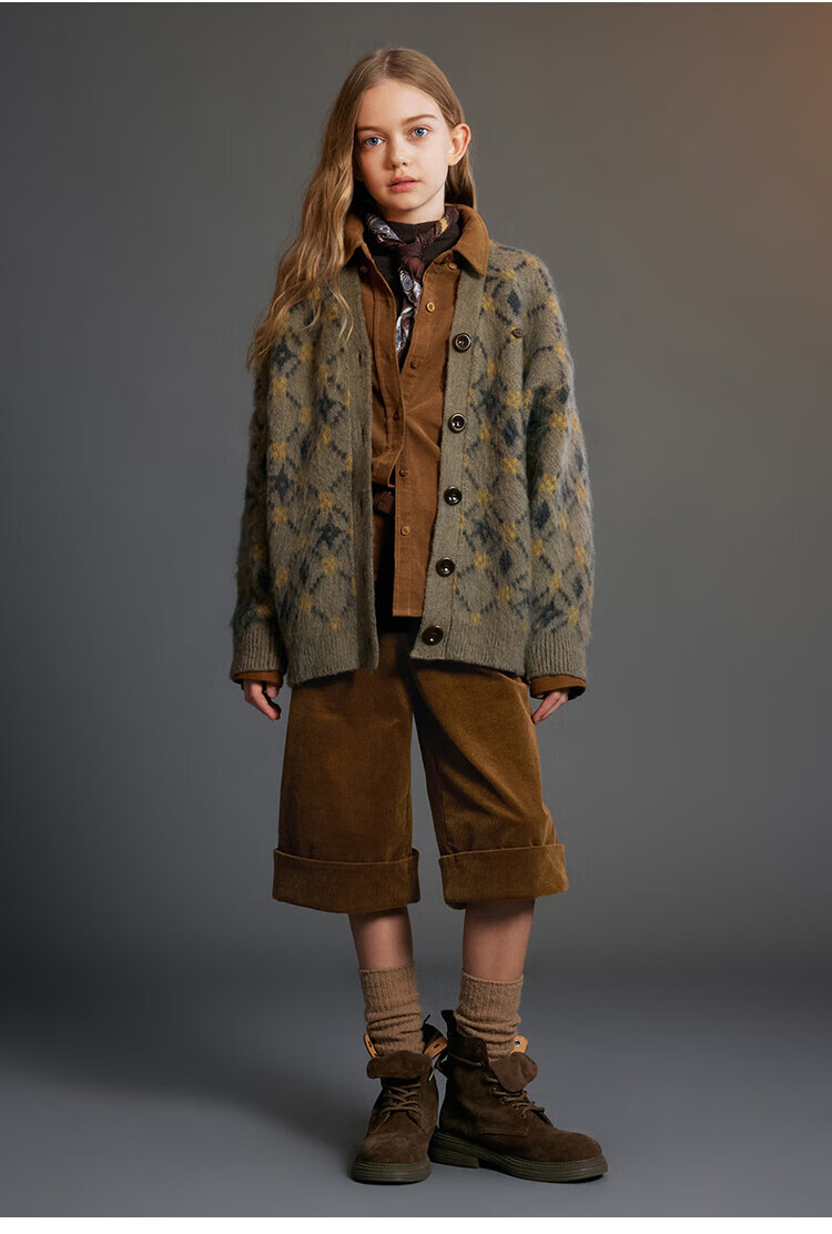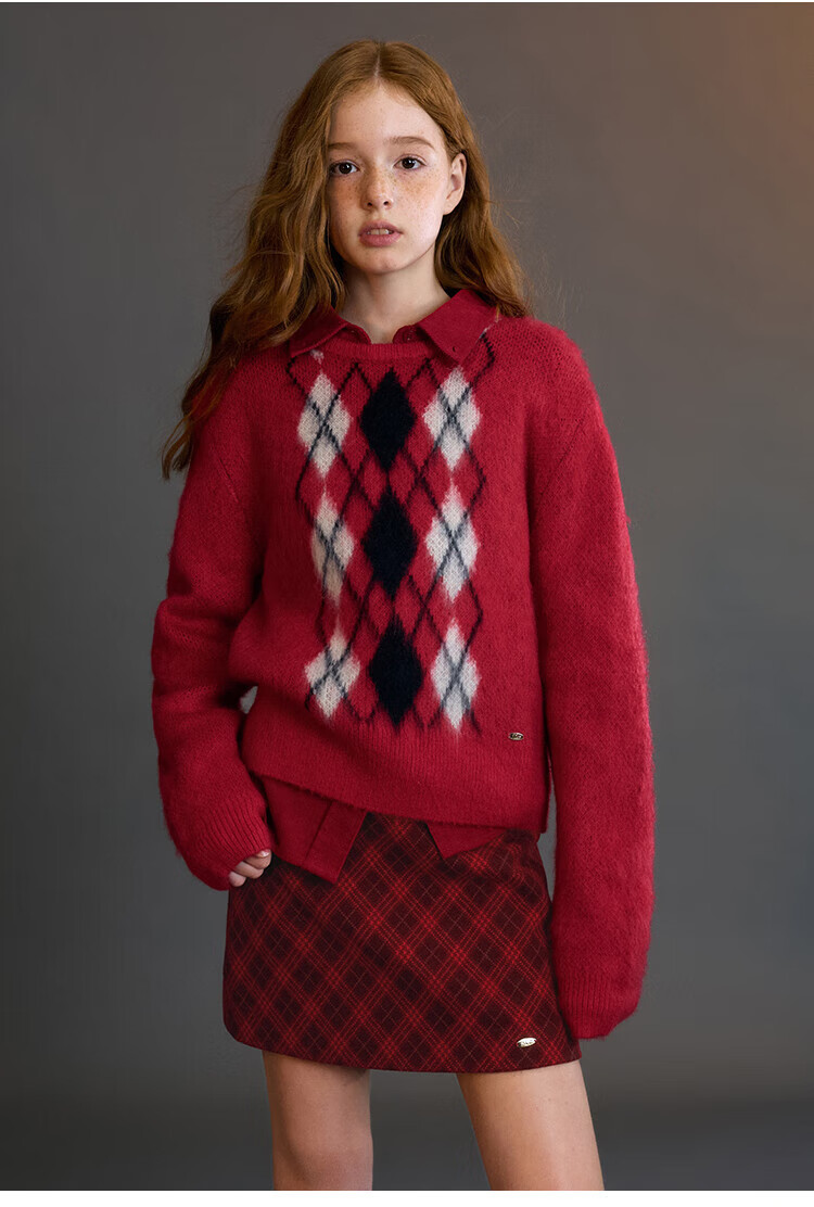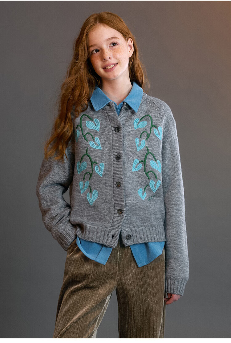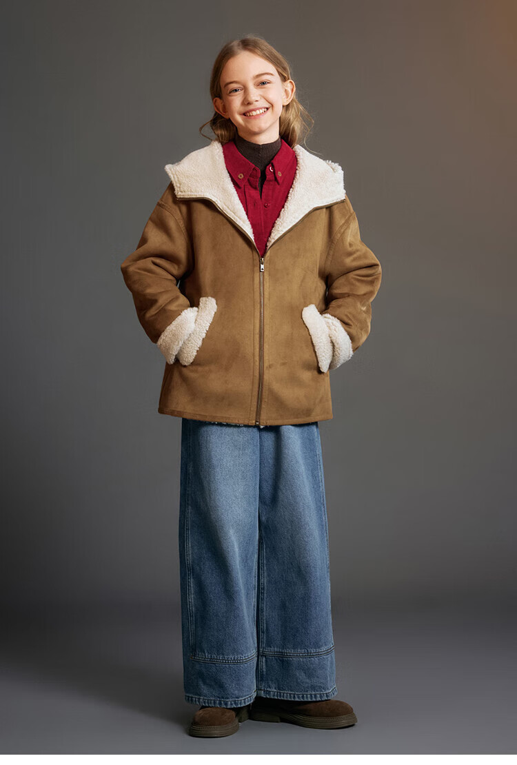 ELLE KIDS Children's Clothing Contrast Color Embroidered Long Sleeve Horse Year New Year Red Shirt Girls Autumn and Winter Corduroy Casual Versatile Top New Year Red 120 (110/120)