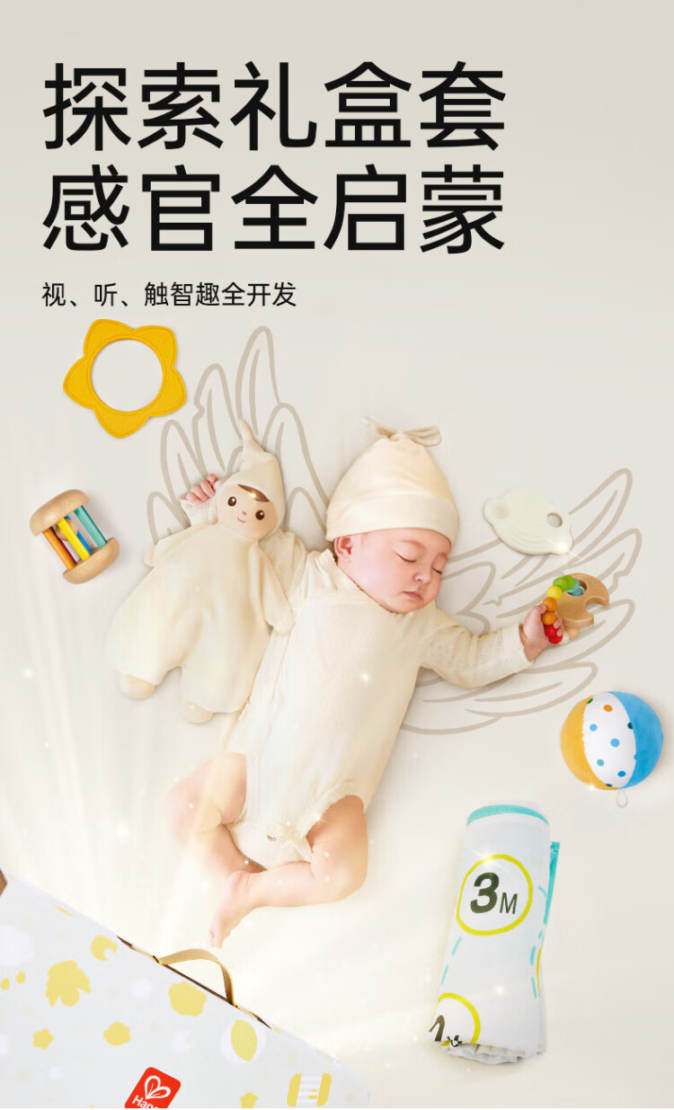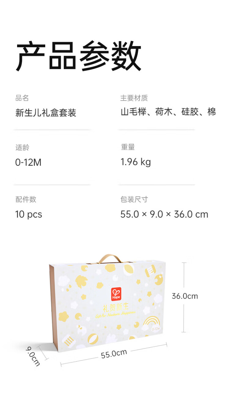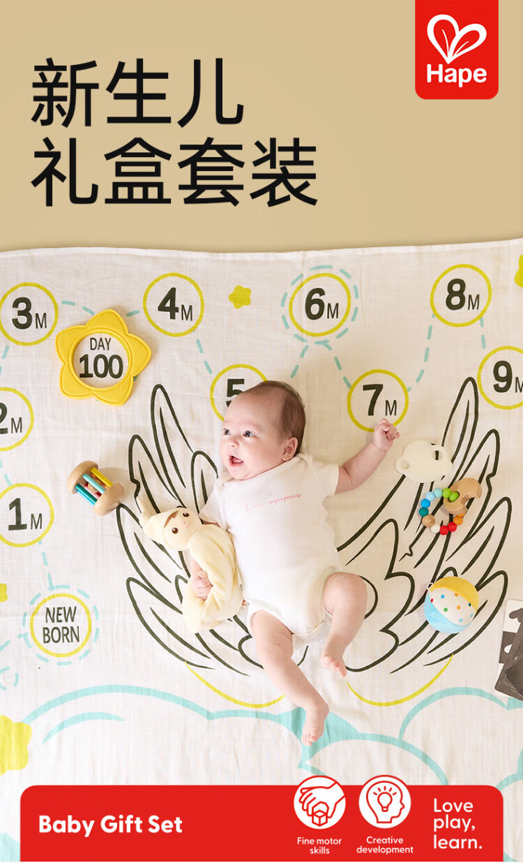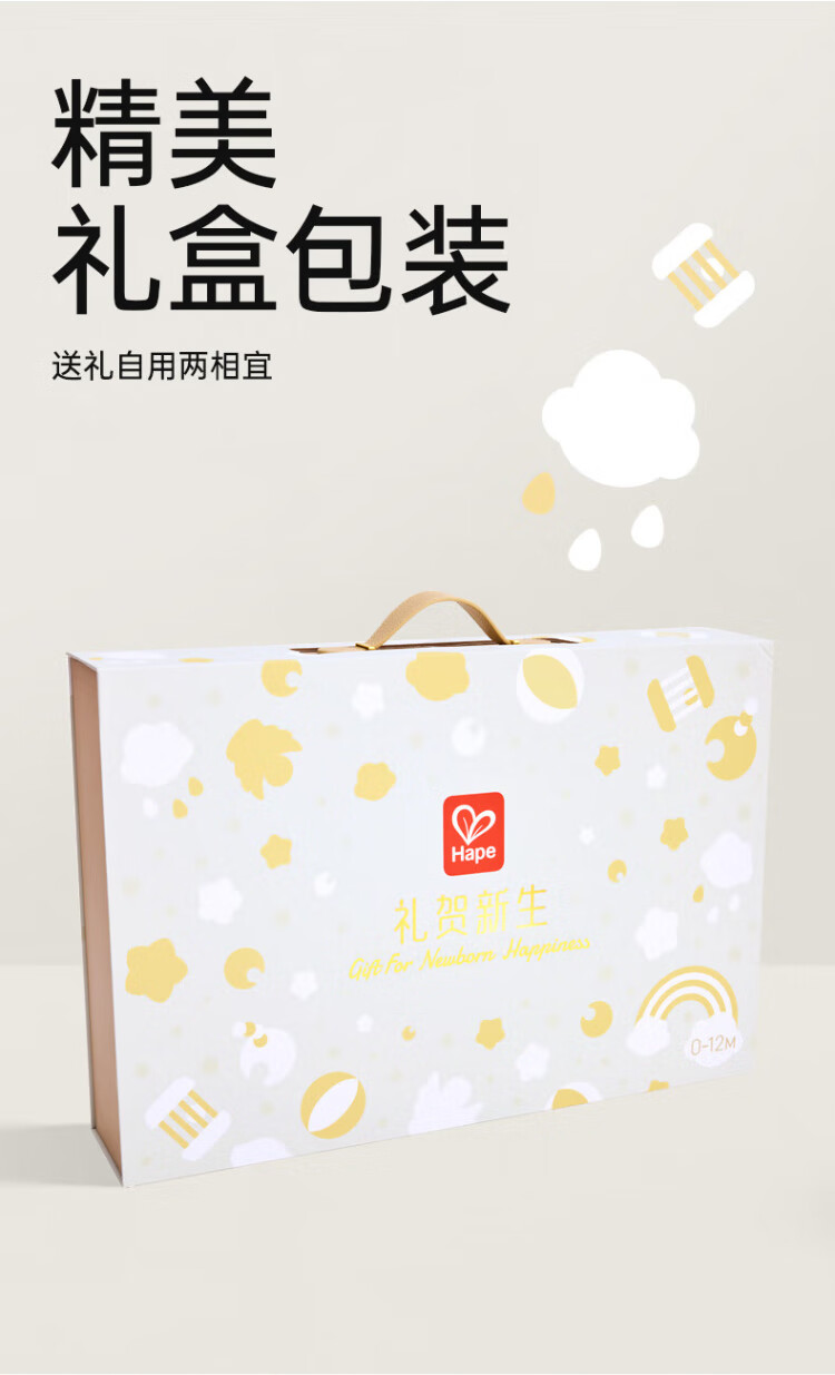 Hape newborn soothing gift box punch blanket hand rattle gripping teether touch ball toy 35610 children's gift newborn gift box set 0-12M