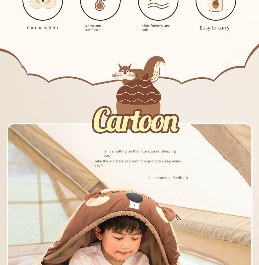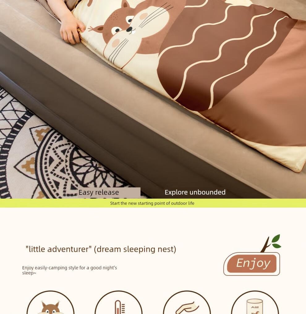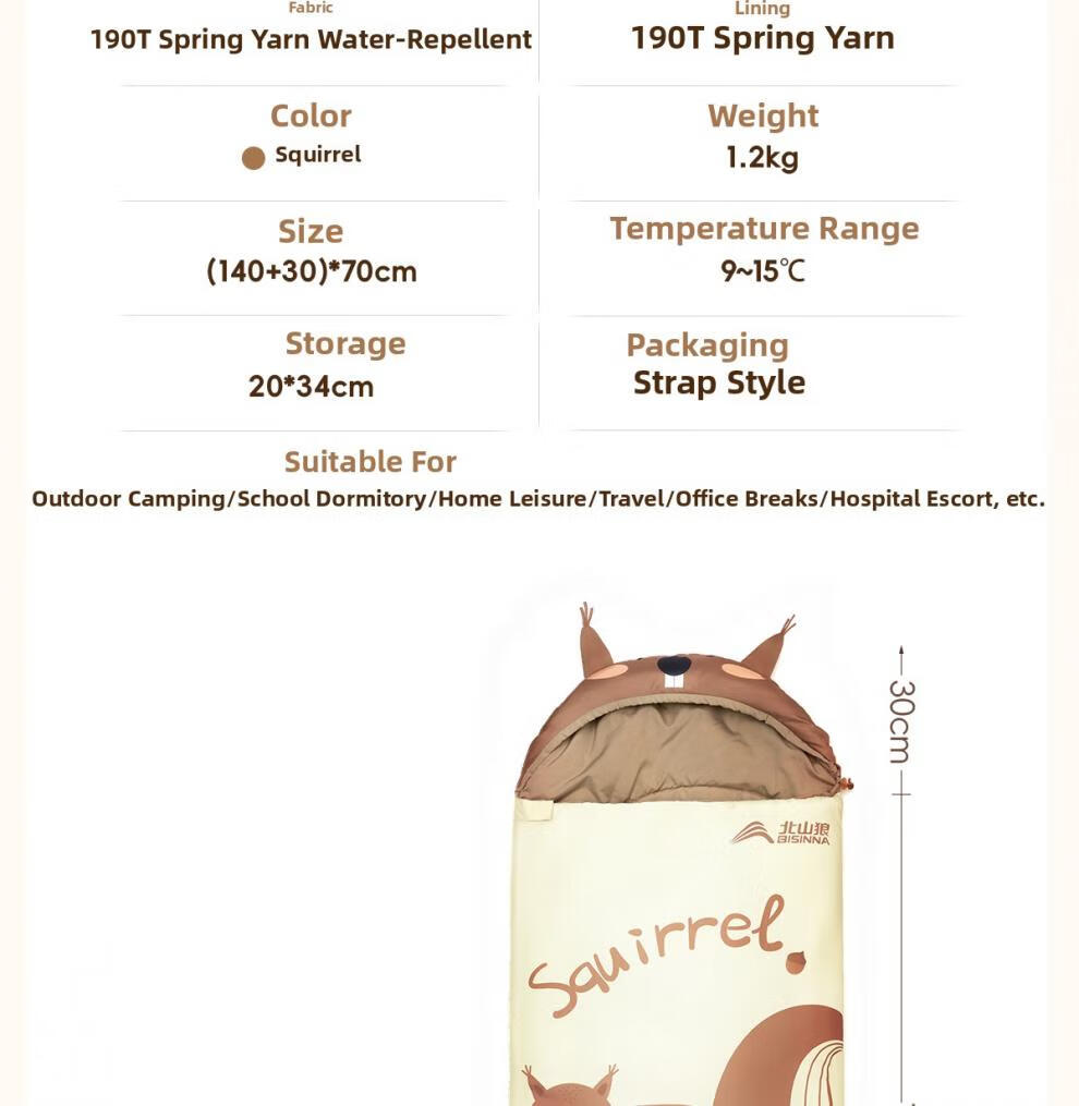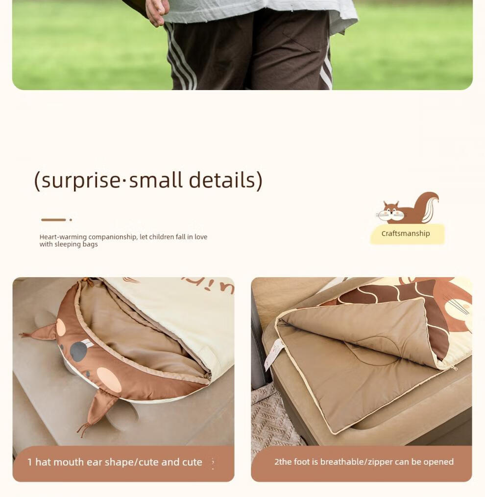 Beishanlang Beishanlang children's sleeping bag, outdoor camping, universal for all seasons, student dormitory, nap, children's model, 1.2kg small squirrel*2, fast delivery