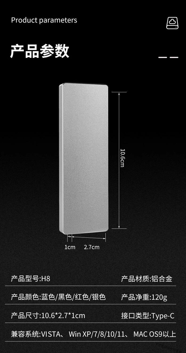 Xiaomi (MI) mobile hard drive 4T high speed 2t 1T large capacity 8t hard drive mobile phone computer solid state storage 8tb 8TB black high speed transmission + 5 gifts