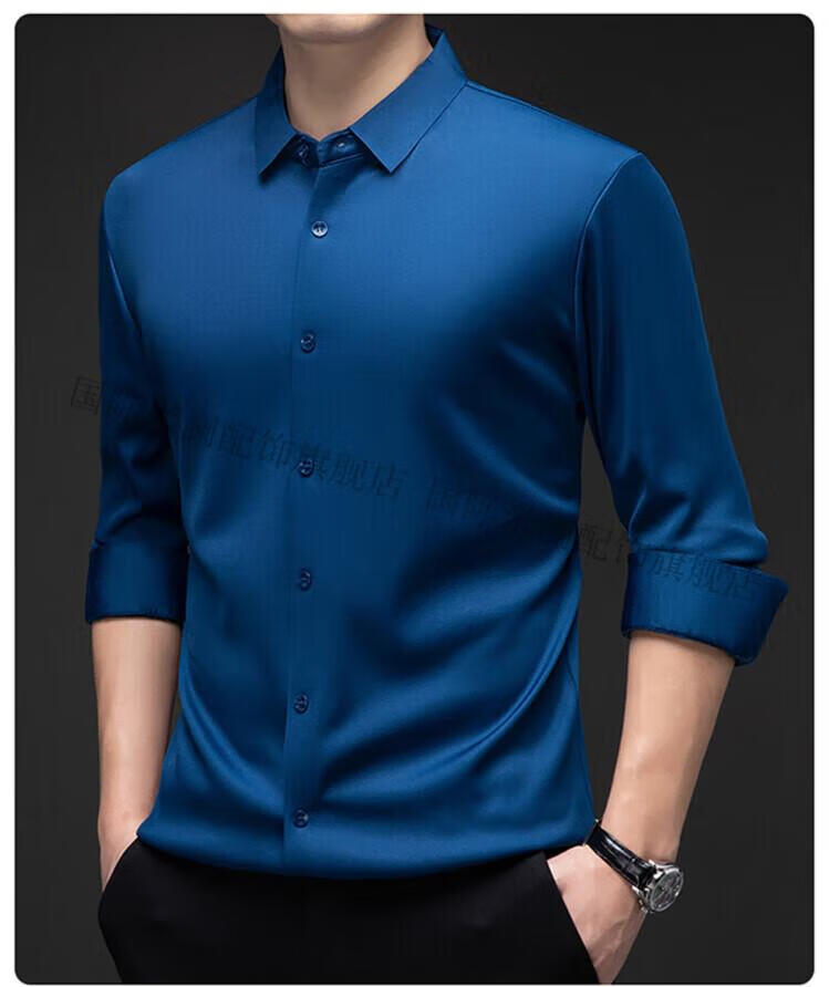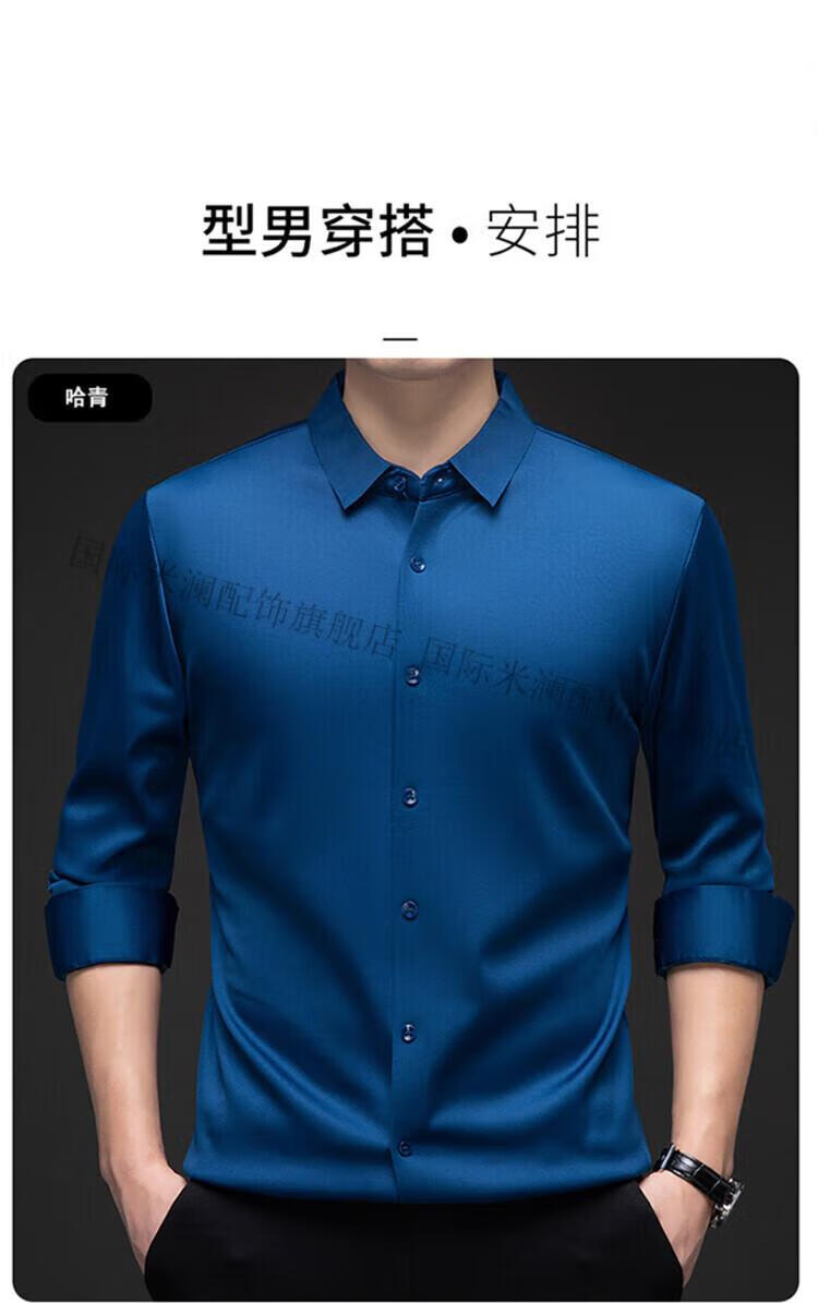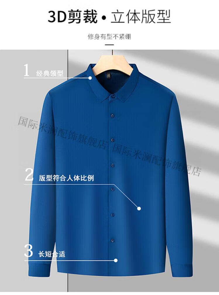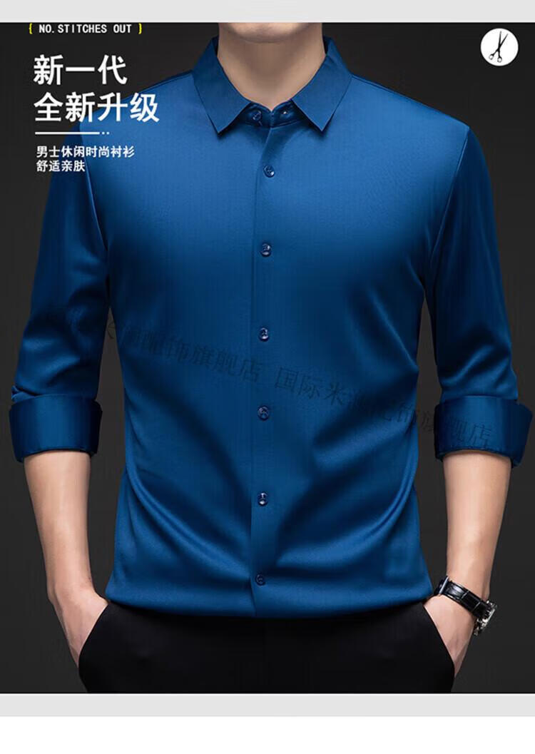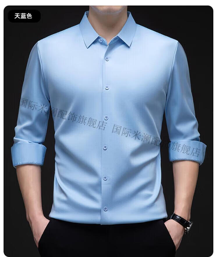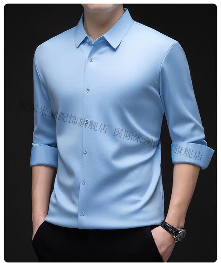 International Milan light luxury high-end seamless long-sleeved shirt for middle-aged men in winter plus velvet thickened warm lapel non-iron casual shirt sky blue (gift box) XL 130-155Jin Jin equals 0.5 kg