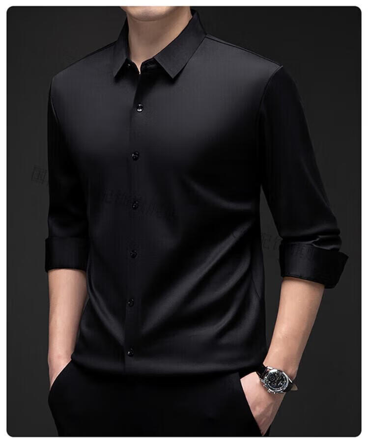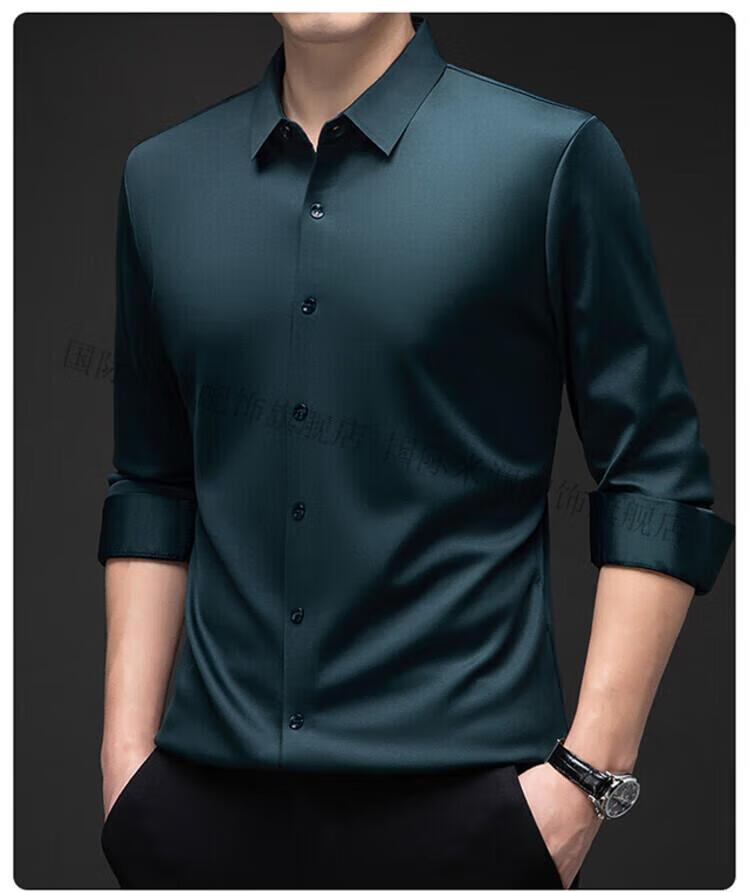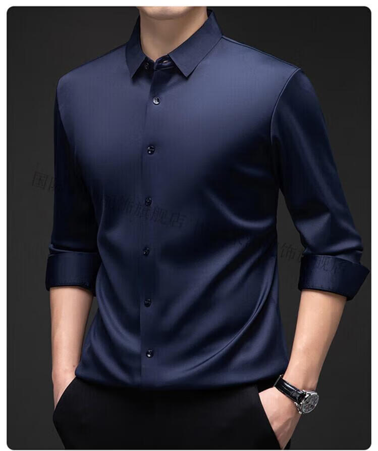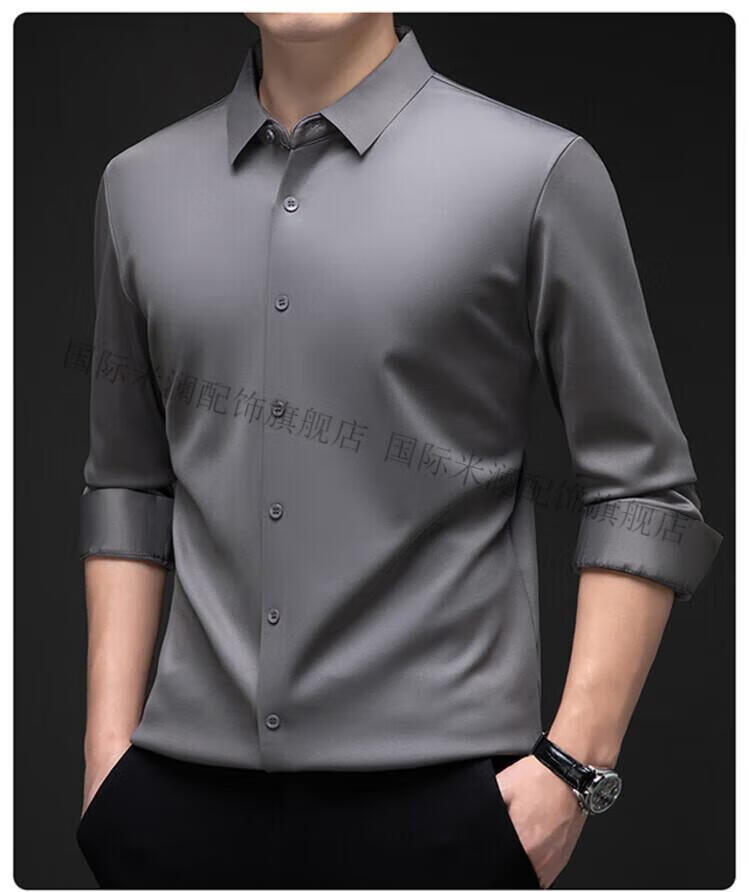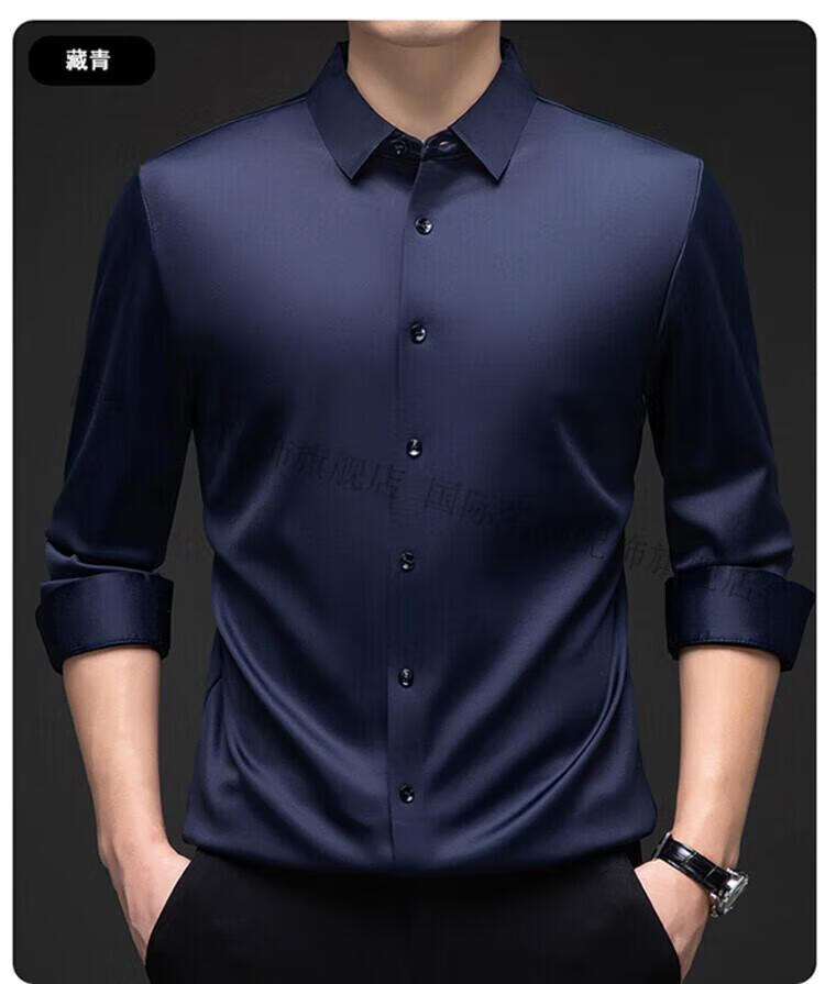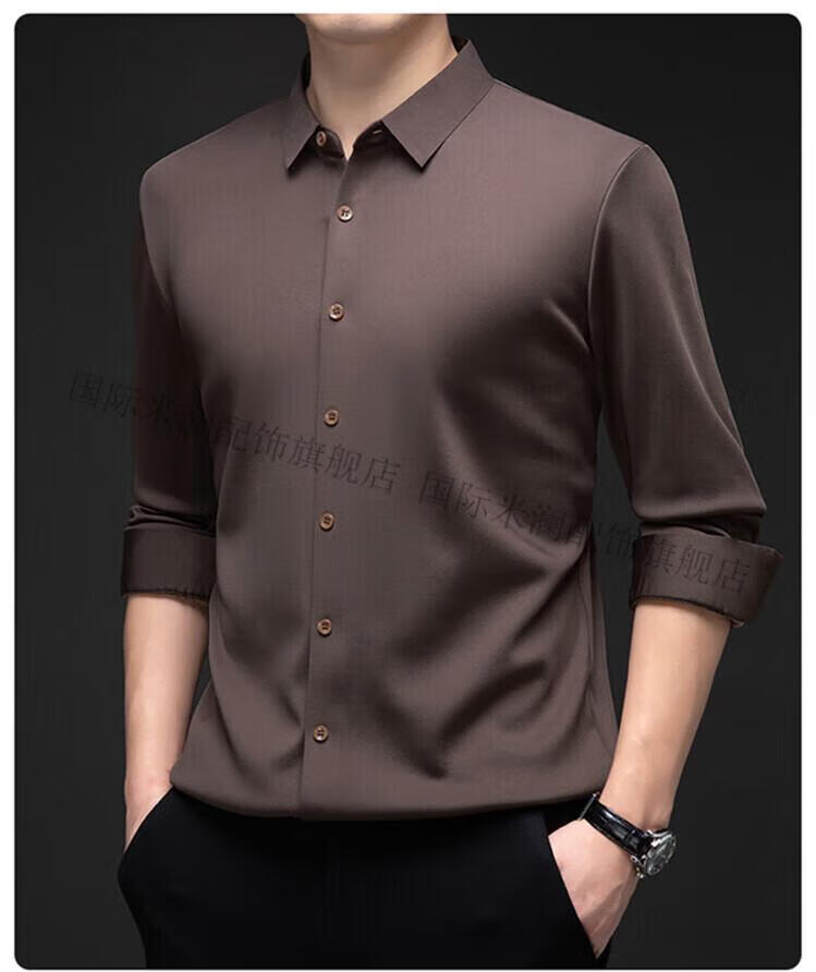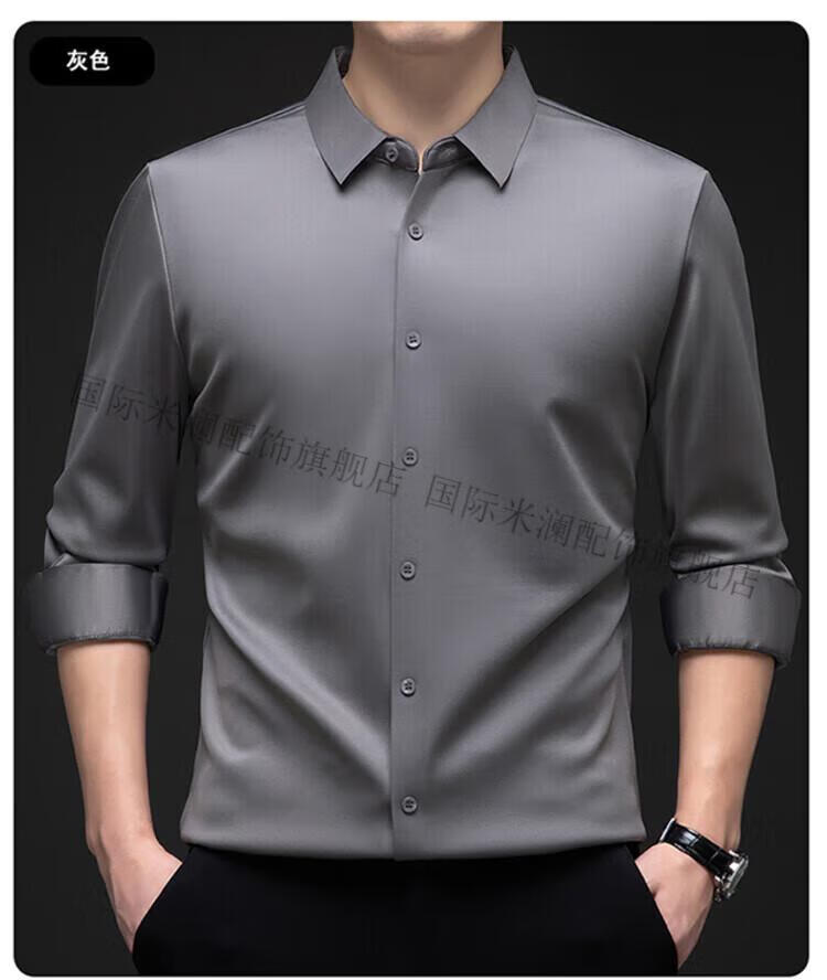 International Milan light luxury high-end seamless long-sleeved shirt for middle-aged men in winter plus velvet thickened warm lapel non-iron casual shirt sky blue (gift box) XL 130-155Jin Jin equals 0.5 kg