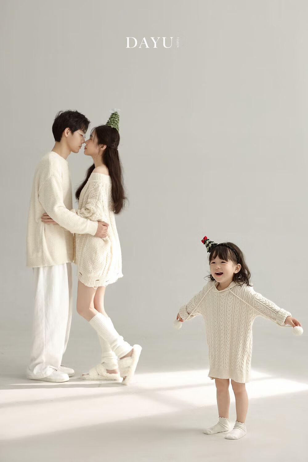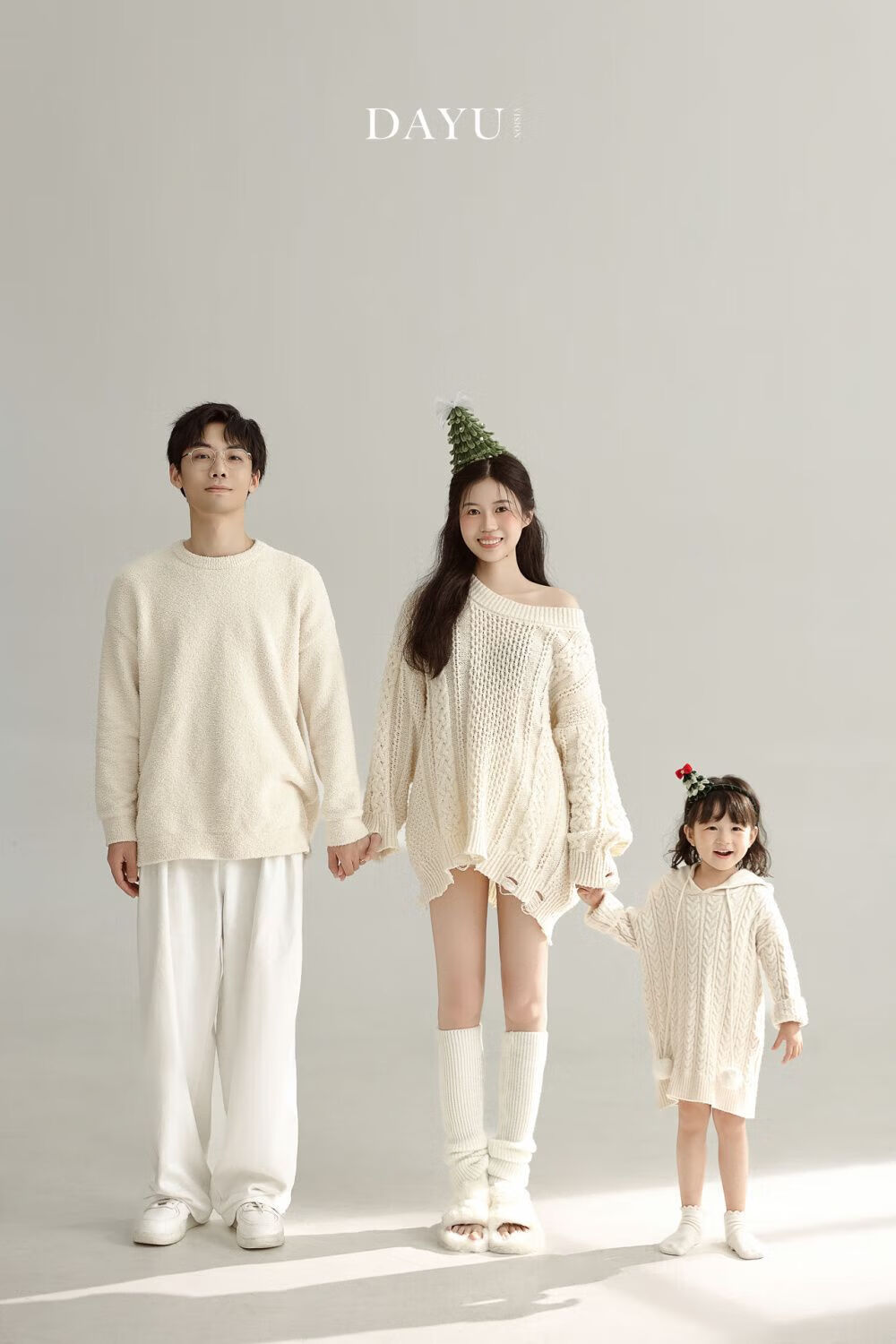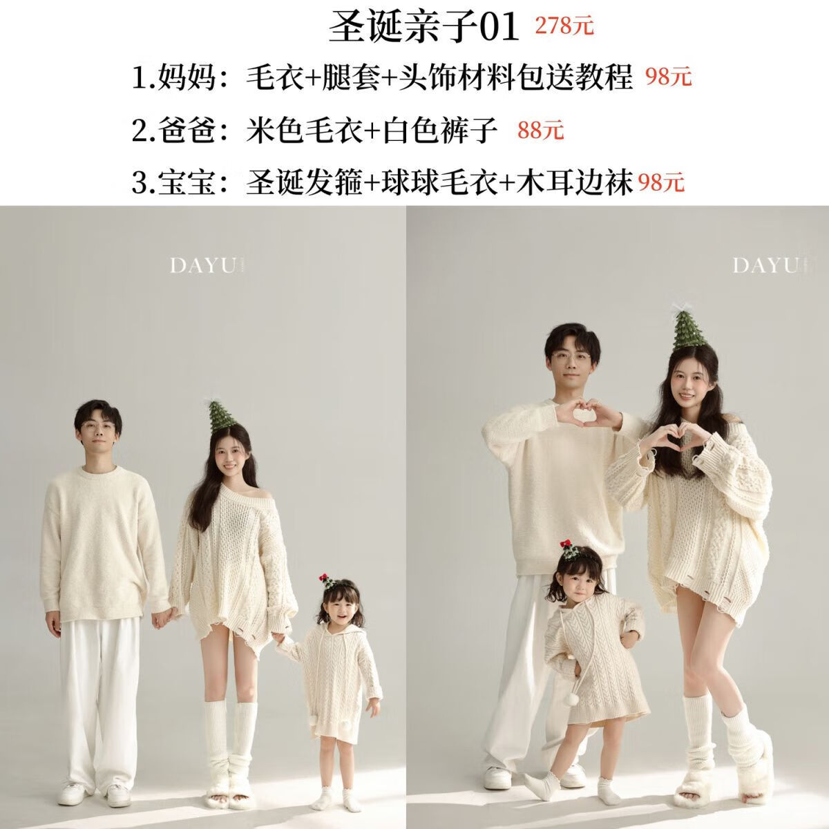 Ye Yu's family portrait, parent-child photo shoot clothing, Christmas white sweater, home style, family of three, parent-child photo shoot theme, Christmas parent-child 01 80 85 90,95,100,105,110,1