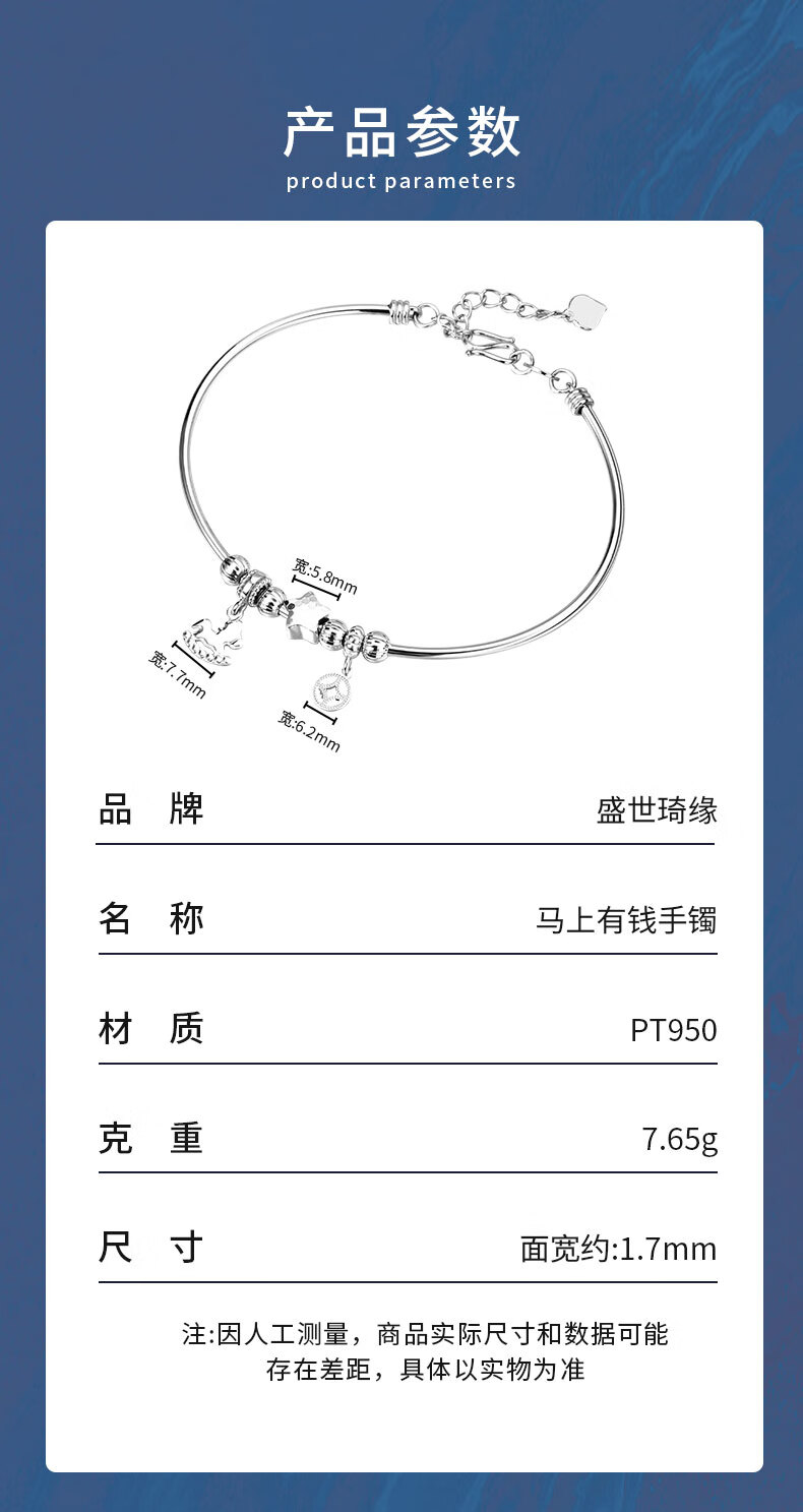 Shengshi Qiyuan pt950 platinum bracelet women's bracelet genuine pure platinum platinum bracelet sparkling get rich immediately bracelet 7.71g (adjustable) get rich immediately bracelet