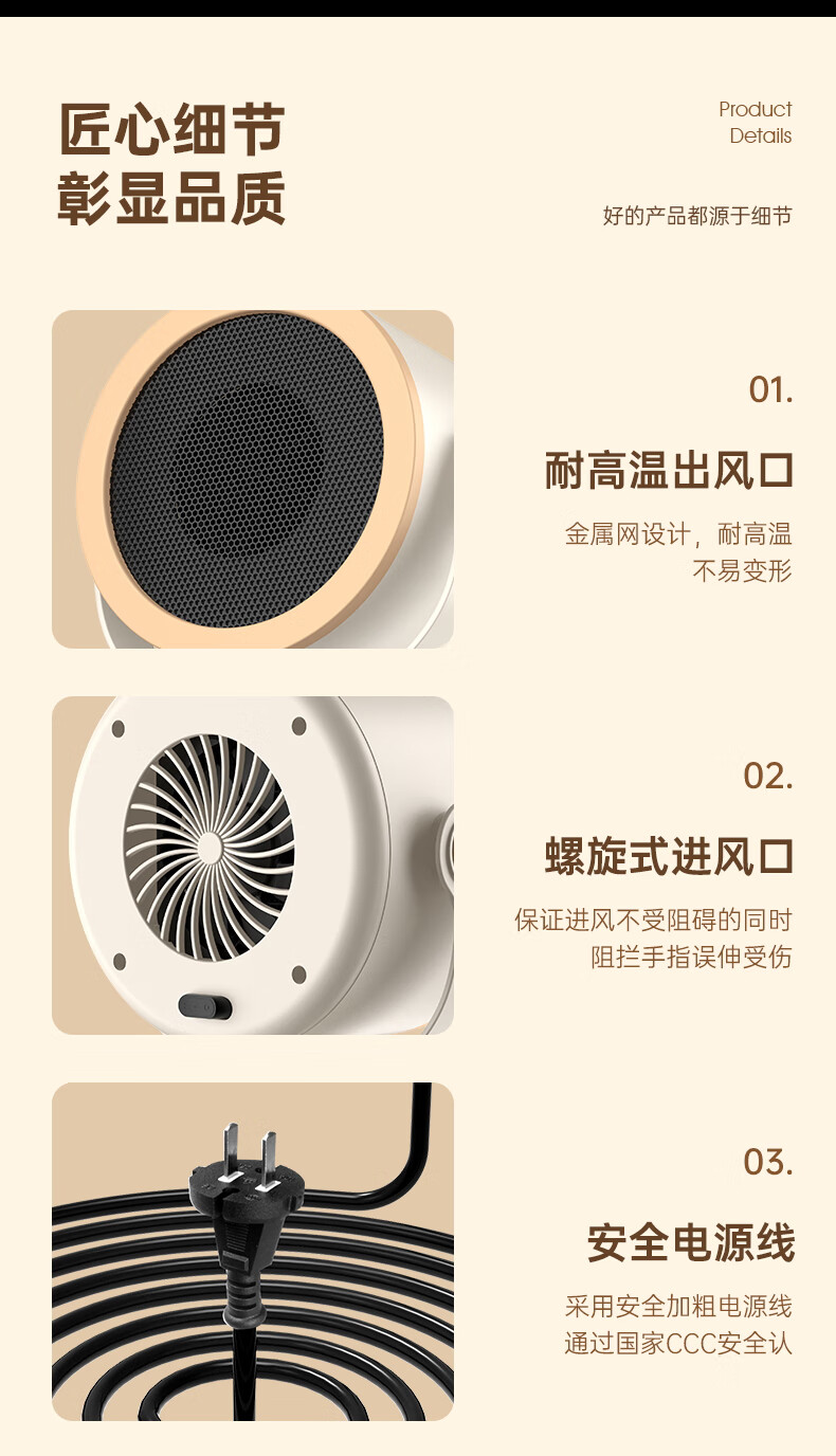 Xiaomi grain series heater small home desktop office instant heater dormitory portable heater off-white upgraded corrugated heating