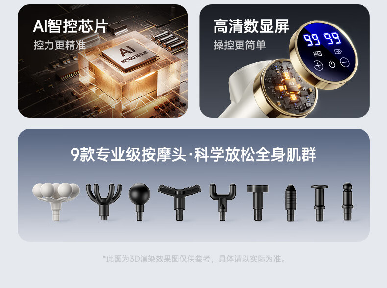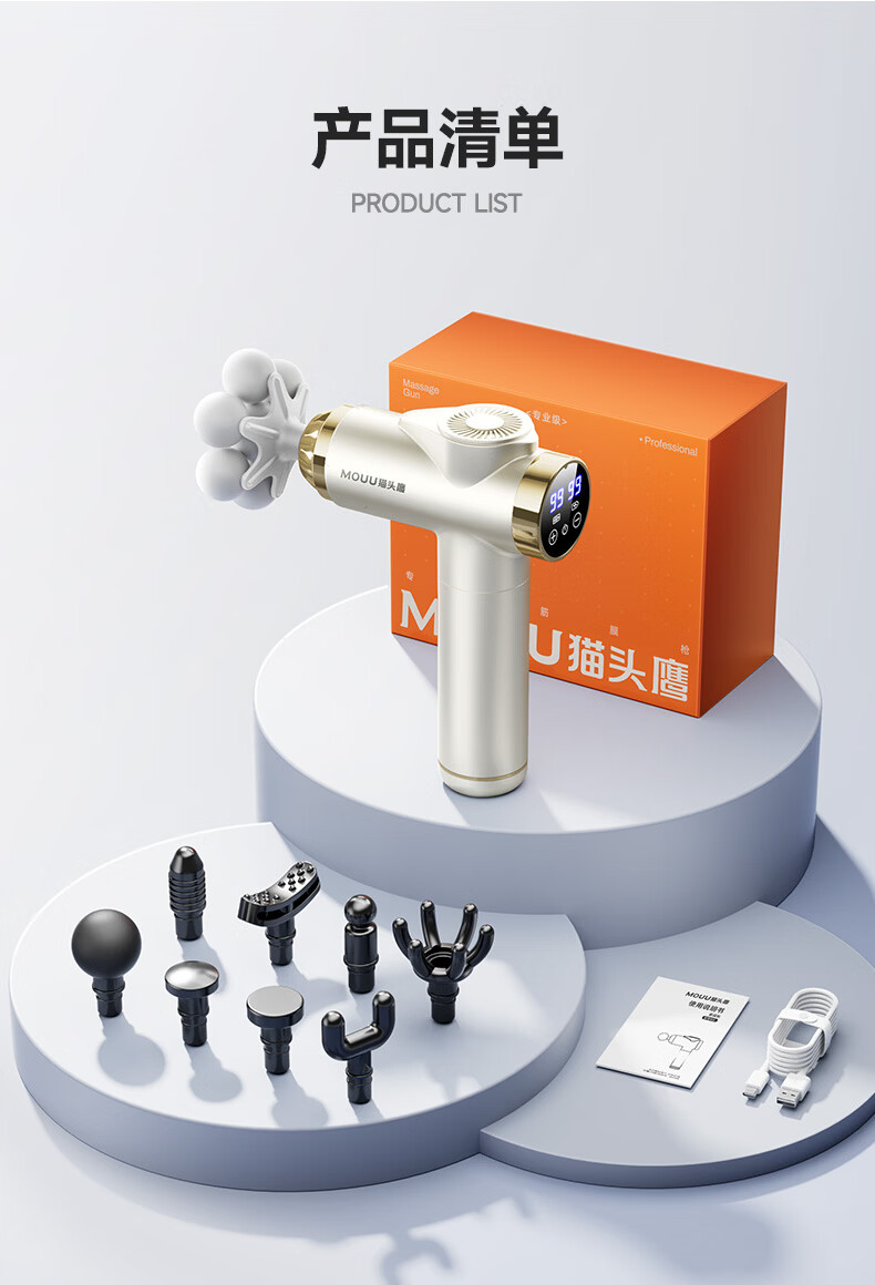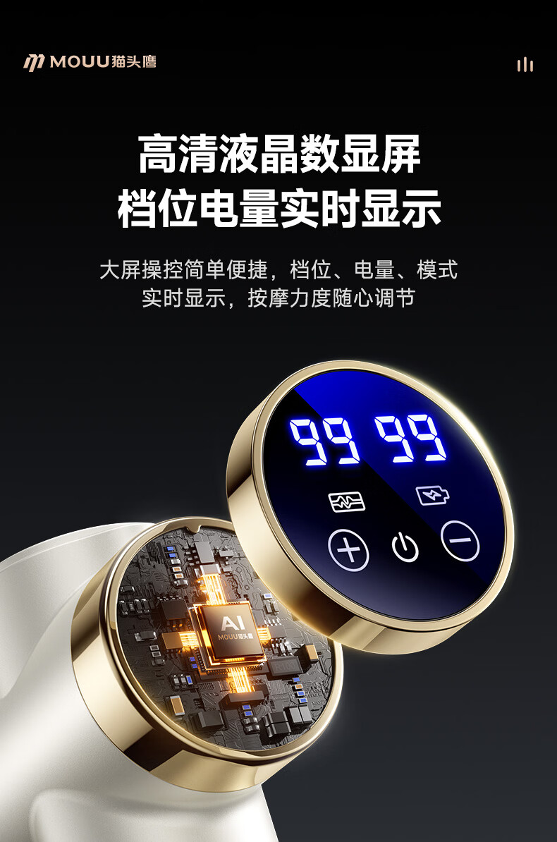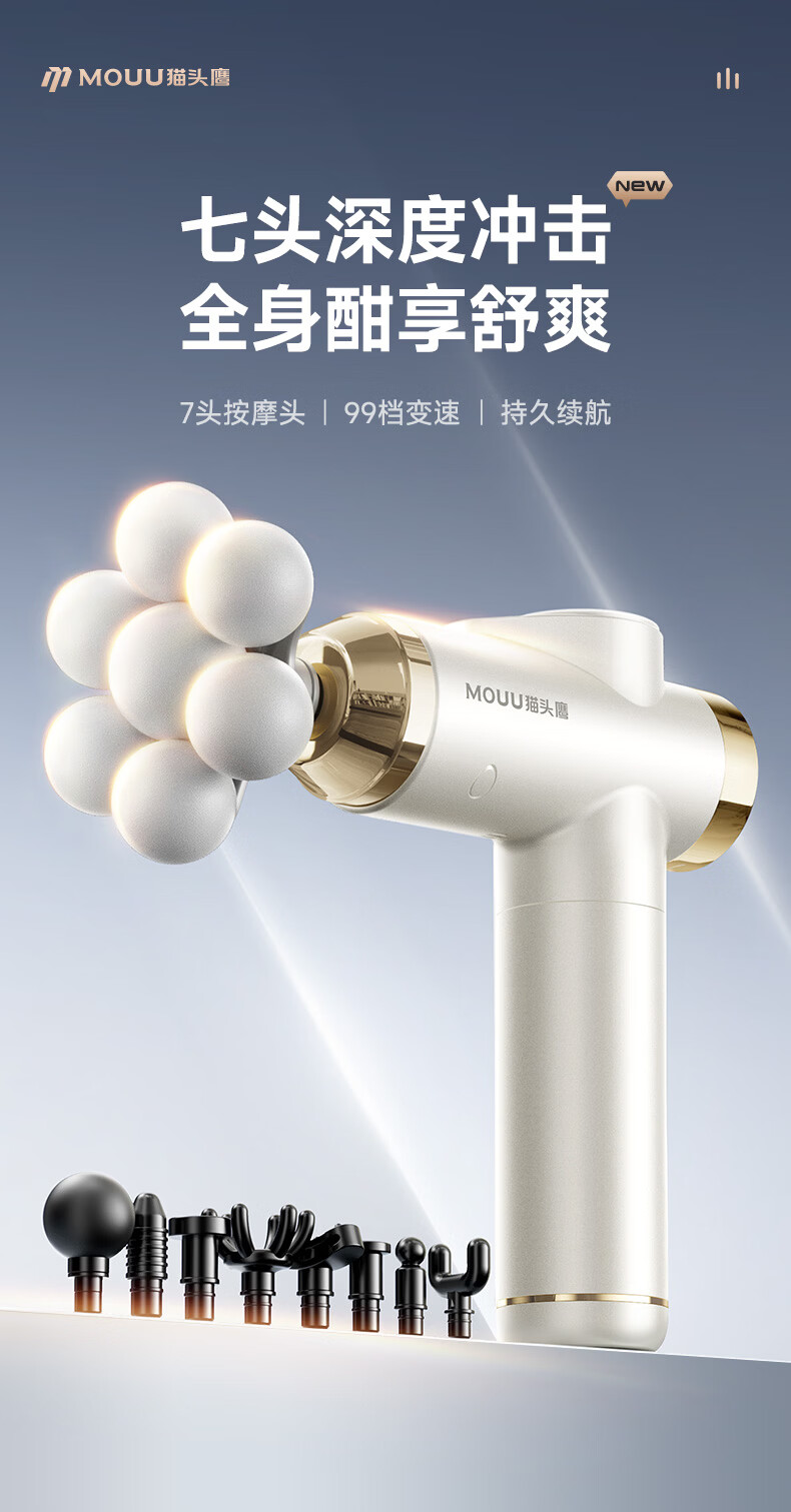 Owl multi-head fascia gun massager shoulder, neck, waist and back massager myocervical mask gun professional grade portable fitness muscle relaxation leg Mid-Autumn Festival birthday gift for parents and men, supreme fully equipped platinum, 99-speed variable speed + 9 professional massage heads + LCD digital display