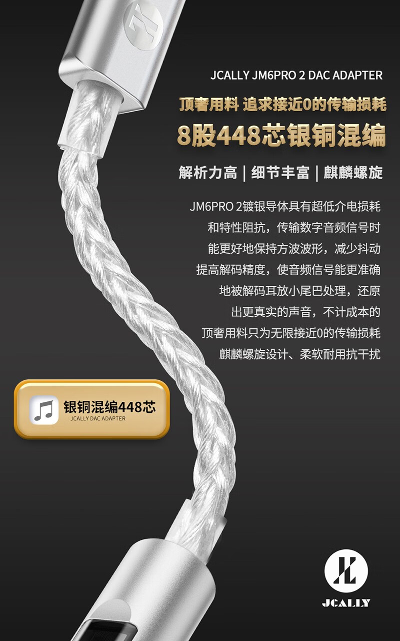 JCALLY JM6 series small tail decoder decoder amp CX31993 mobile phone type-c to 3.5mm audiophile player hifi adapter dac professional music audio cable JM6PRO silver blue dual-chip high thrust