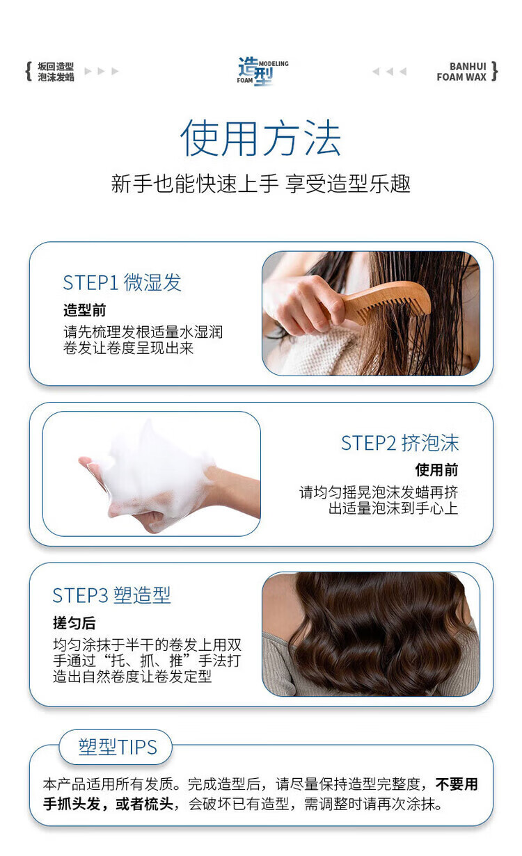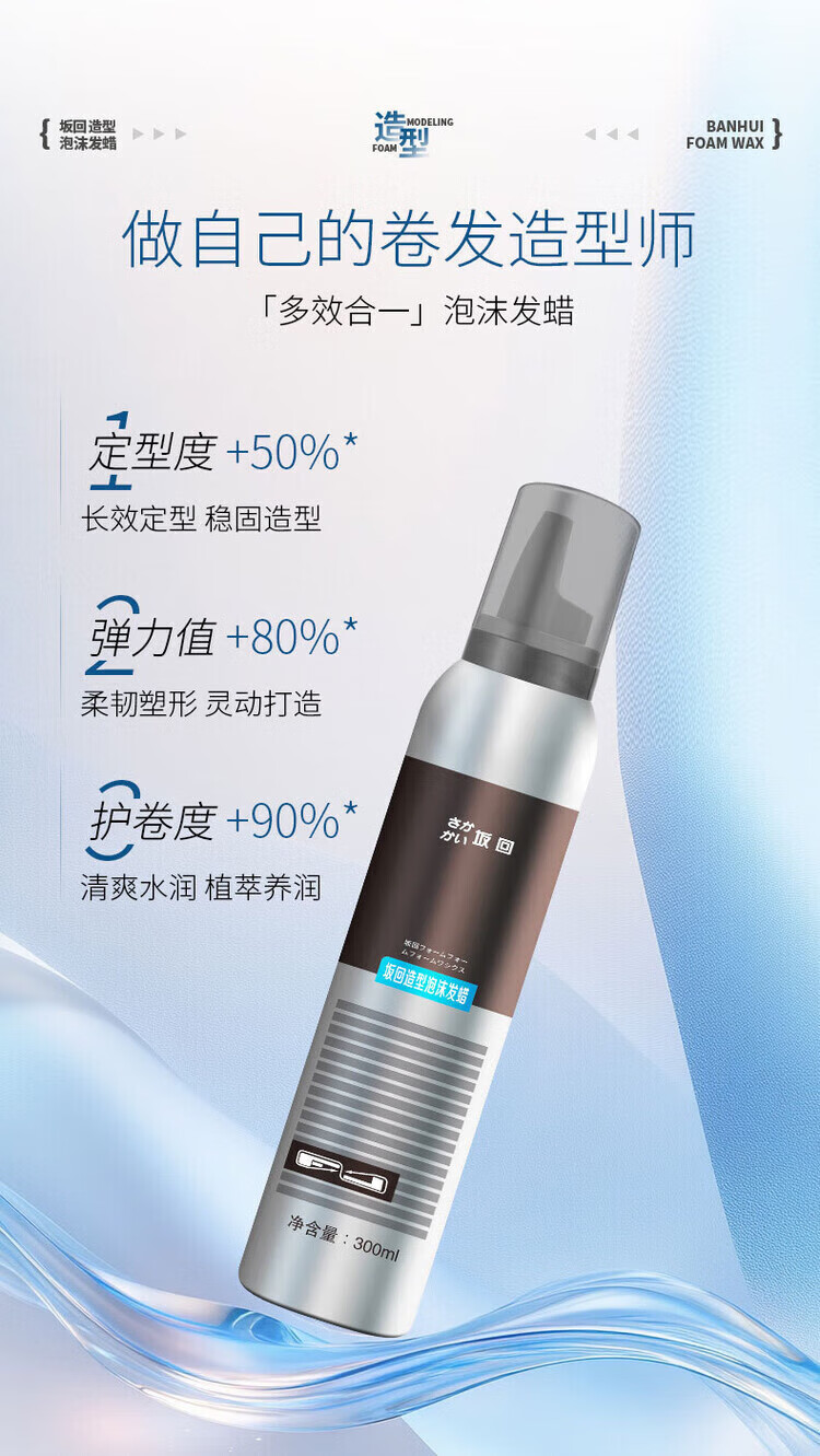 Sakatani Styling Foam Wax Curly Hair Styling Bubble Mousse Smooth Hair Anti-Frizz Elastic Moisturizing 3 Bottles 300ml