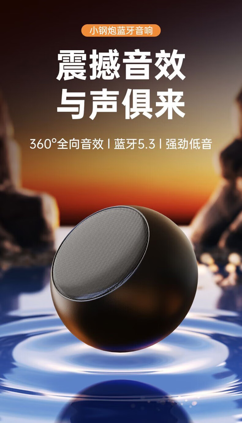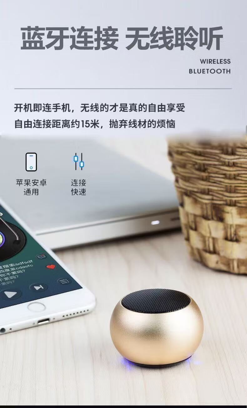 Mini small steel cannon Bluetooth speaker, exquisite and compact portable outdoor speaker, wireless super subwoofer, car portable HIFI high quality, desktop decoration, cool black