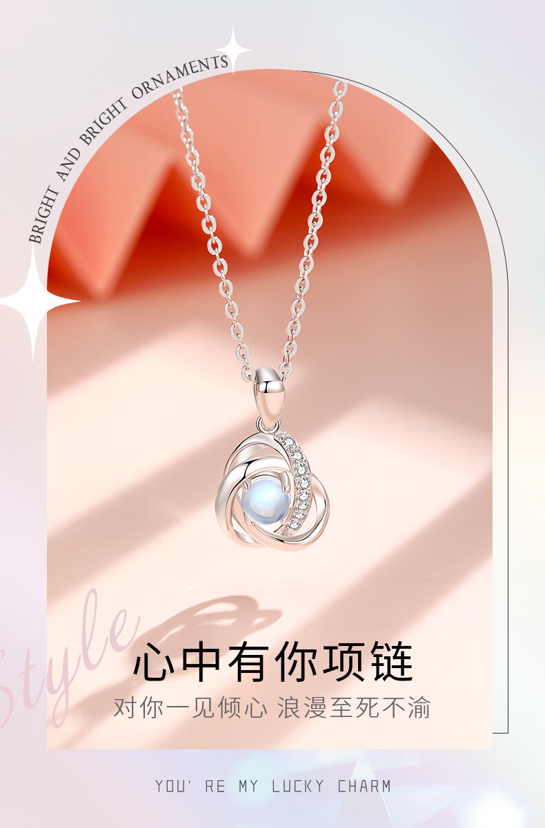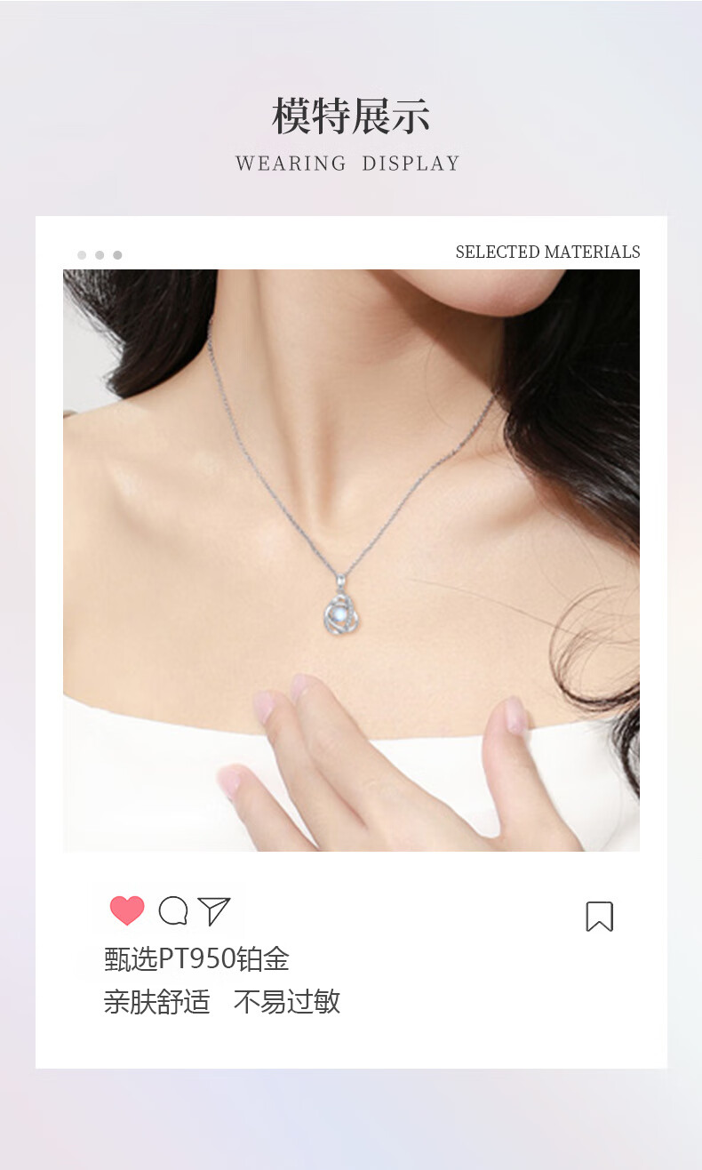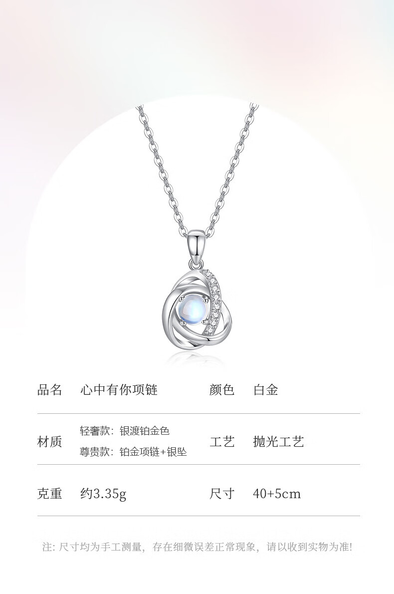GIEVSZHE PT950 Platinum Necklace I Love You Necklace Women's Pendant Valentine's Day Birthday Gift for Girlfriend and Wife Light Luxury Style - Inlaid with Flawless Moonstone