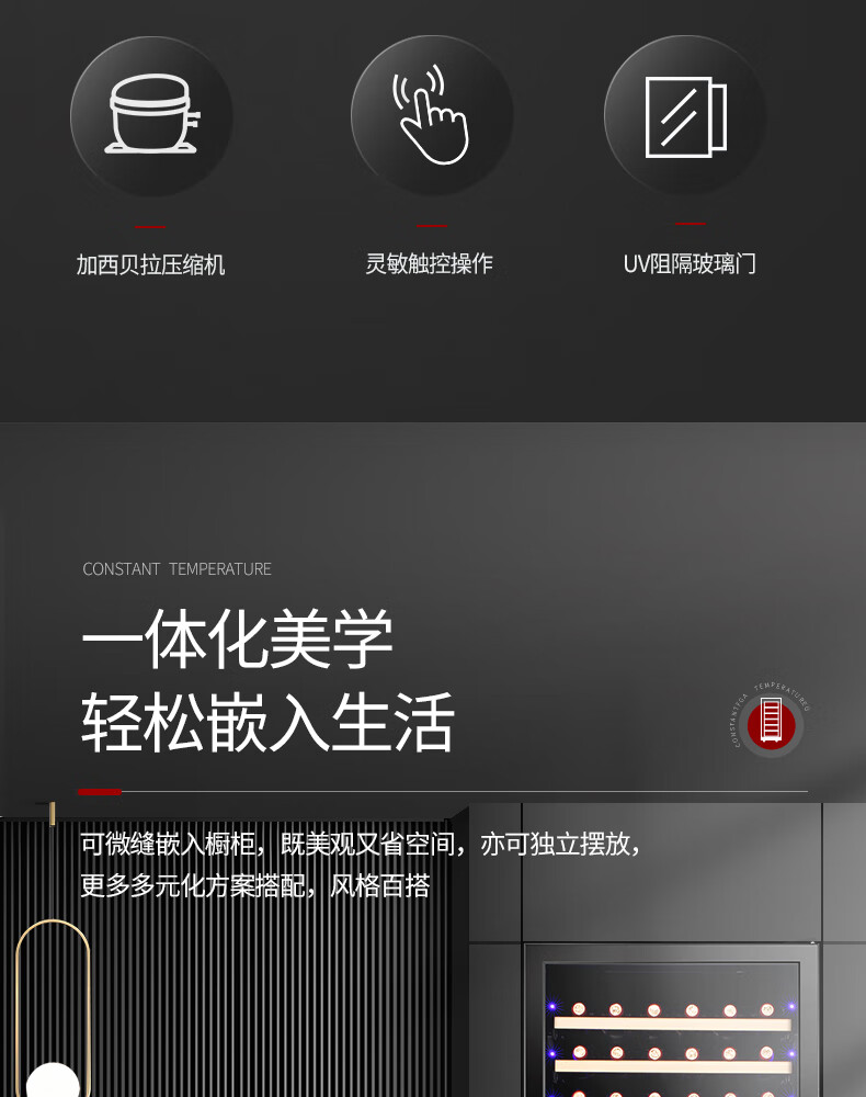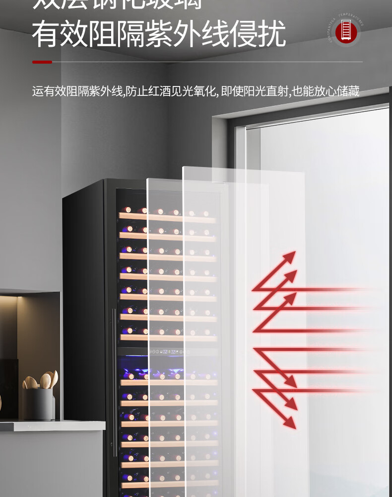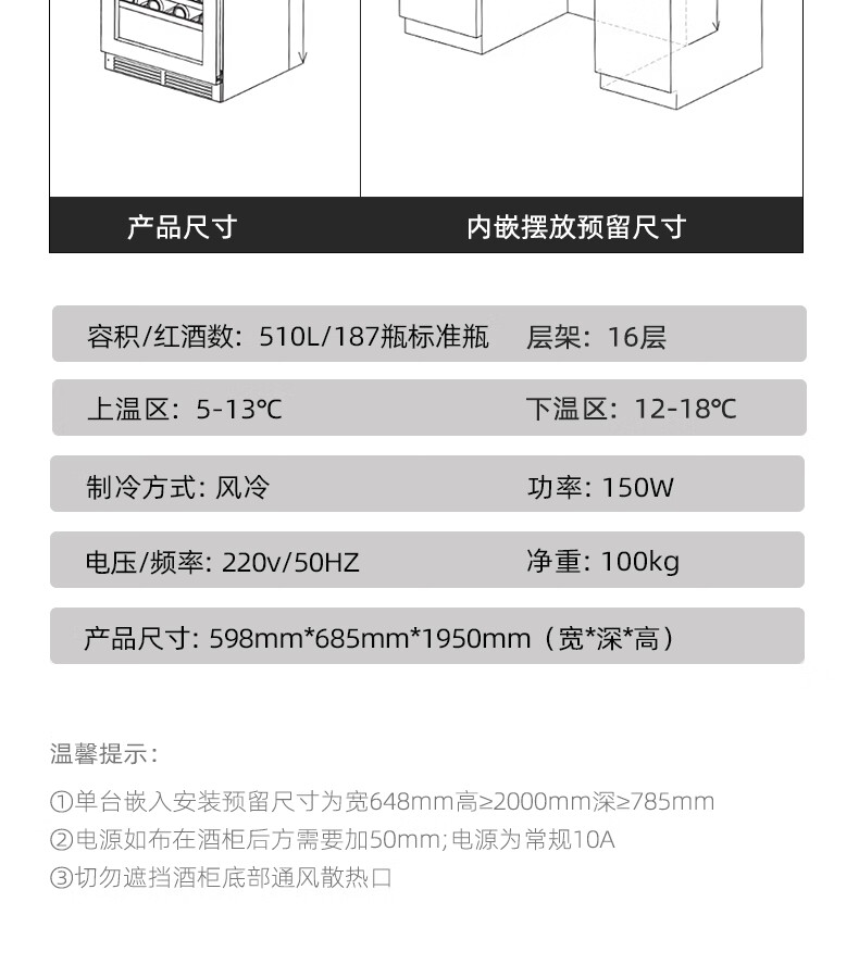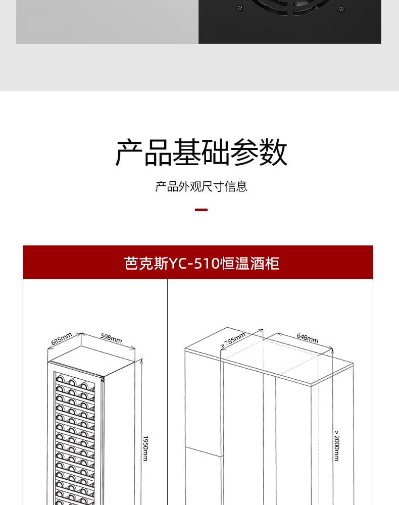 Bacchus red wine cabinet 190 bottles thermostat wine cabinet home commercial large capacity frozen wine grapes single temperature - air-cooled frost-free compressor - tempered glass door YC-510 - beech wood shelf - 1.9m high