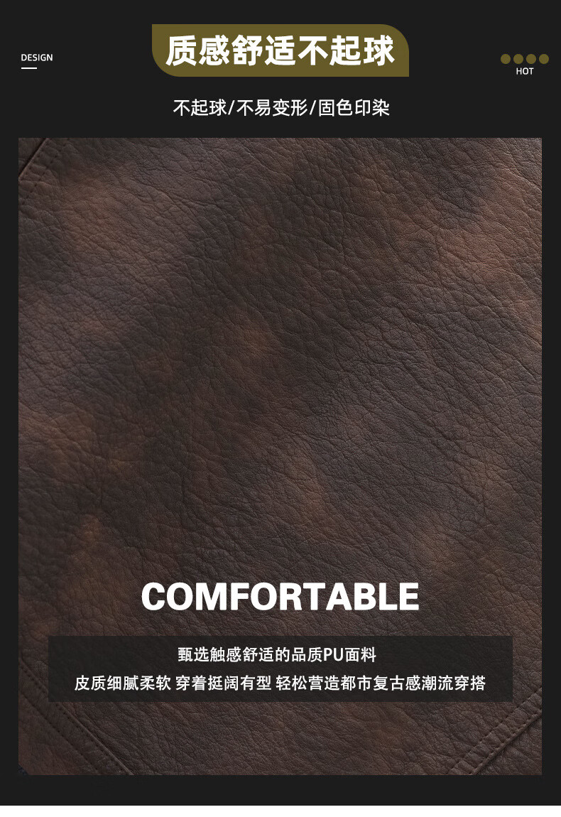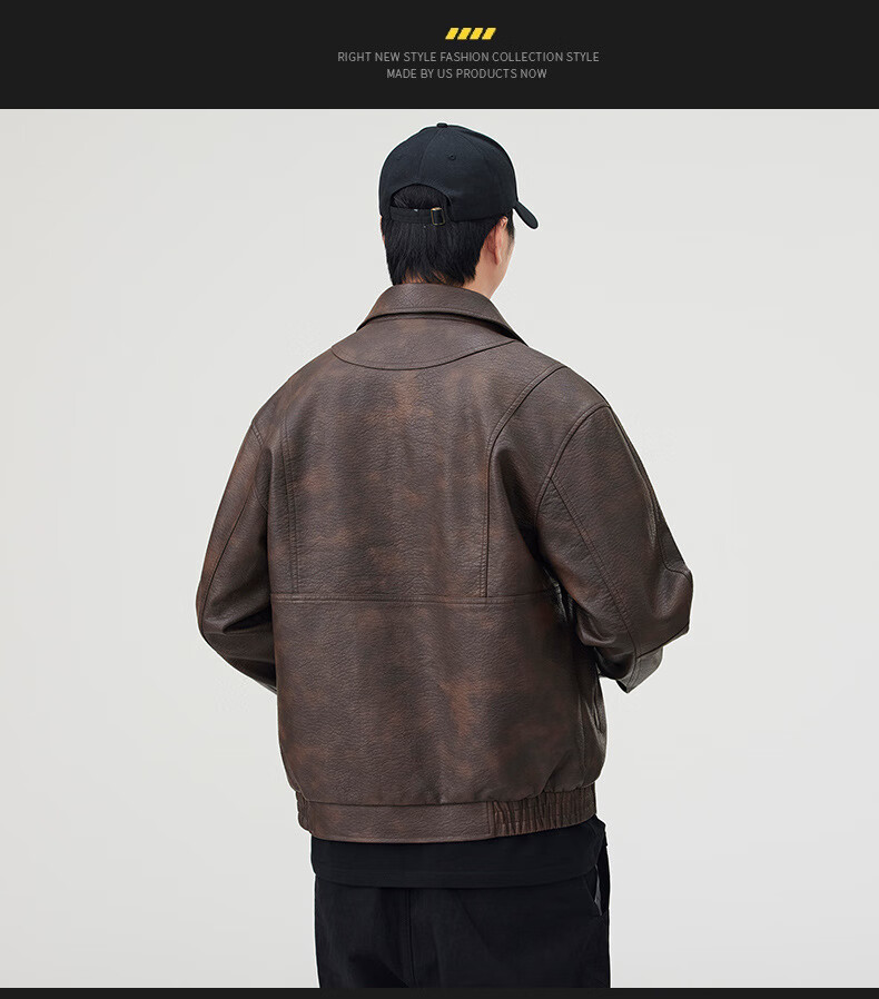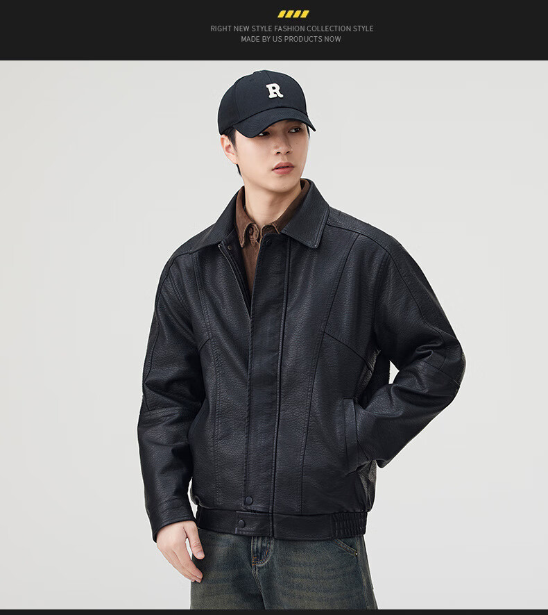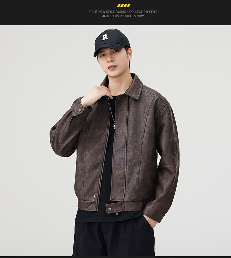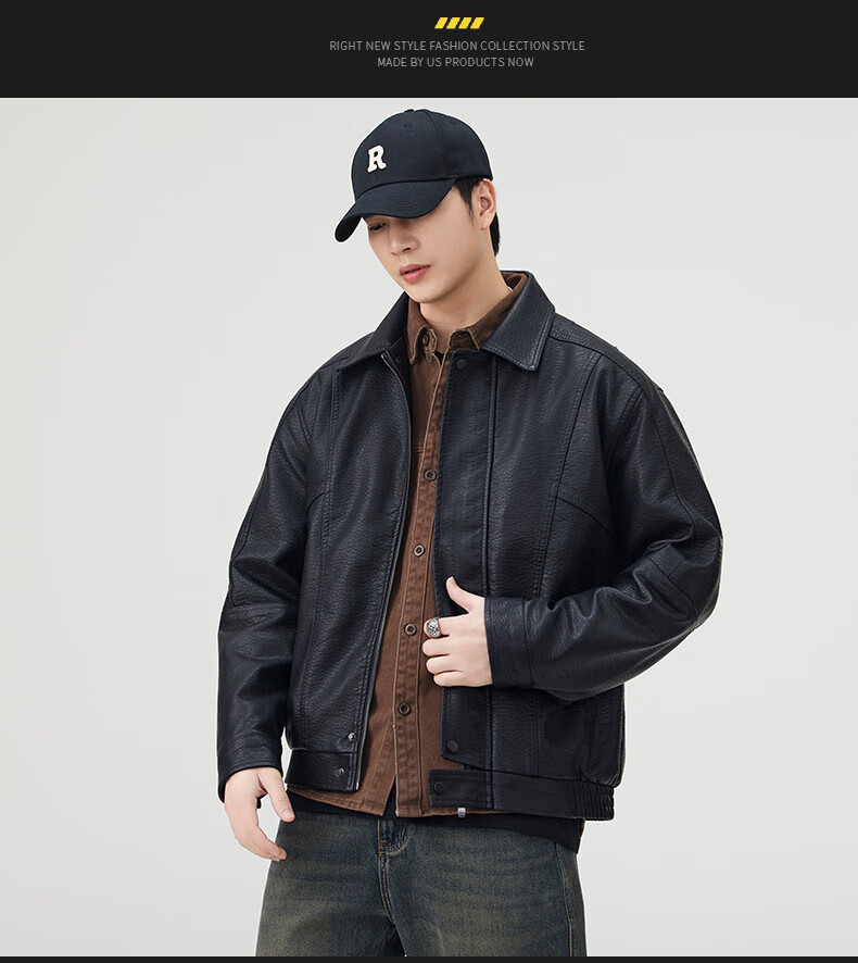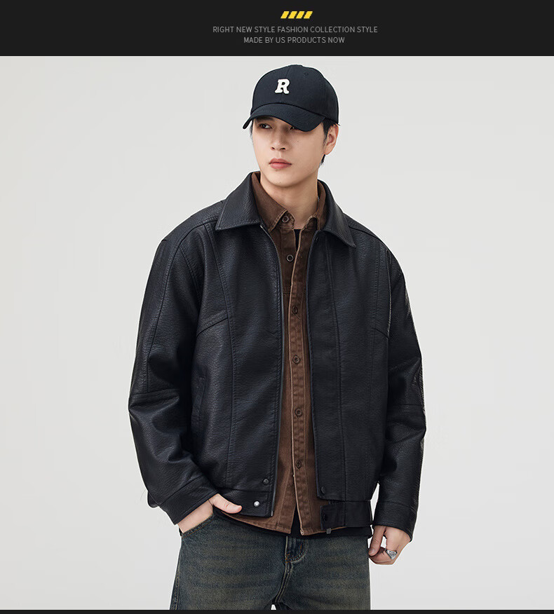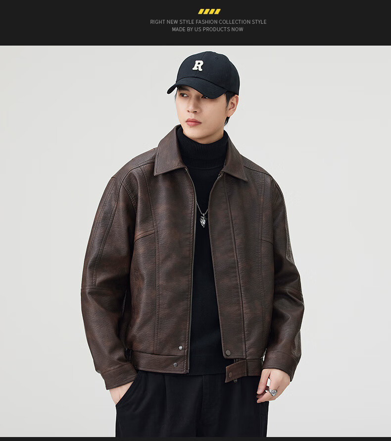 Hawit handsome motorcycle leather jacket men's American retro leather jacket 2025 autumn and winter PU leather jacket motorcycle jacket black M