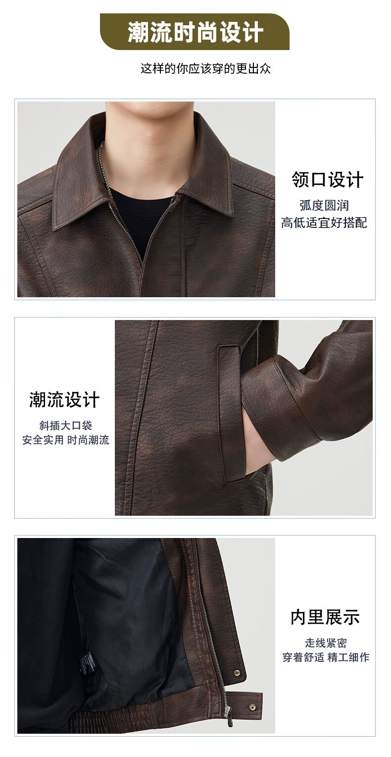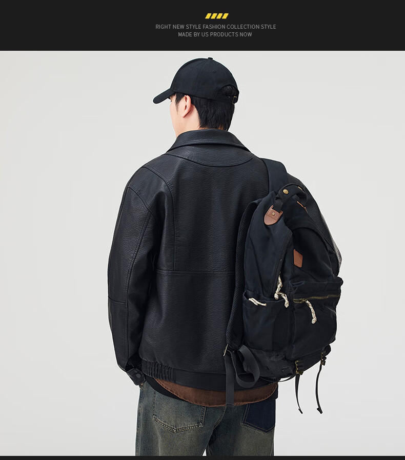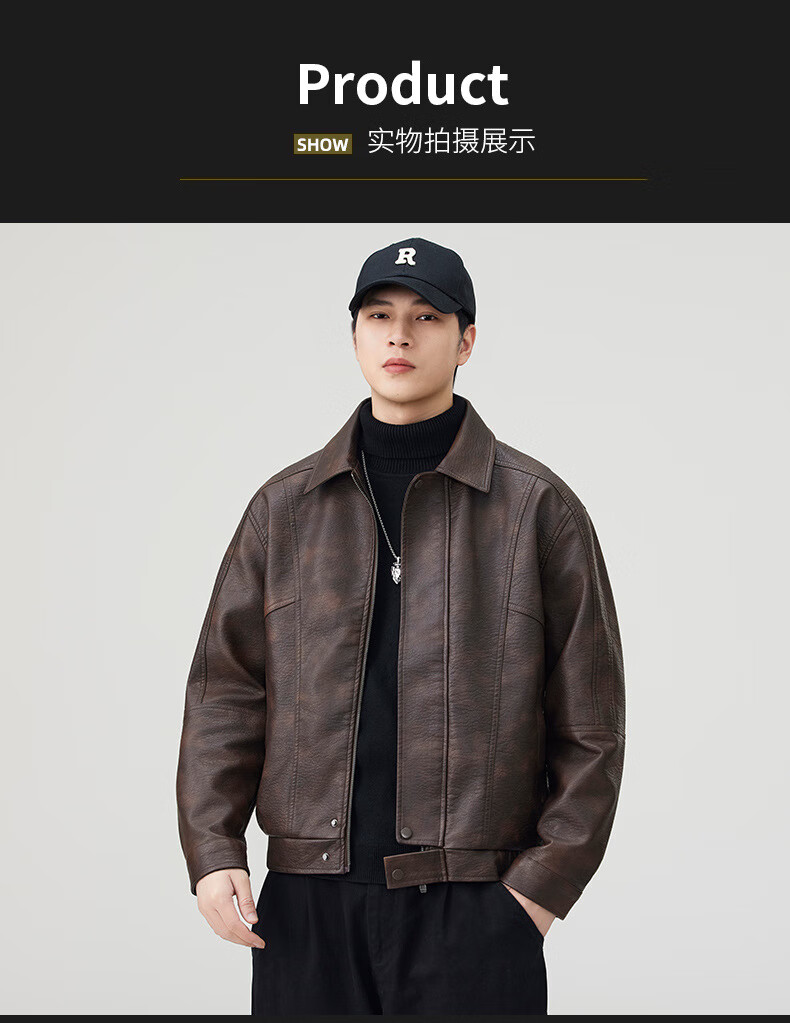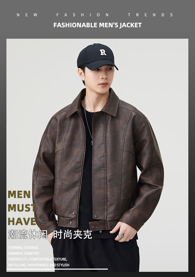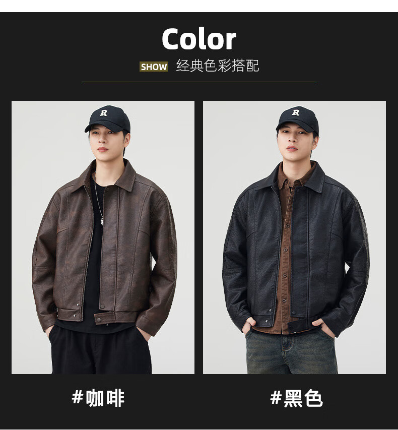 Hawit handsome motorcycle leather jacket men's American retro leather jacket 2025 autumn and winter PU leather jacket motorcycle jacket black M