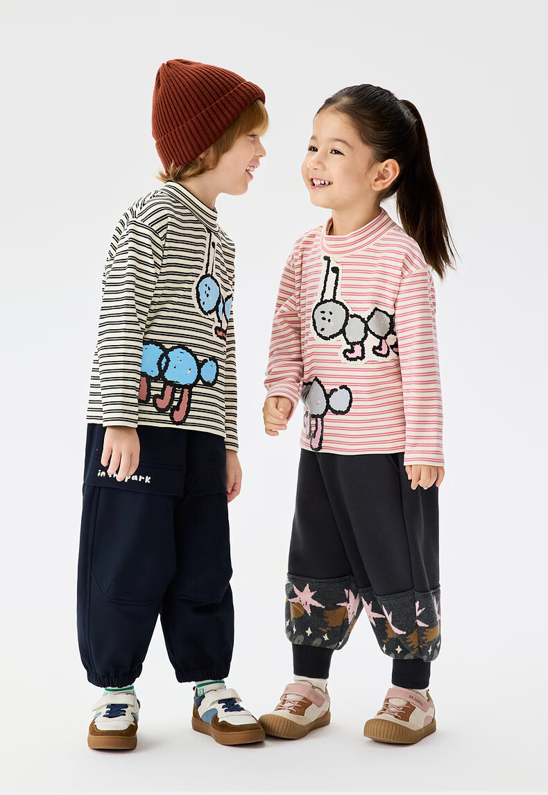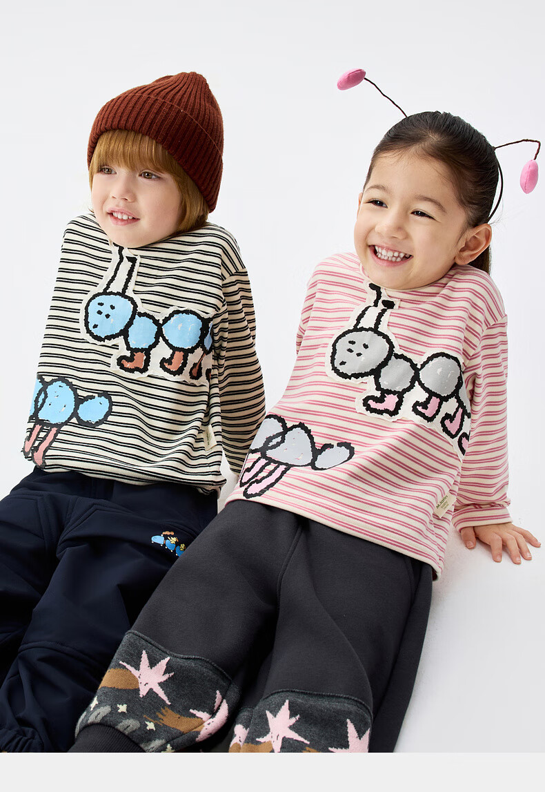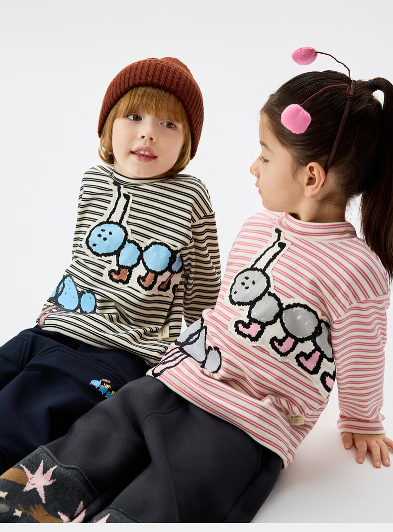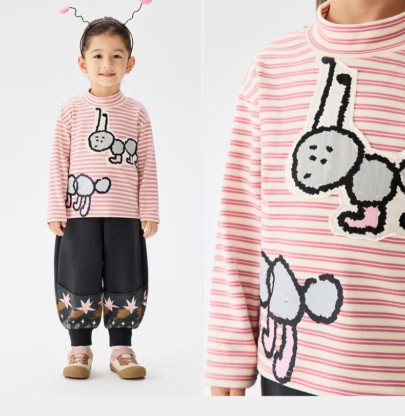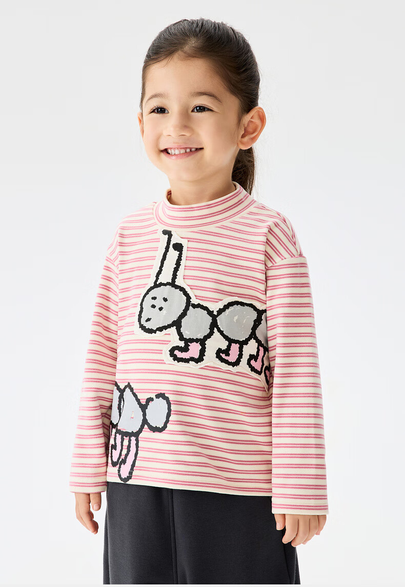 Ma Latin (M.Latin) Maratin children's clothing children's T-shirt 25 winter clothing new children's fun little ant print T-shirt pink strip 90