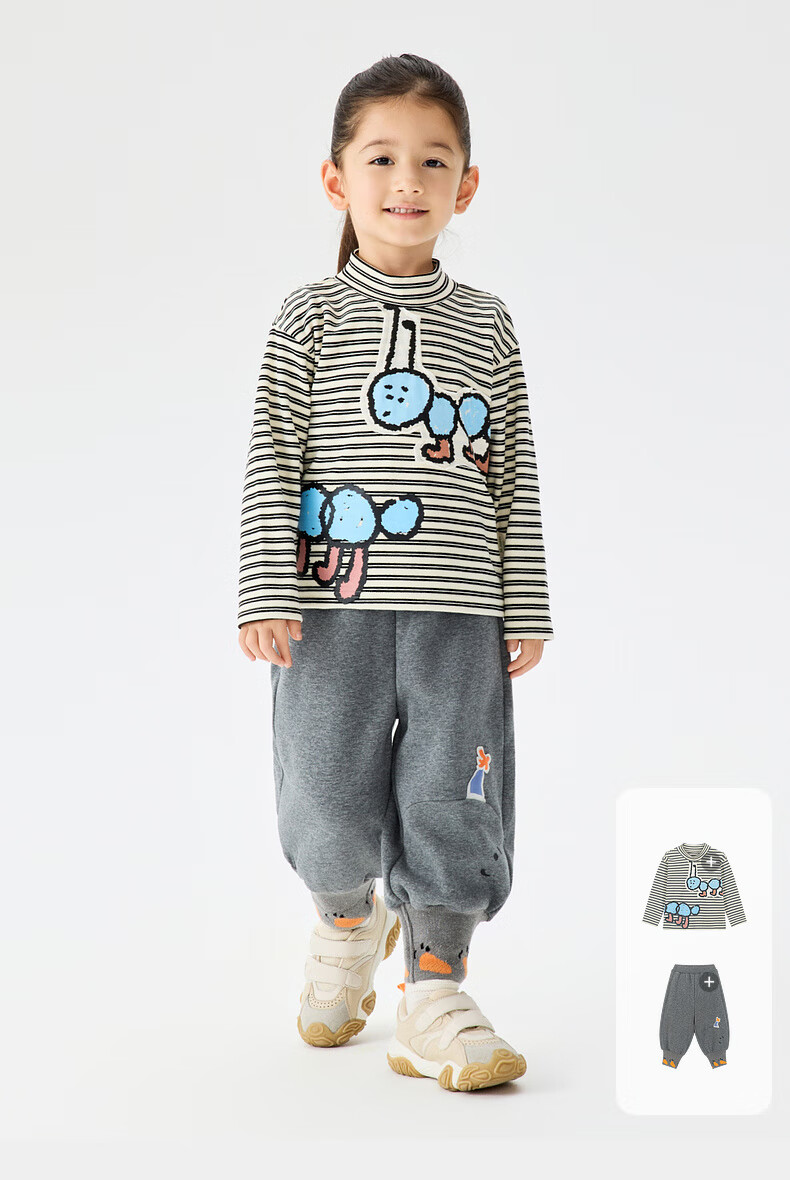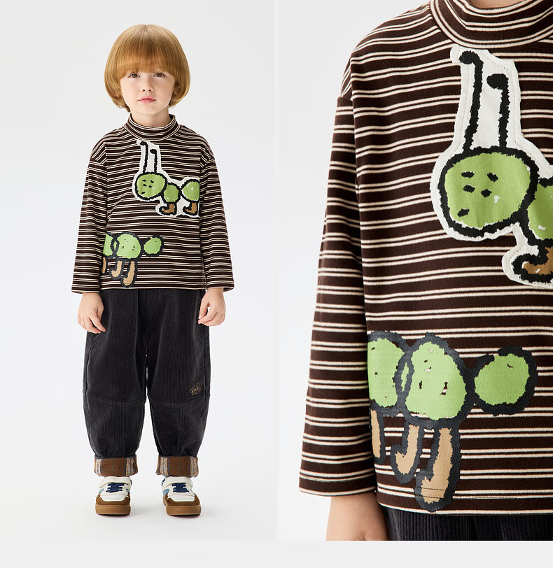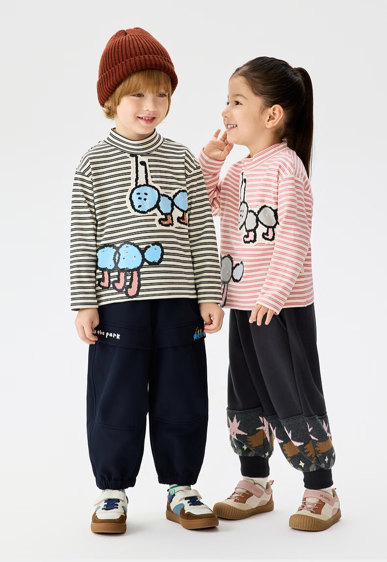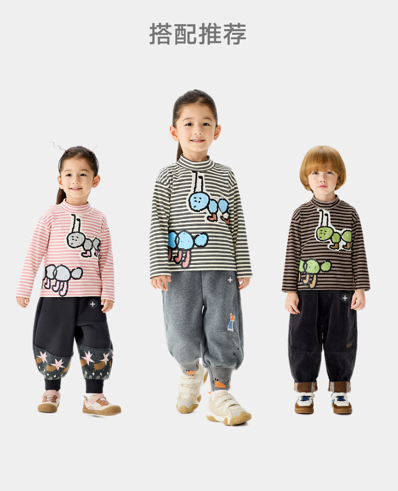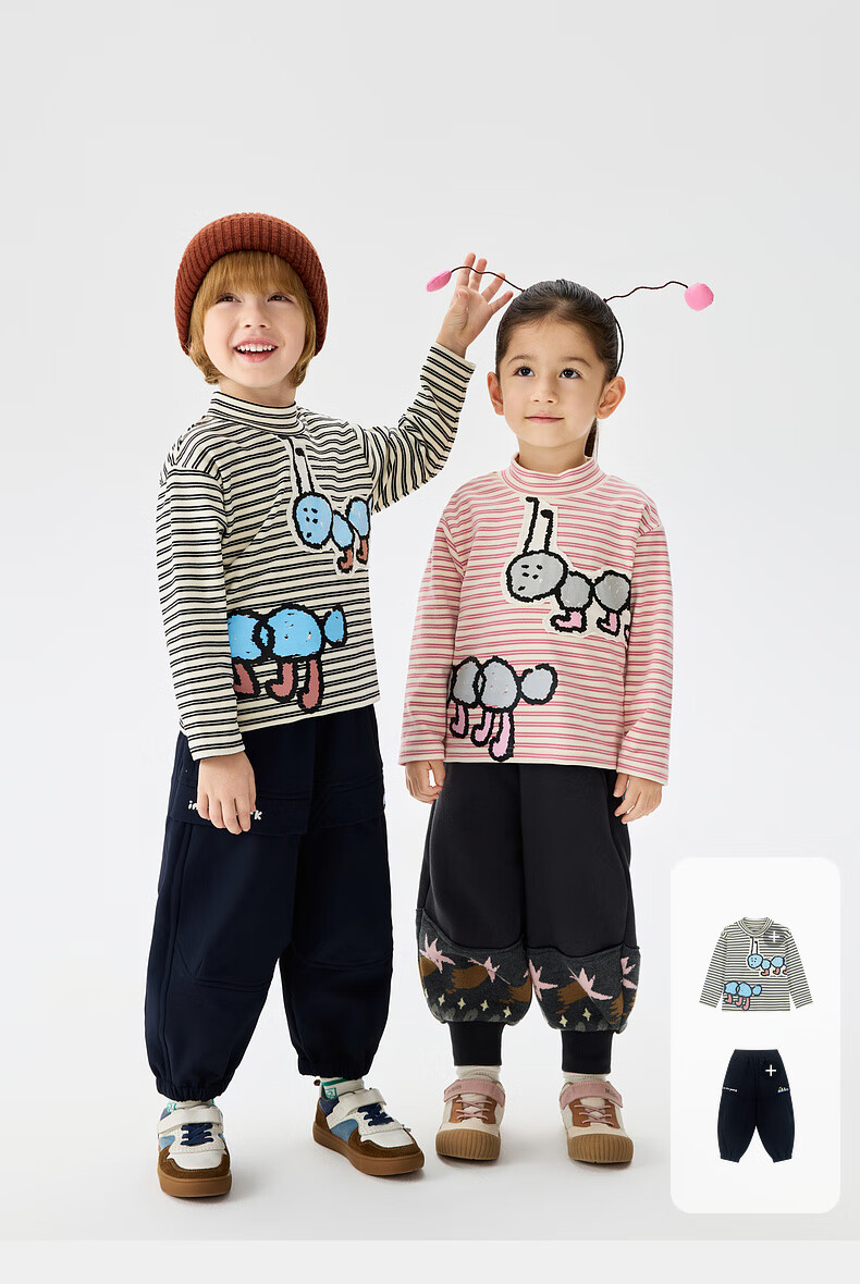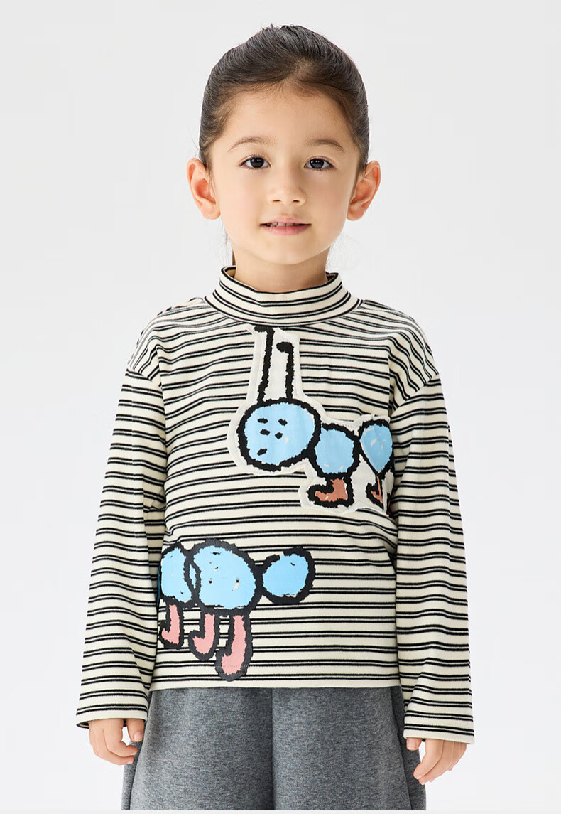 Ma Latin (M.Latin) Maratin children's clothing children's T-shirt 25 winter clothing new children's fun little ant print T-shirt pink strip 90